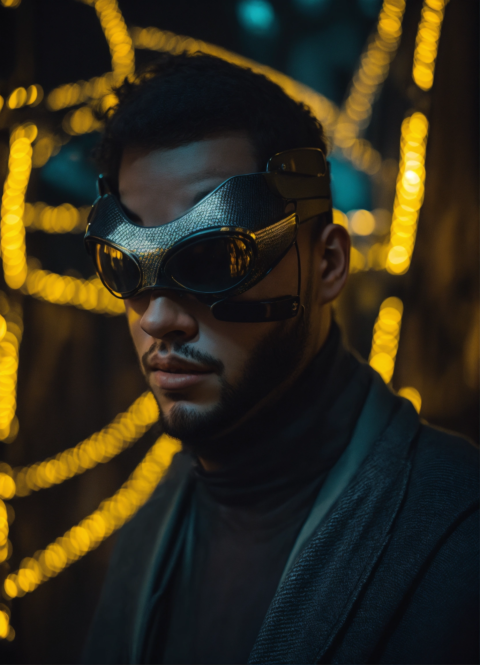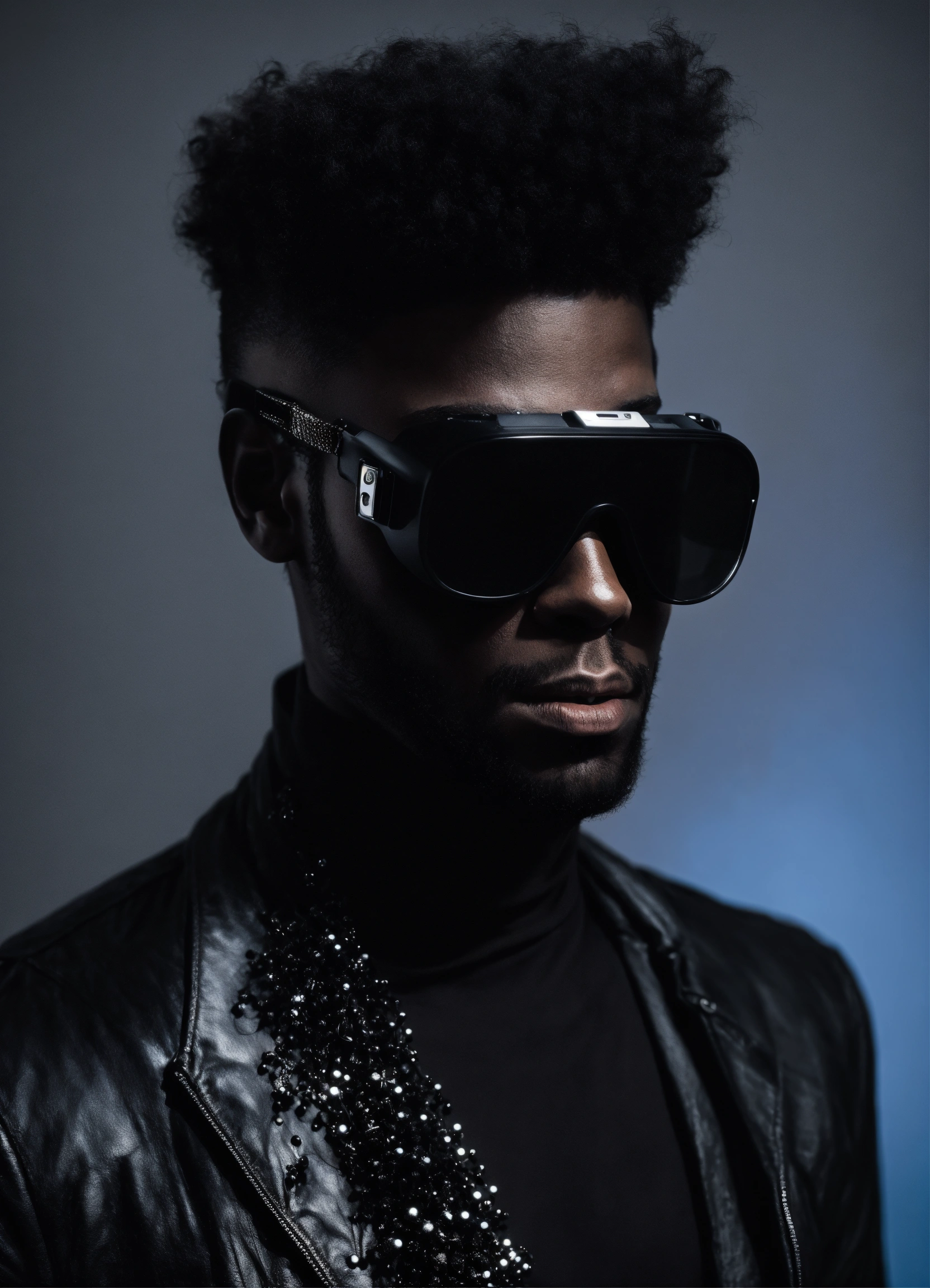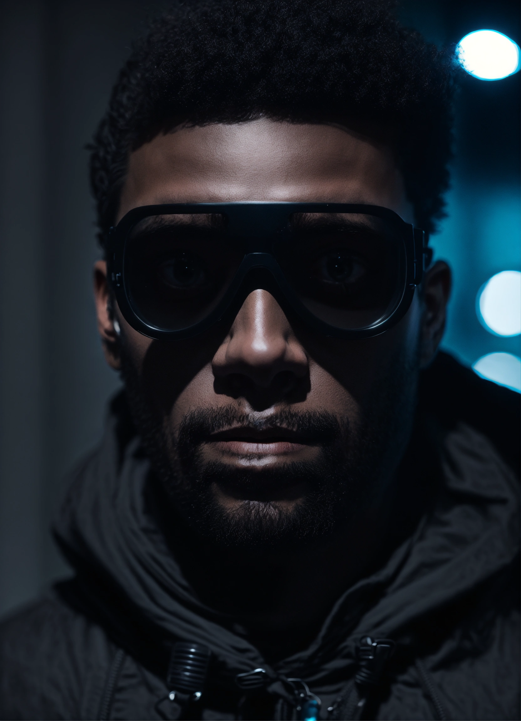 Selfi homme cagoulé full noir visage flouter futuriste