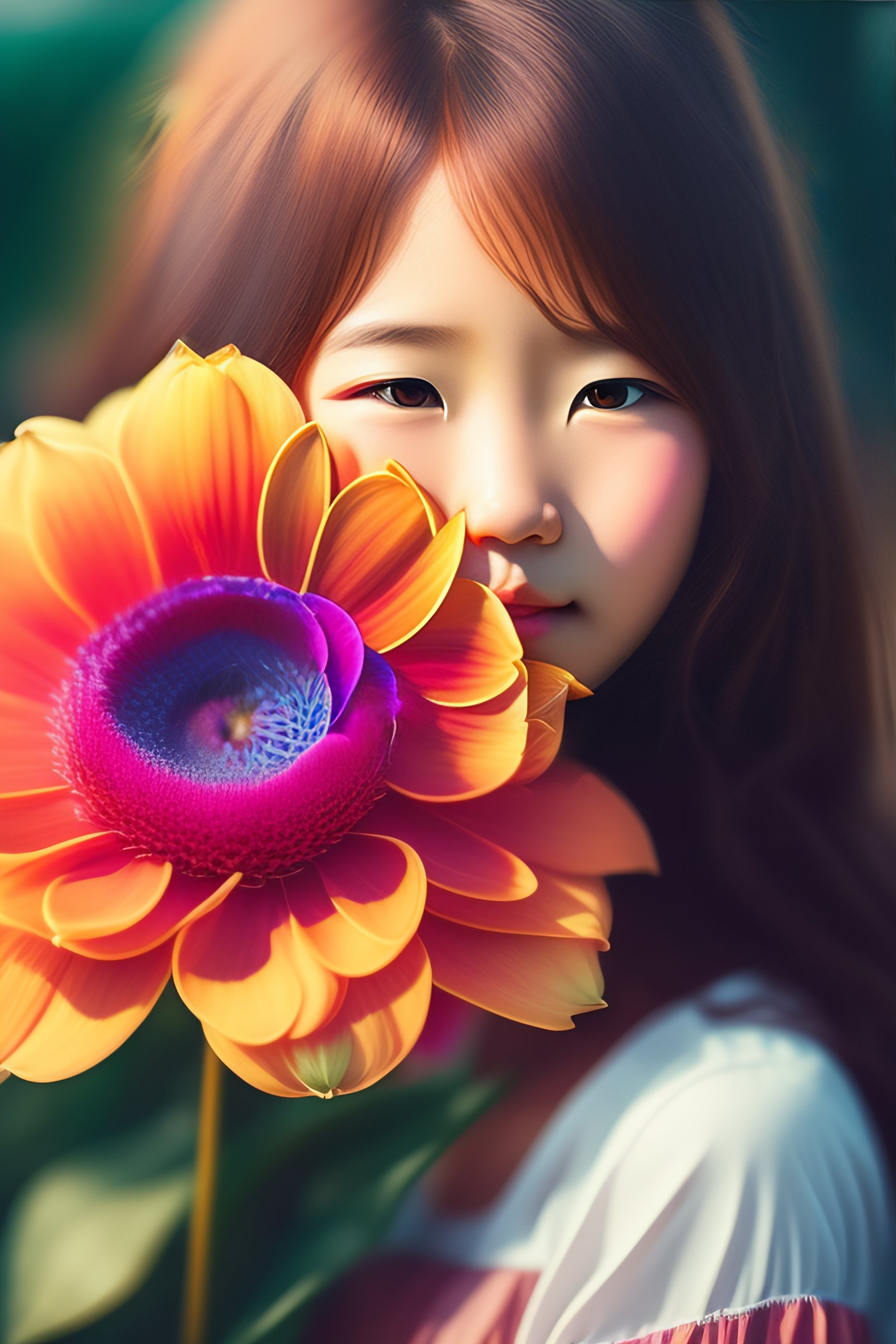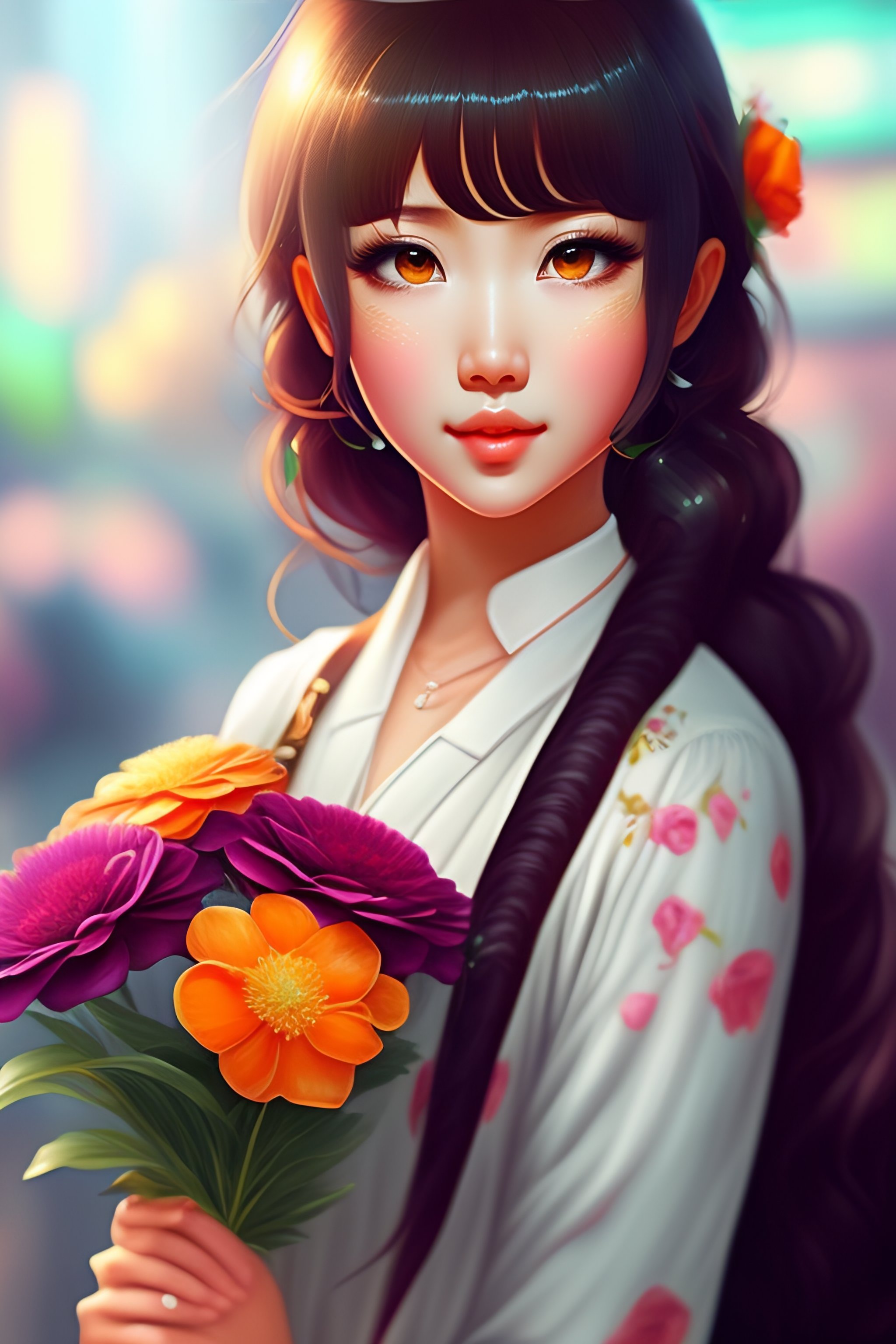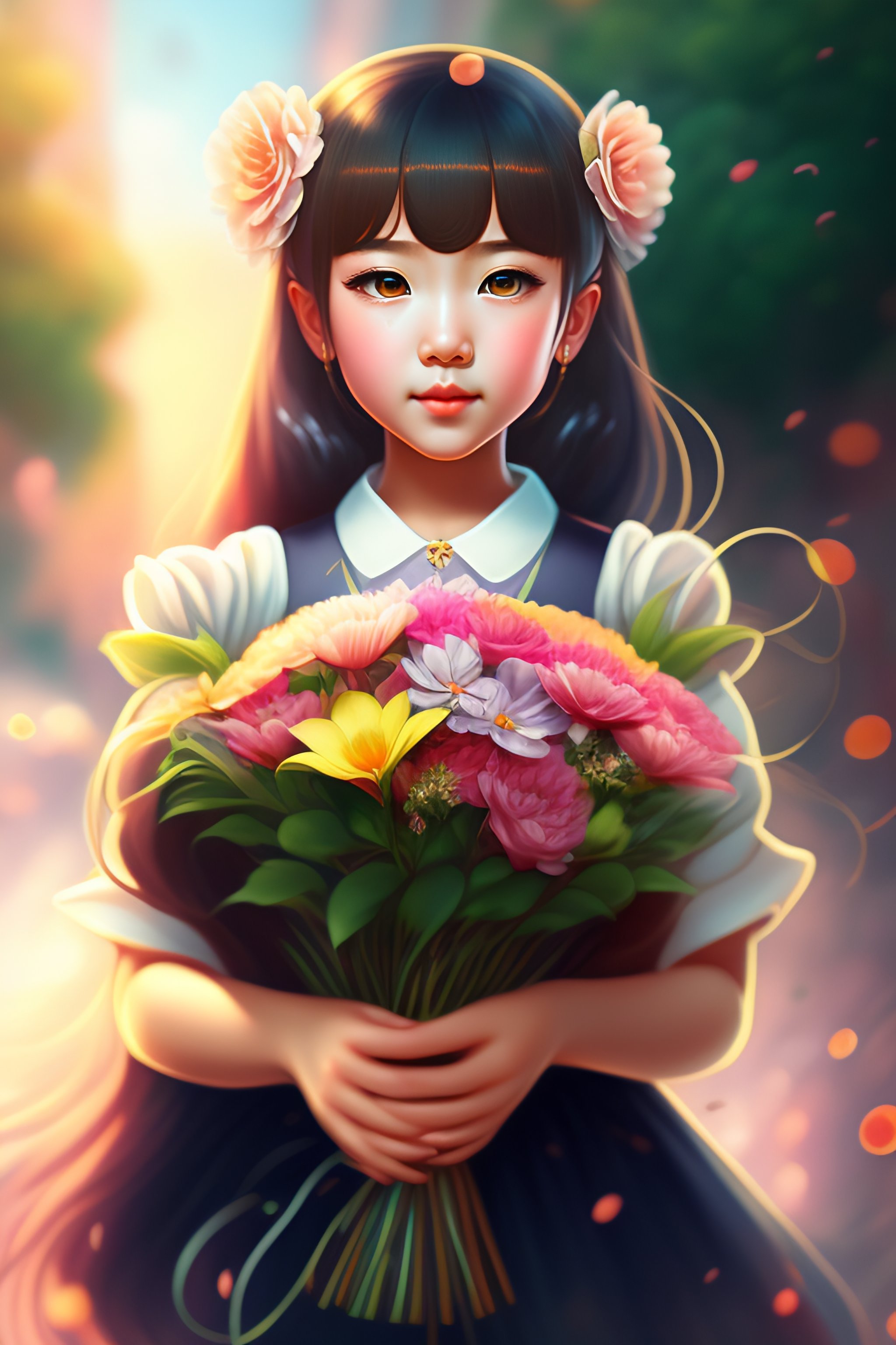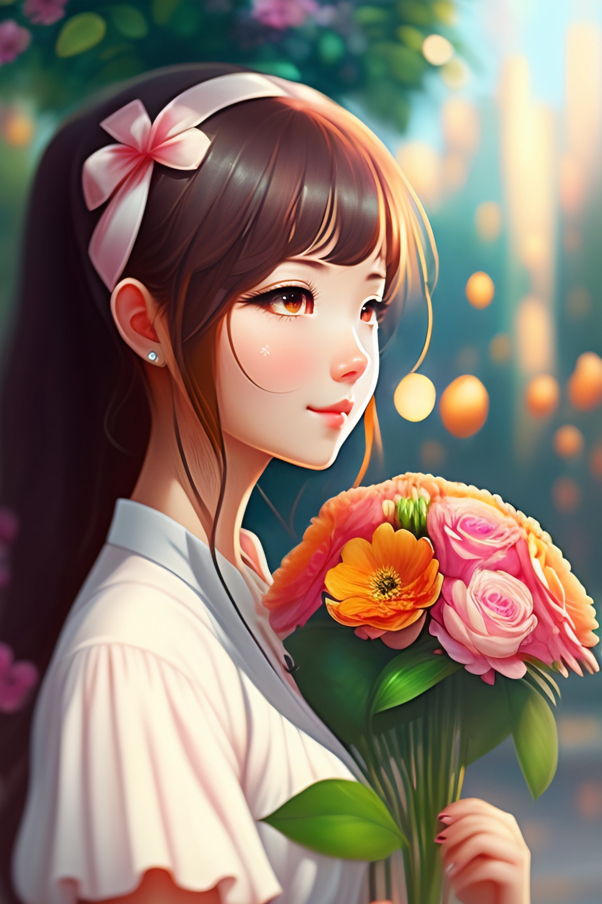 Girl holding a flower bouquet anime