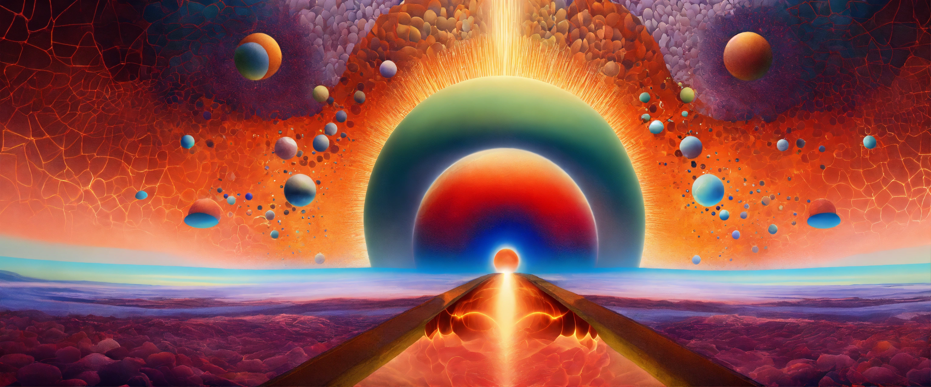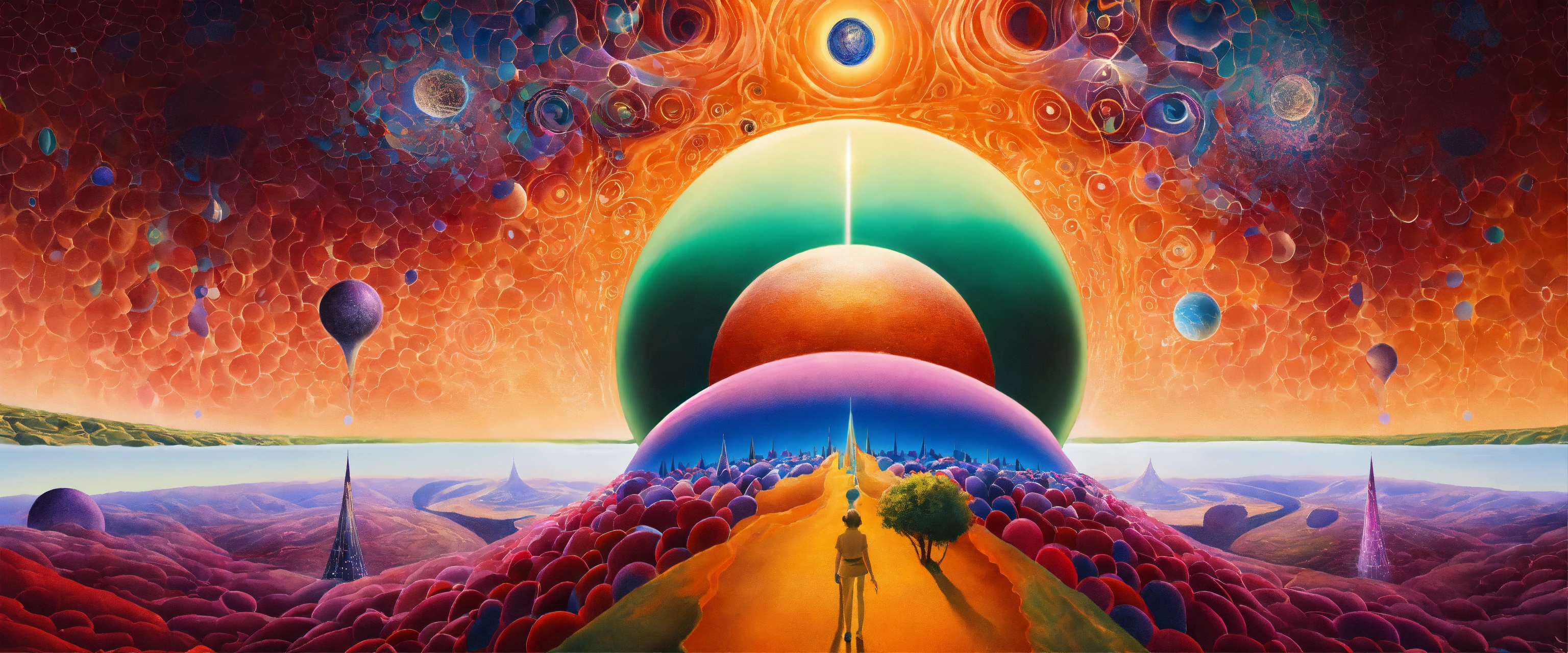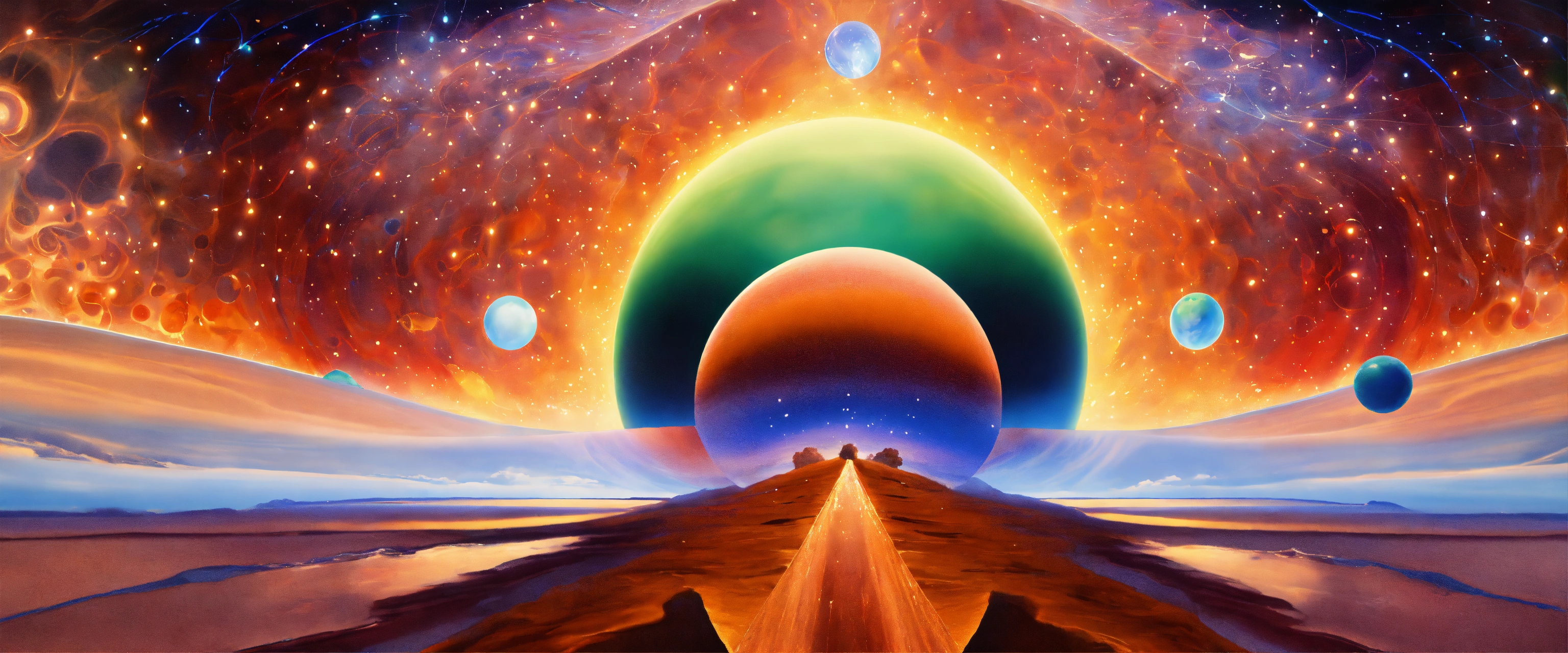 Visualize the possibility of parallel universes in quantum mechanics and aliens, in a digital artwork by georgia o'keeffe, 16k resolution.