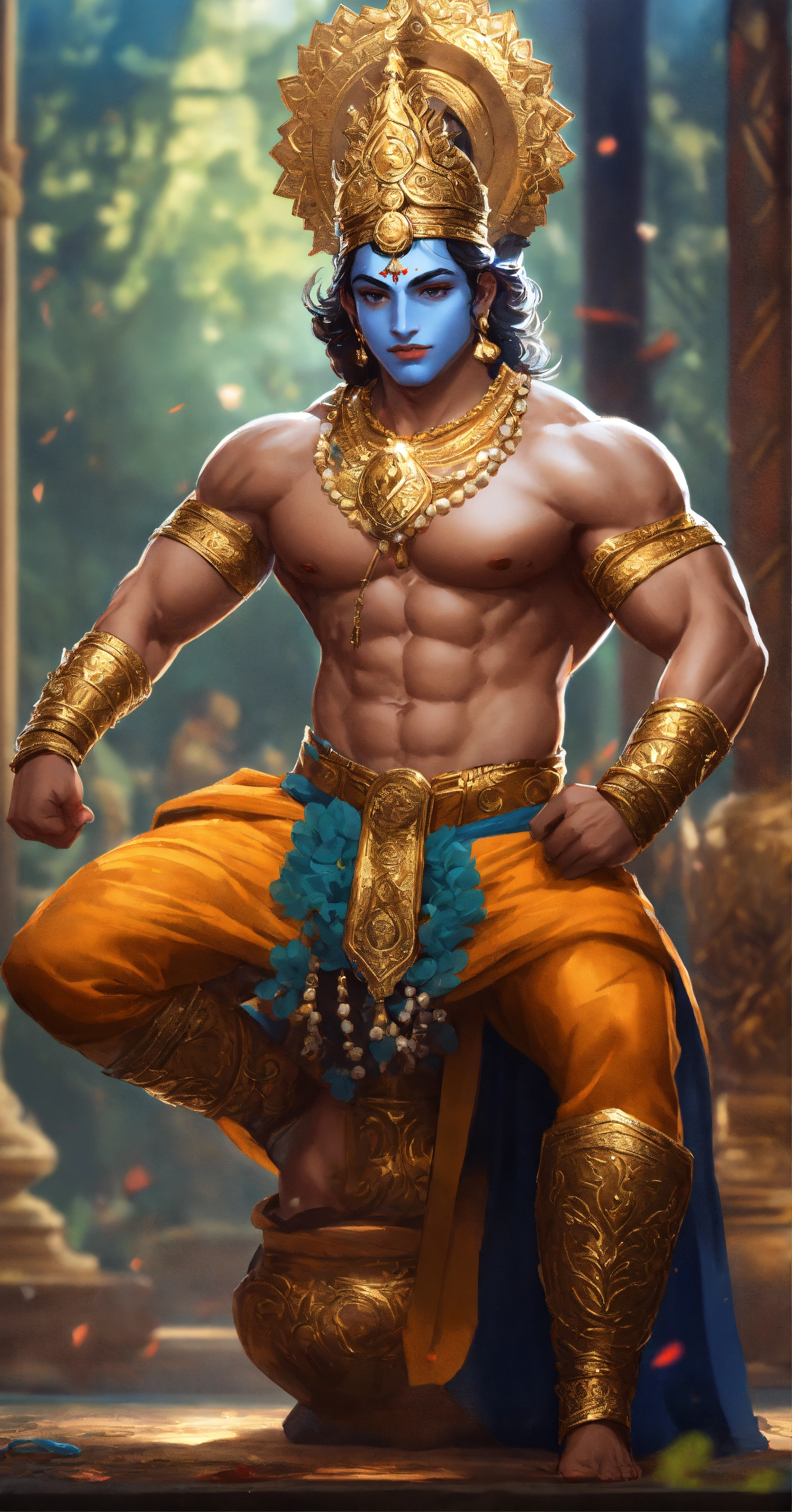 A highly detailed highly realistic image of short platinum lord krishna wearing mma dresss, heroic american stance pose, muscular, intricate, elegant, highly detailed, centered, artstation, concept art, smooth, sharp focus, mobile legend concept art, wallpaper for mobile