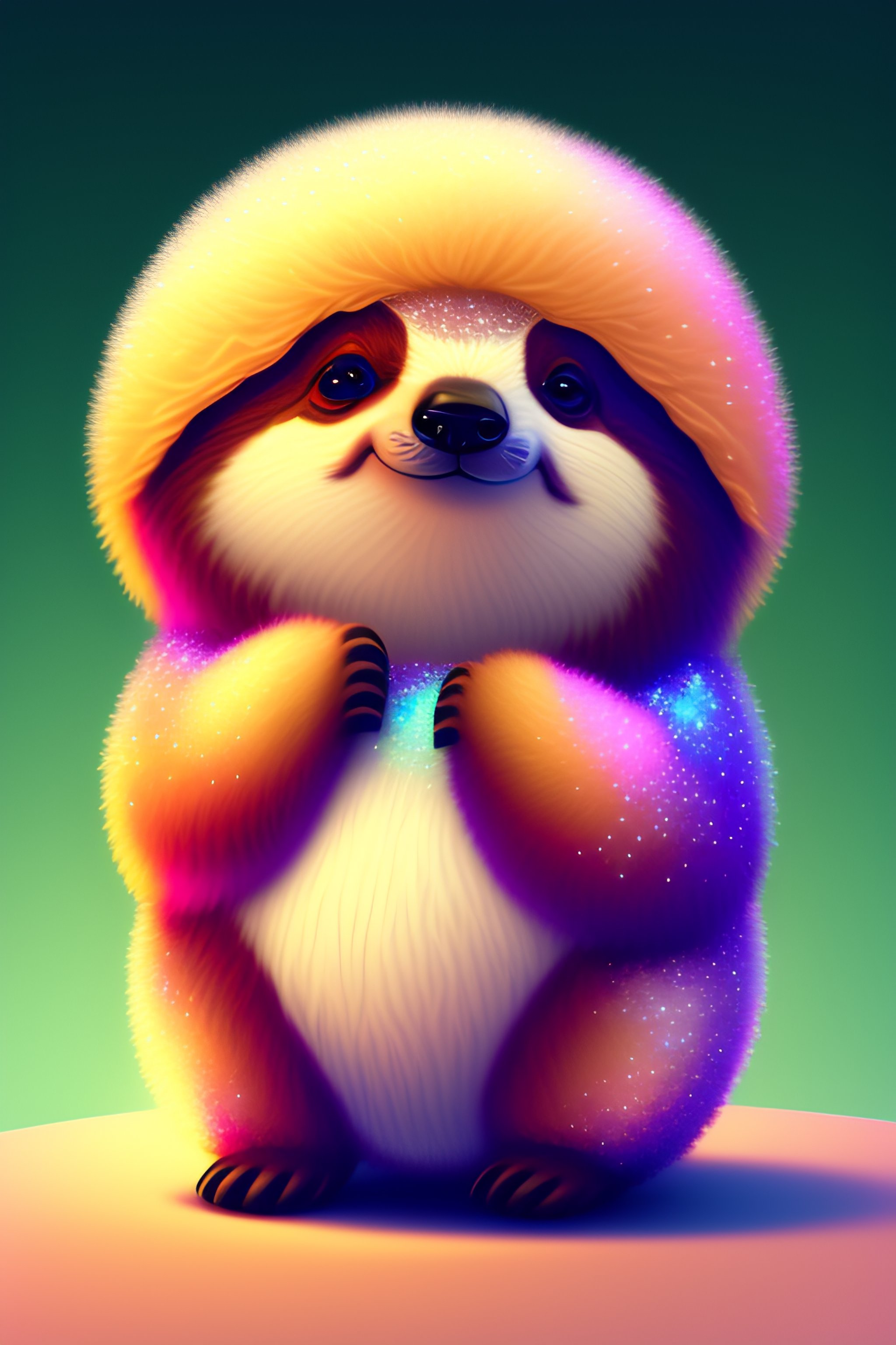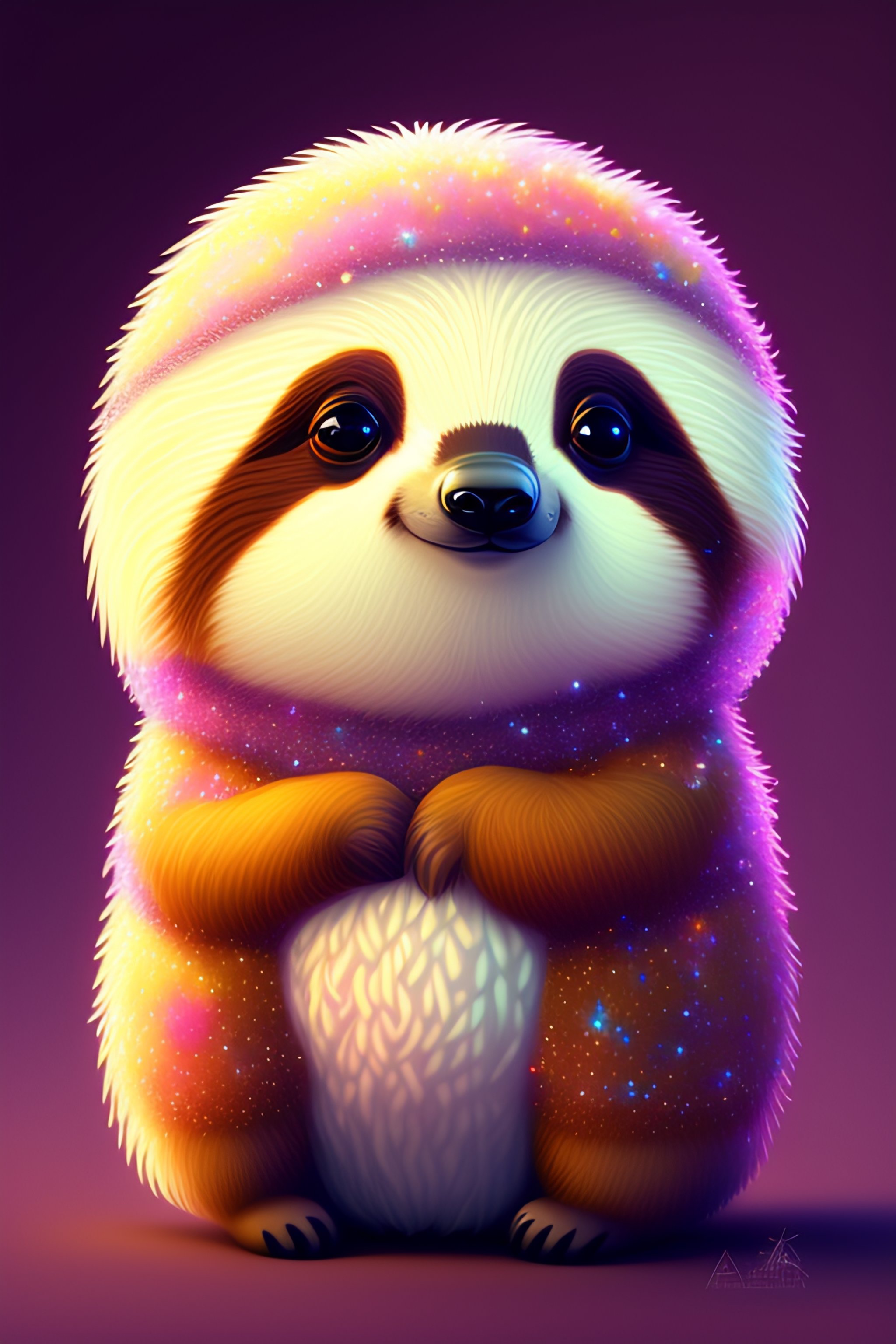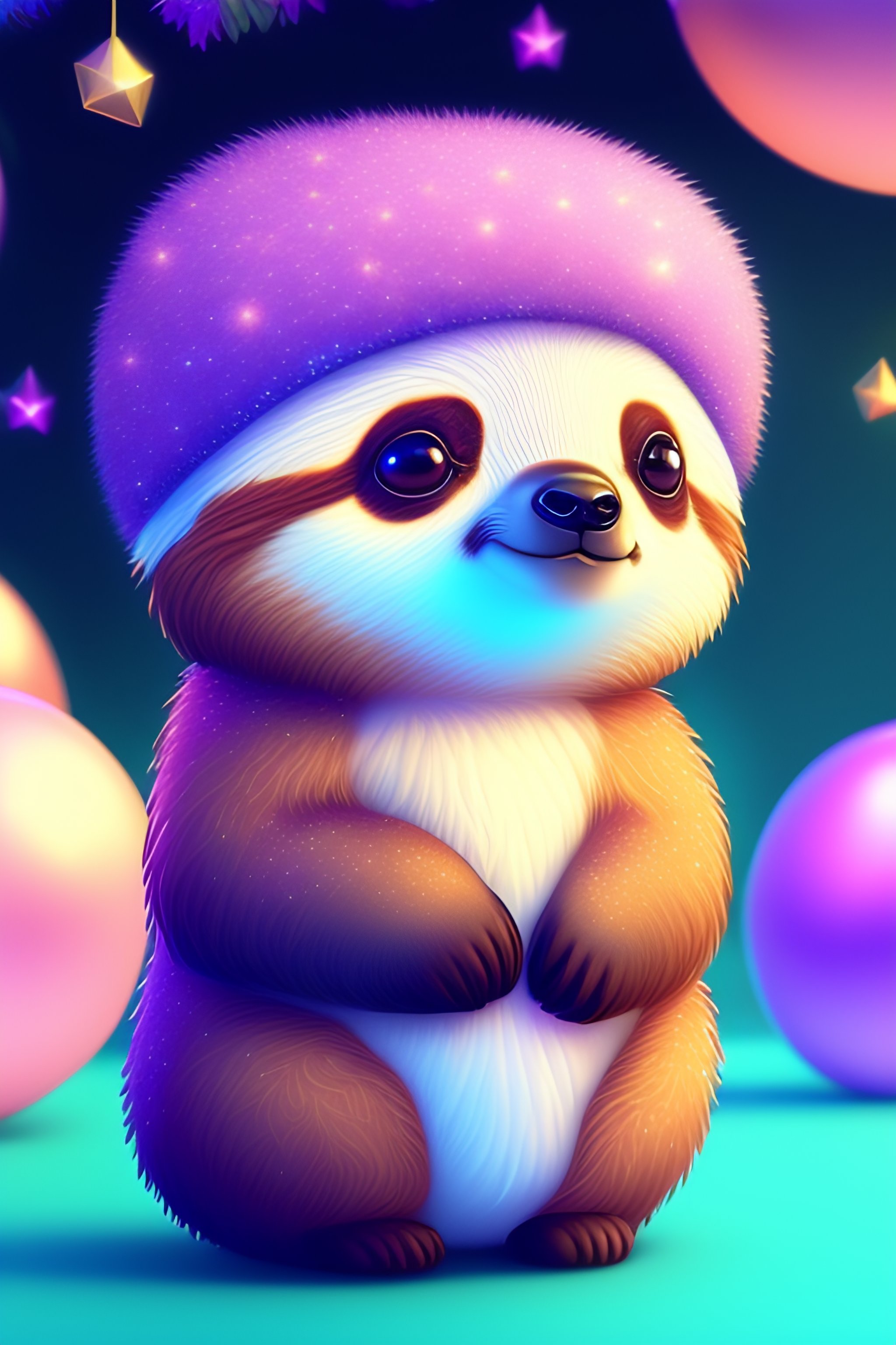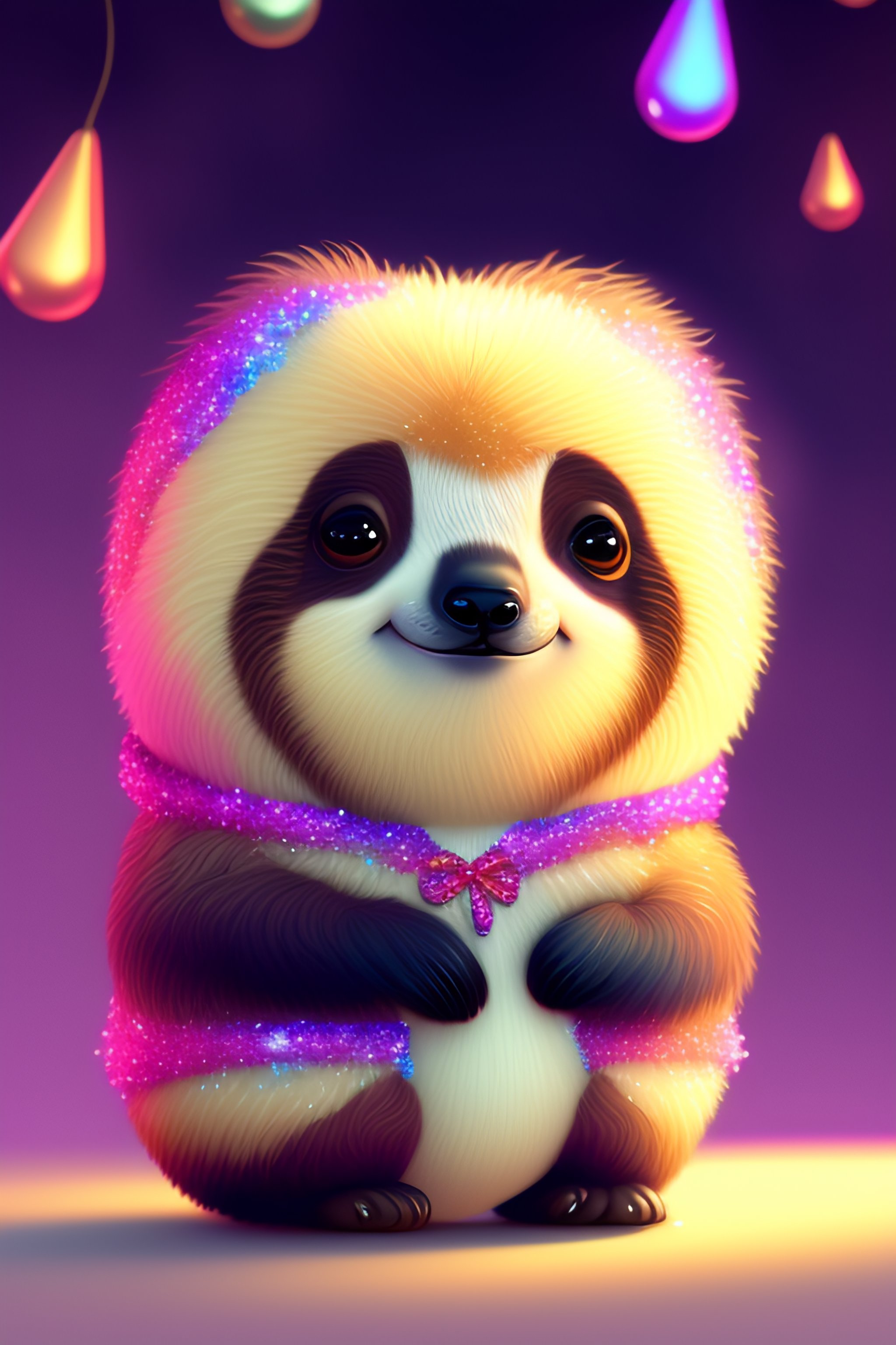 Cute and adorable cartoon fluffy sloth, fantasy, glitter, party, dreamlike, surrealism, super cute, trending on artstation