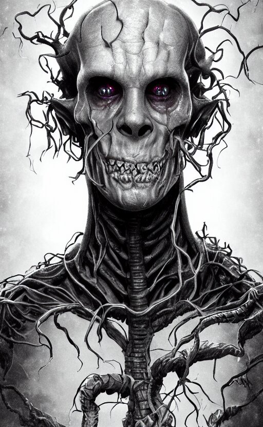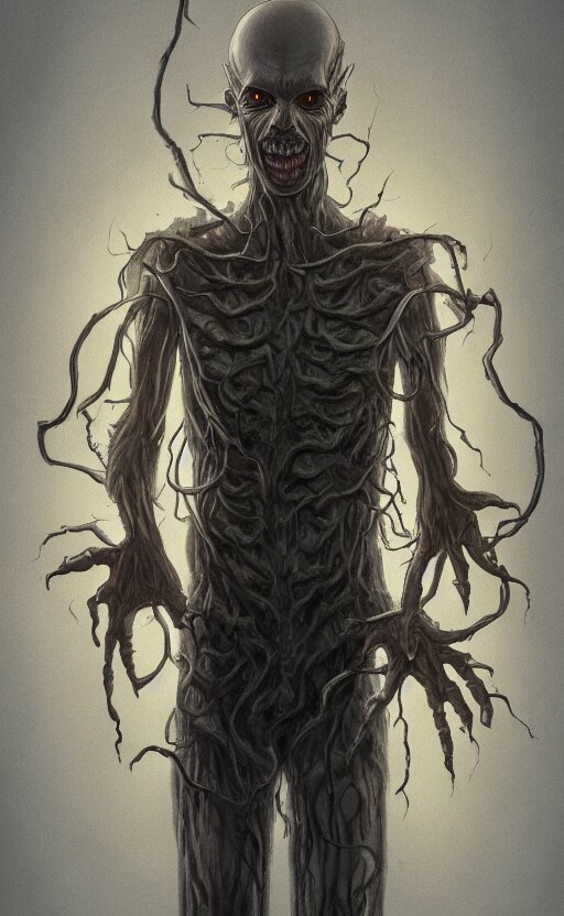 Full body portrait of vecna from stranger things in the upside down, dynamic lighting, photorealistic, fantasy concept art, ambient lighting, atmospherical, stunning visuals, creative, cinematic, ultra detailed, trending on art station