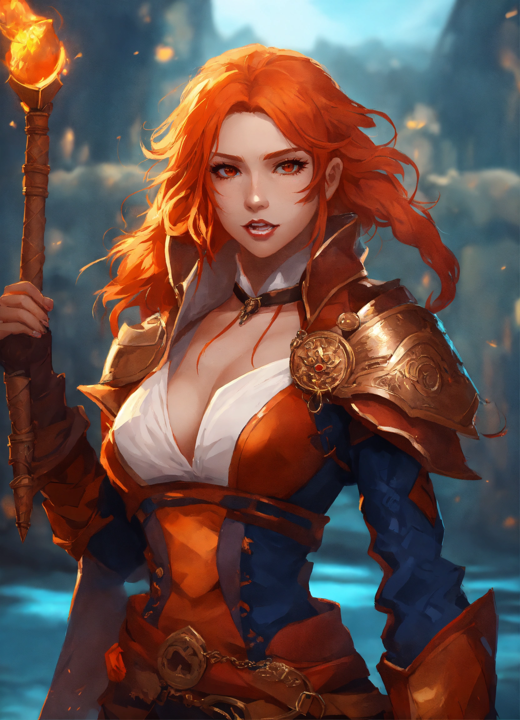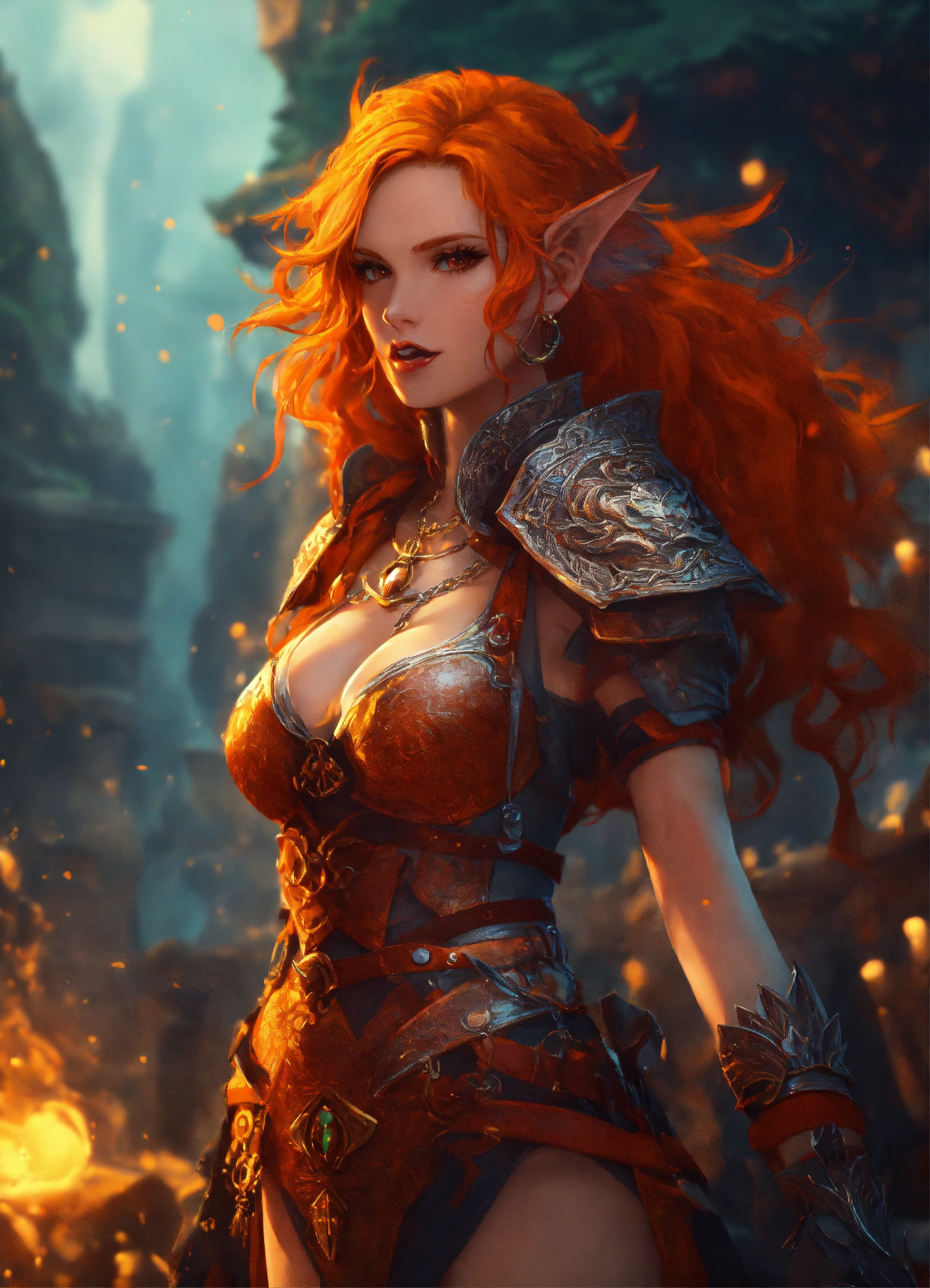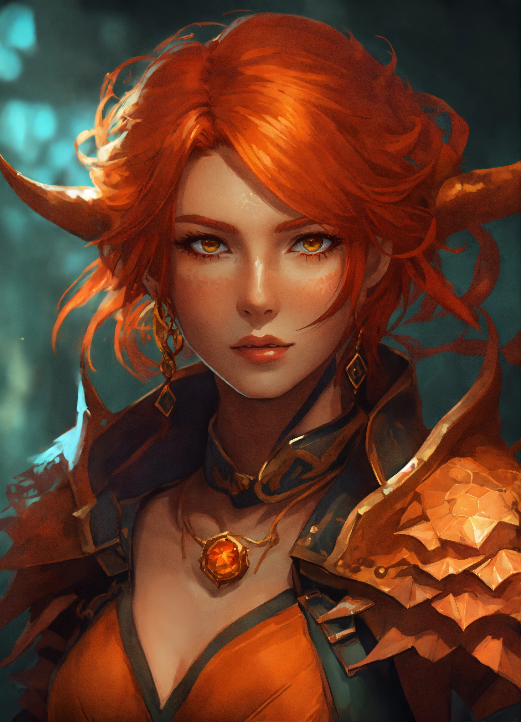 Draconic claws, draconian jaw, scales in her face and body, draconic traits to draconic human woman with reddish orange hair, explorer outfit, fantasy ambience, anime style