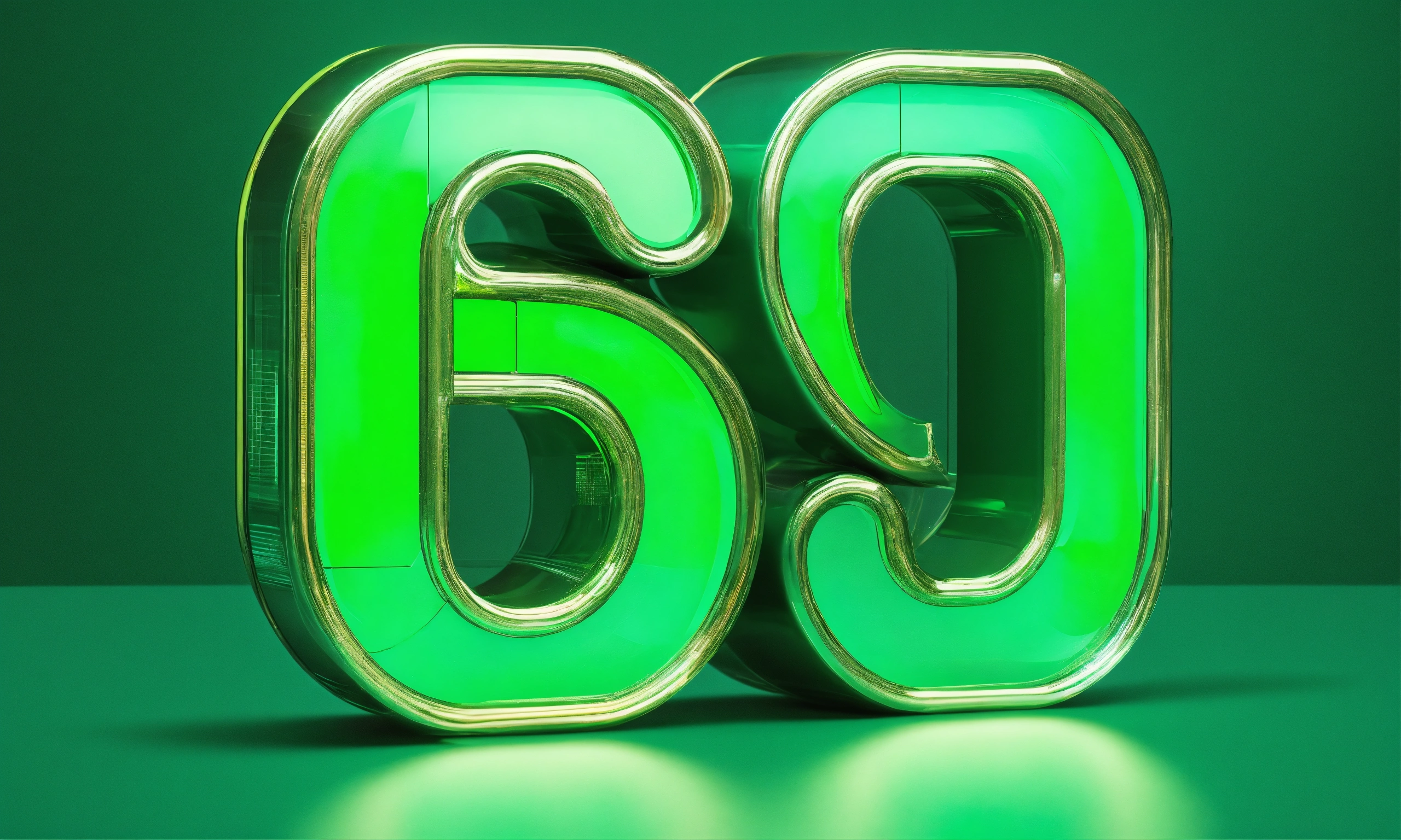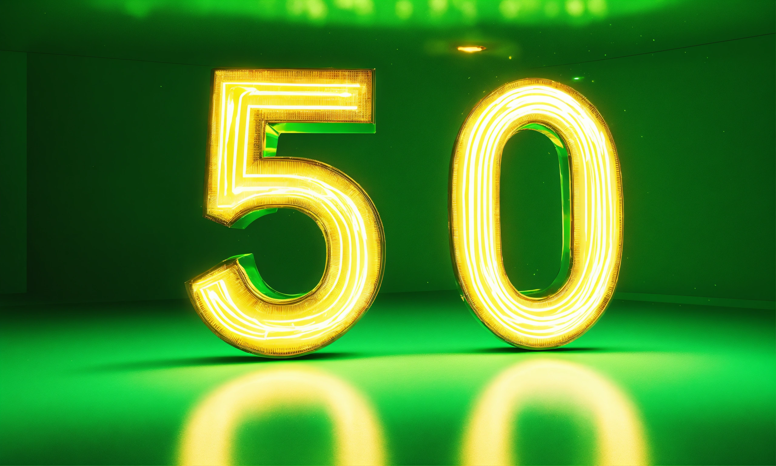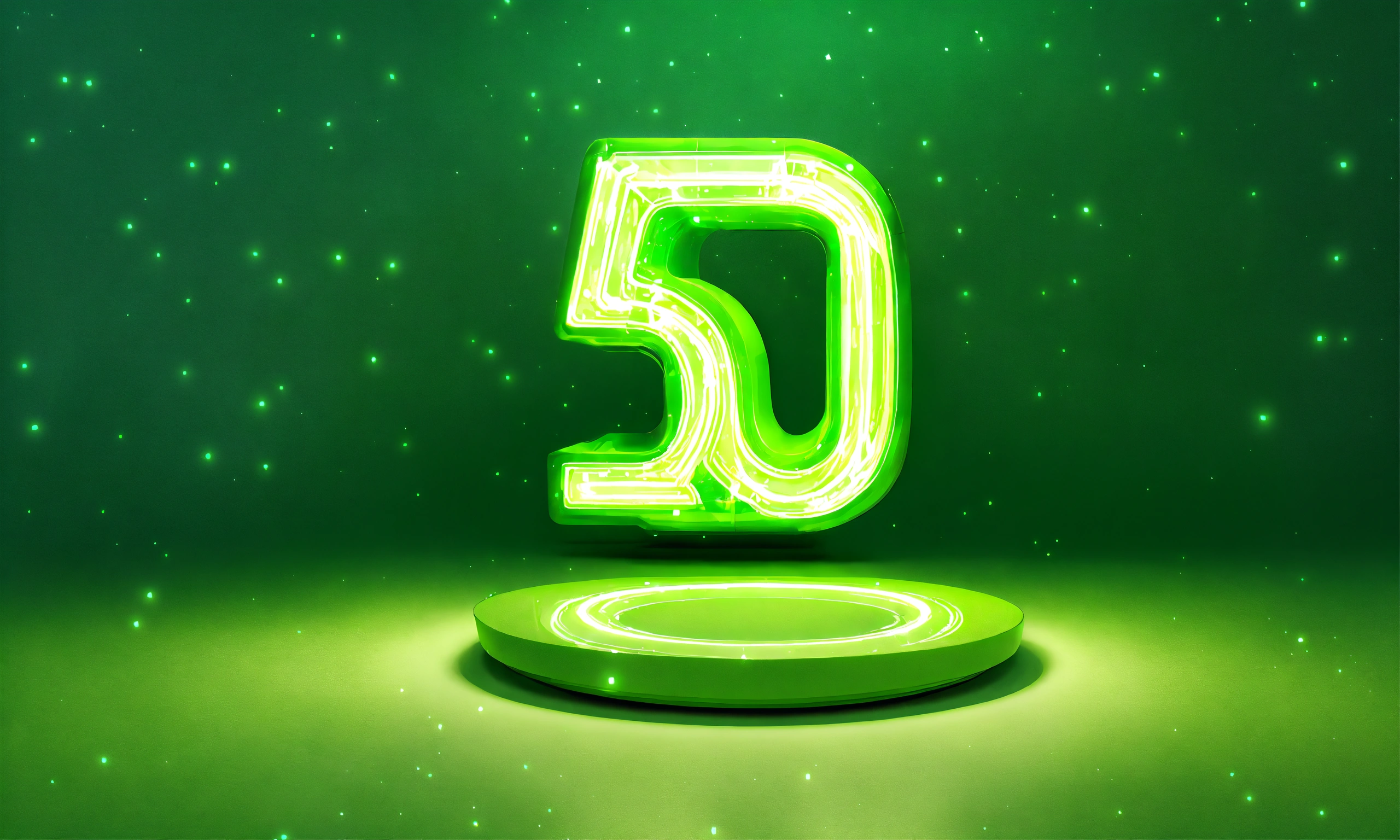 Number 5000, perspective, reflection, green background, bight spark, photo-realistic, 8k, high-definition