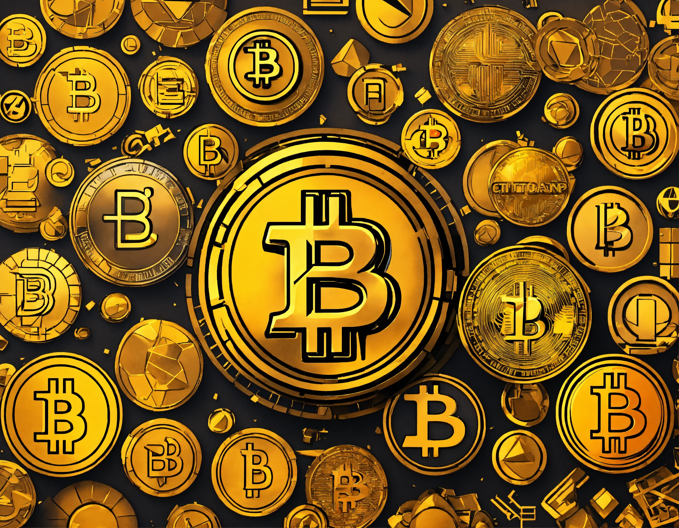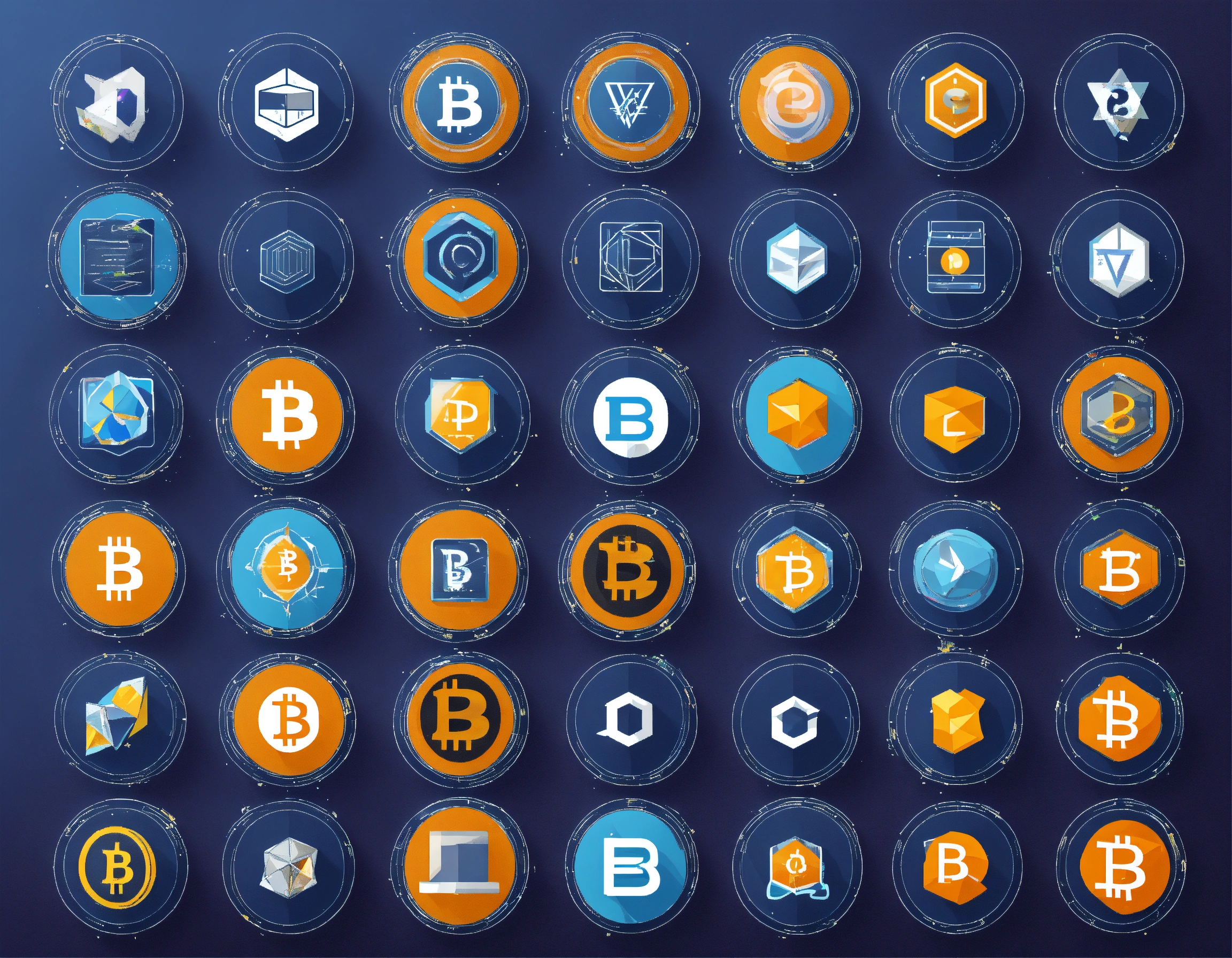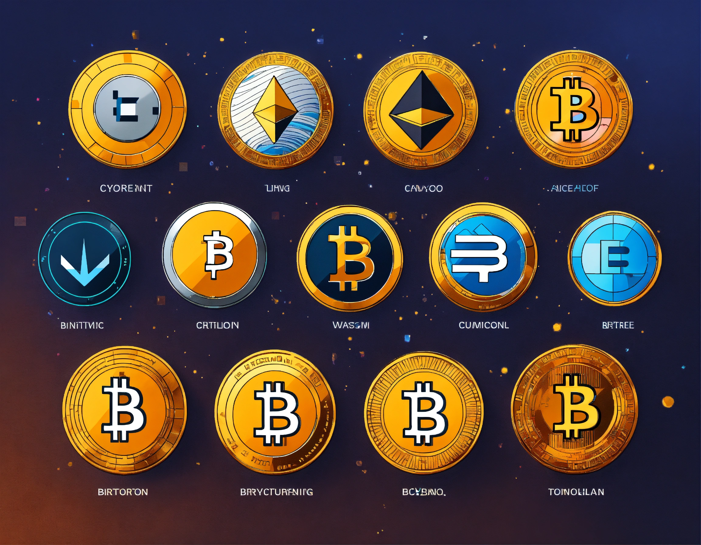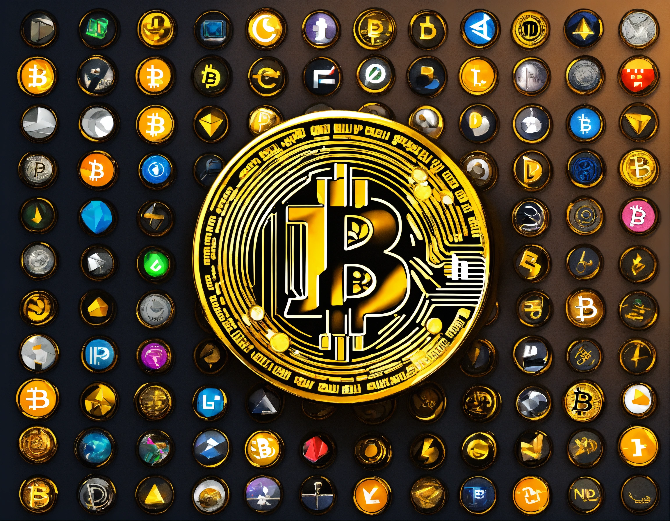 Create a visual representation that encompasses all varieties of cryptocurrency, utilizing the icons for each variety. each cryptocurrency icon should only be used once without over emphasizing bitcoin.