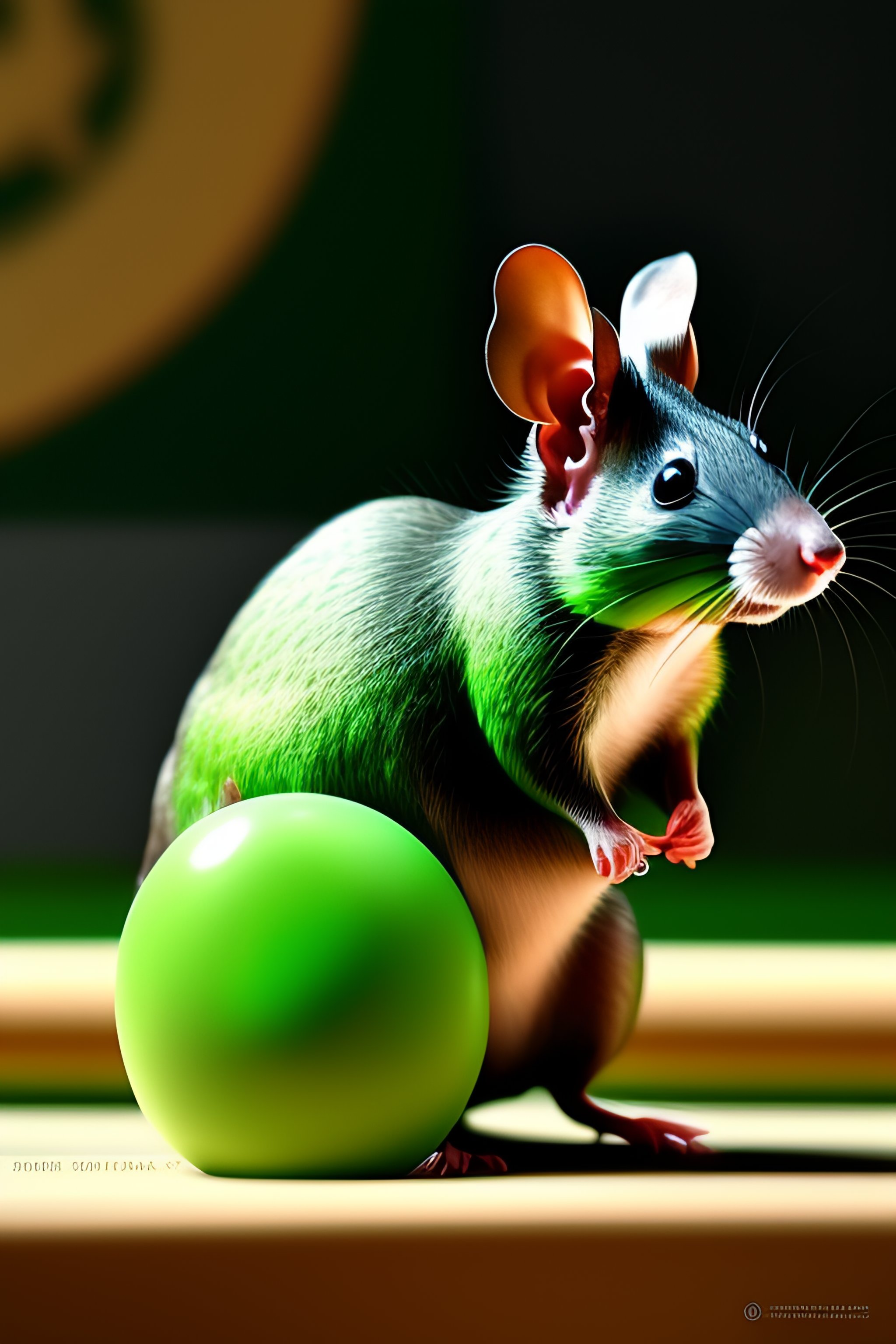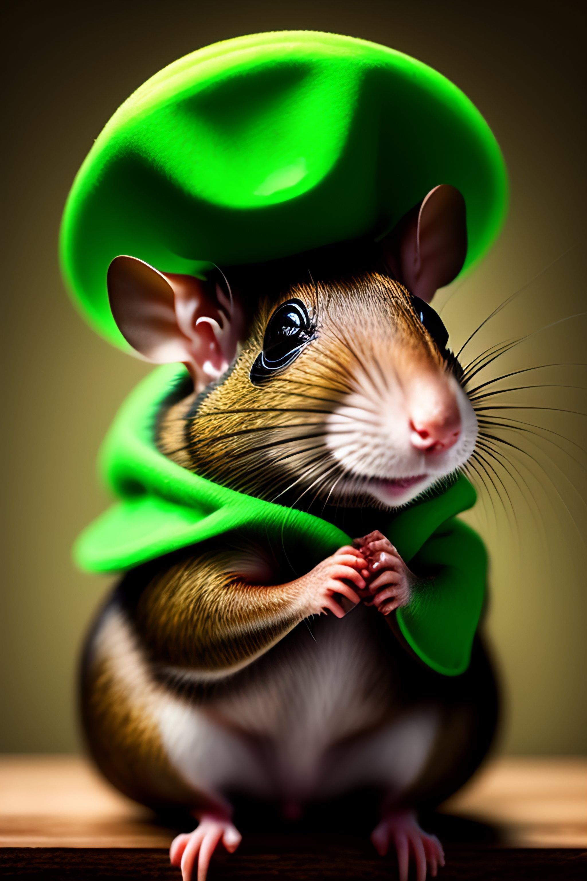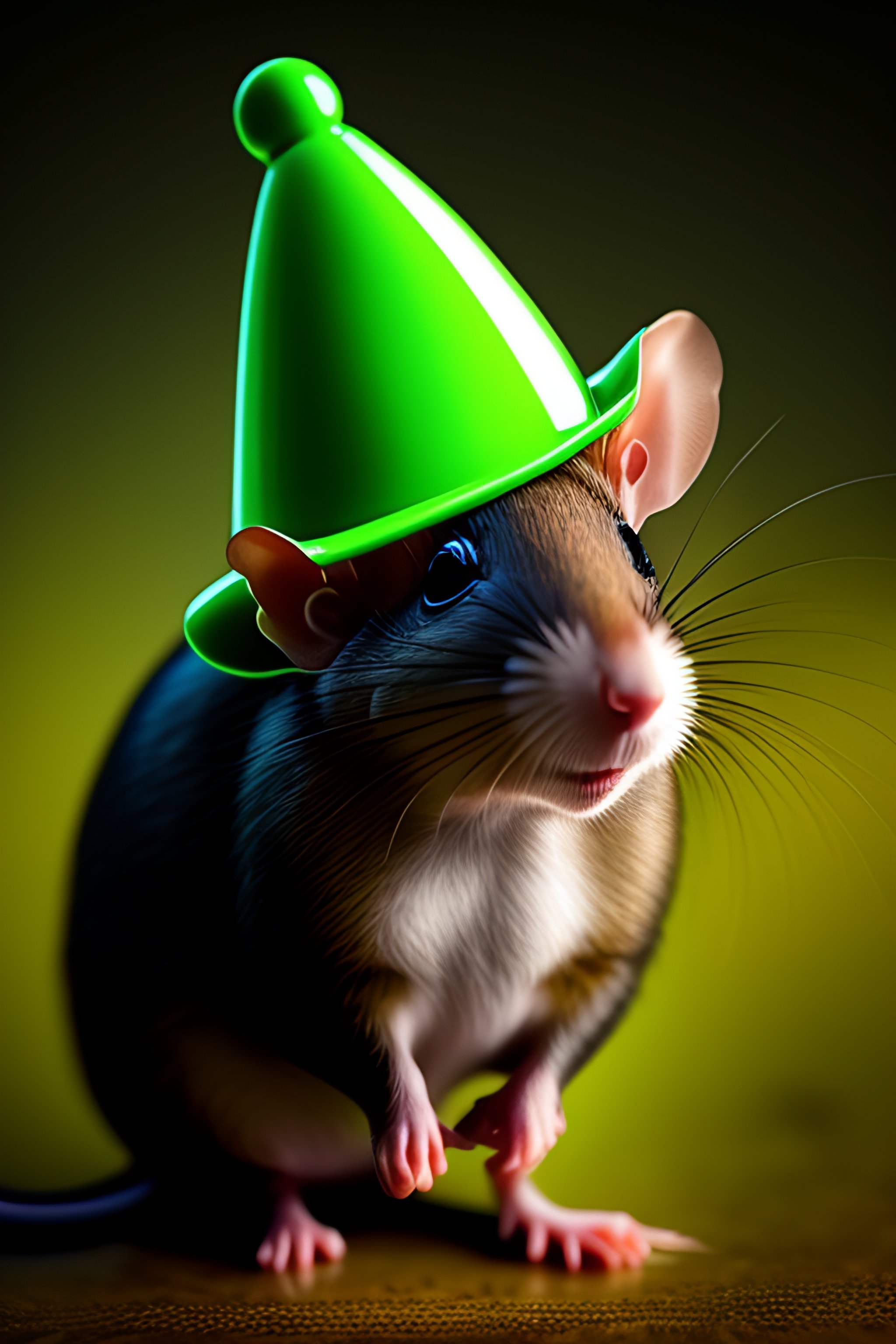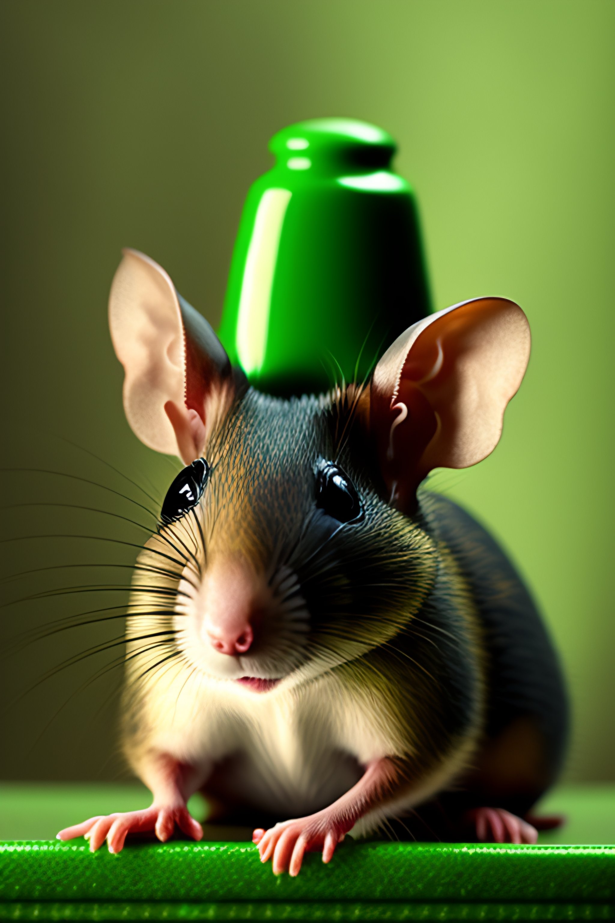 Ratón verde con fondo gris y sombrero de copa