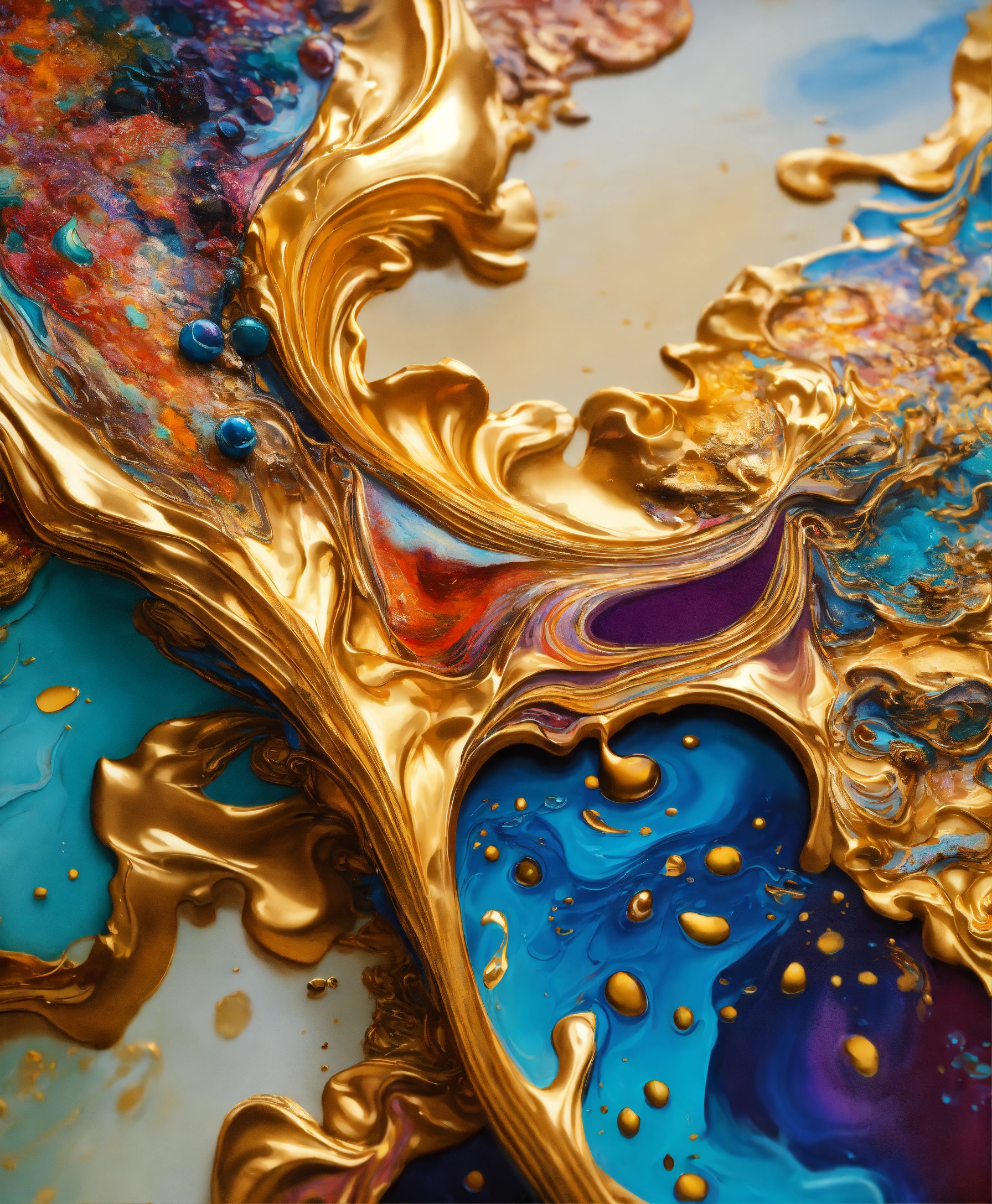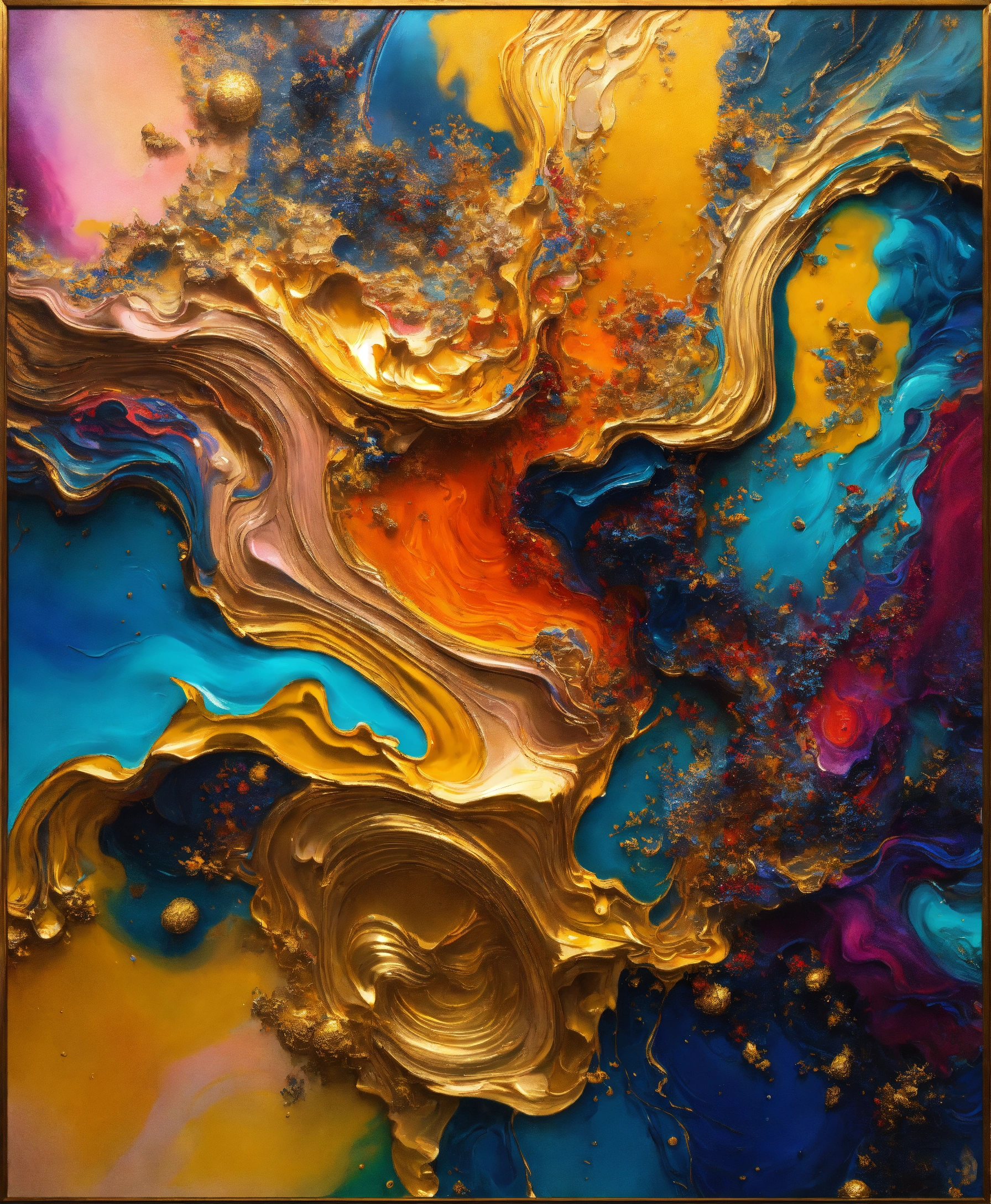 Colorful abstract painting oil and water complex complicated bright vivid colors beautiful opulent wealthy intricate hyperdetailed masterpiece awesome gold trim 8k