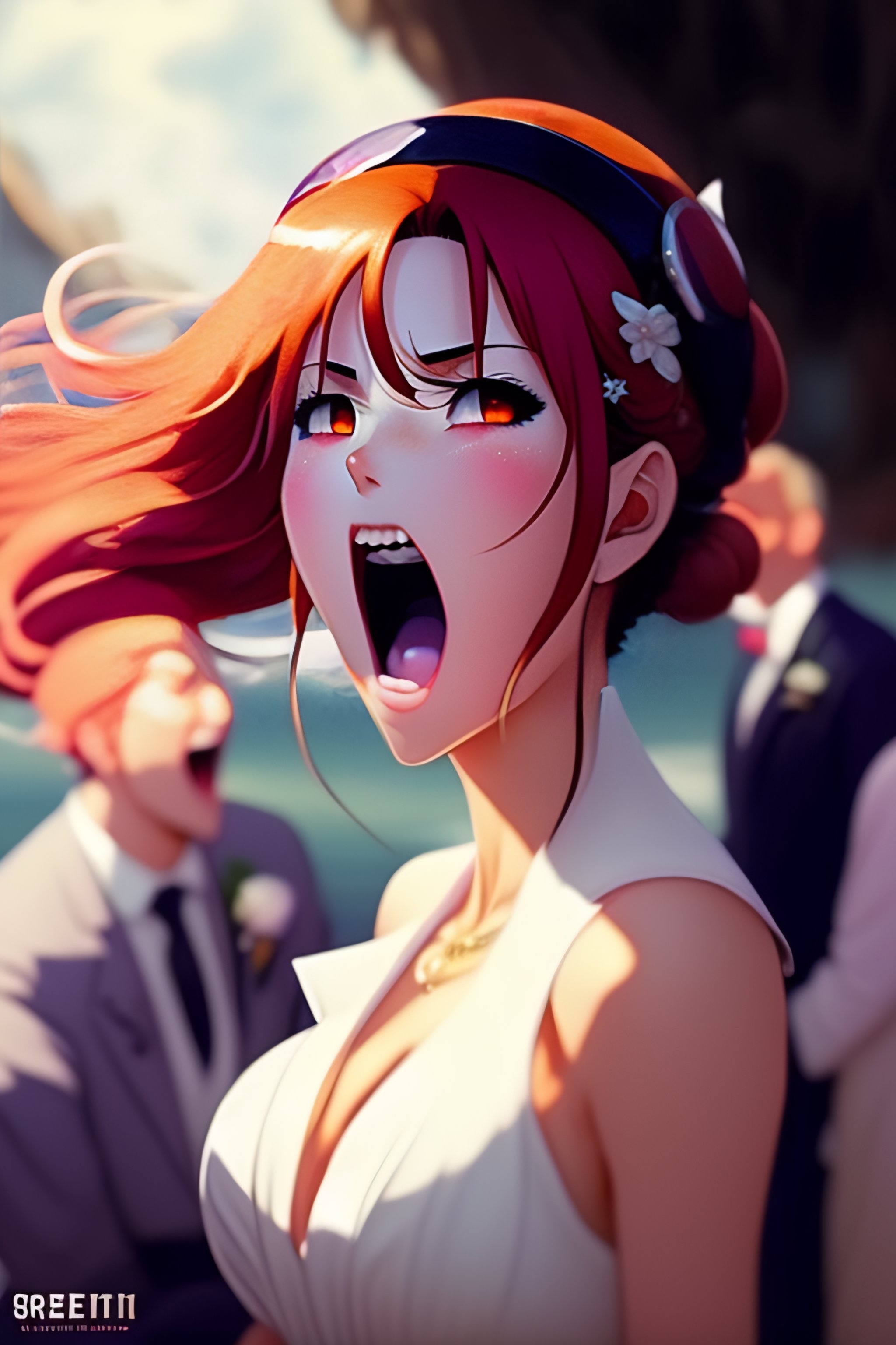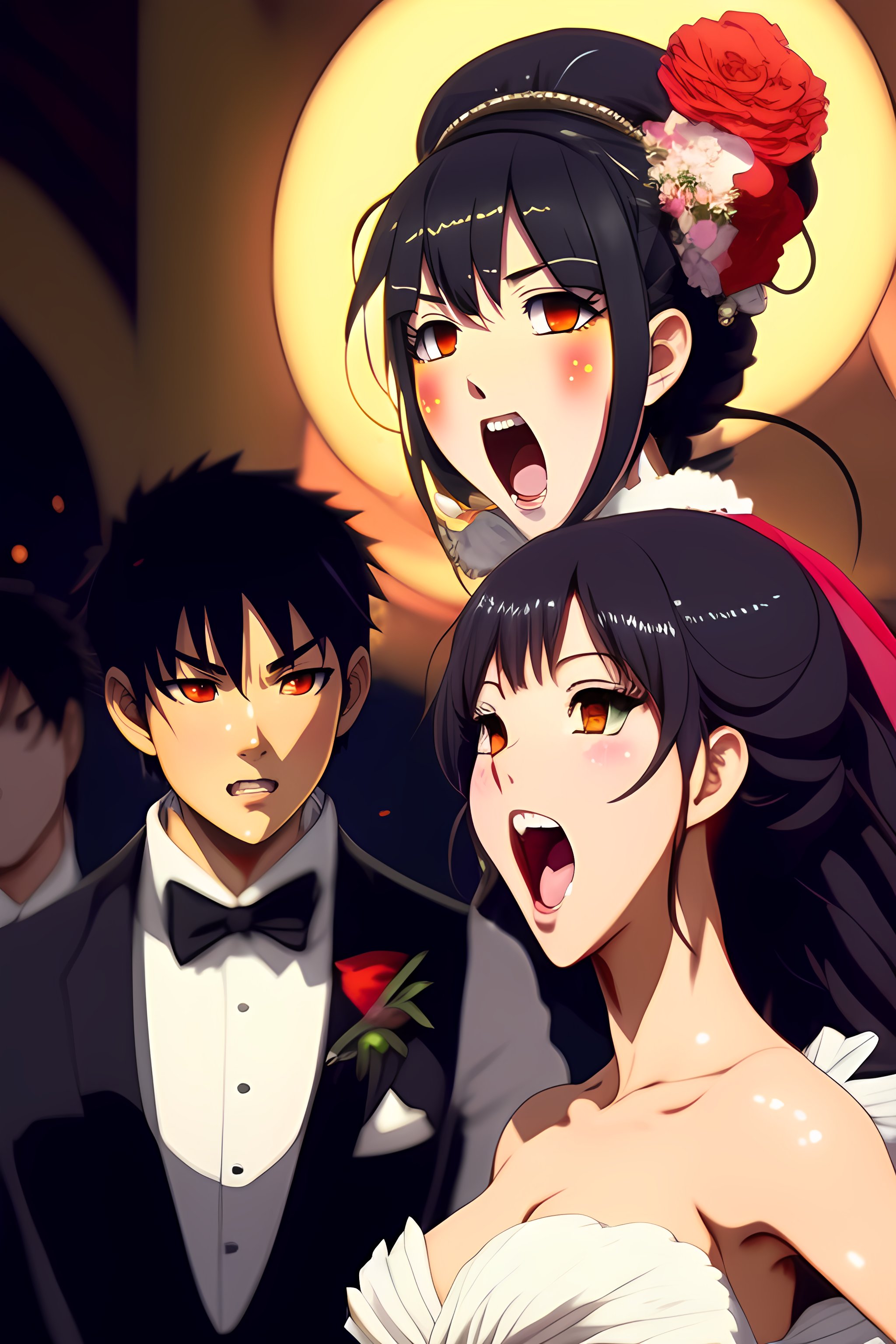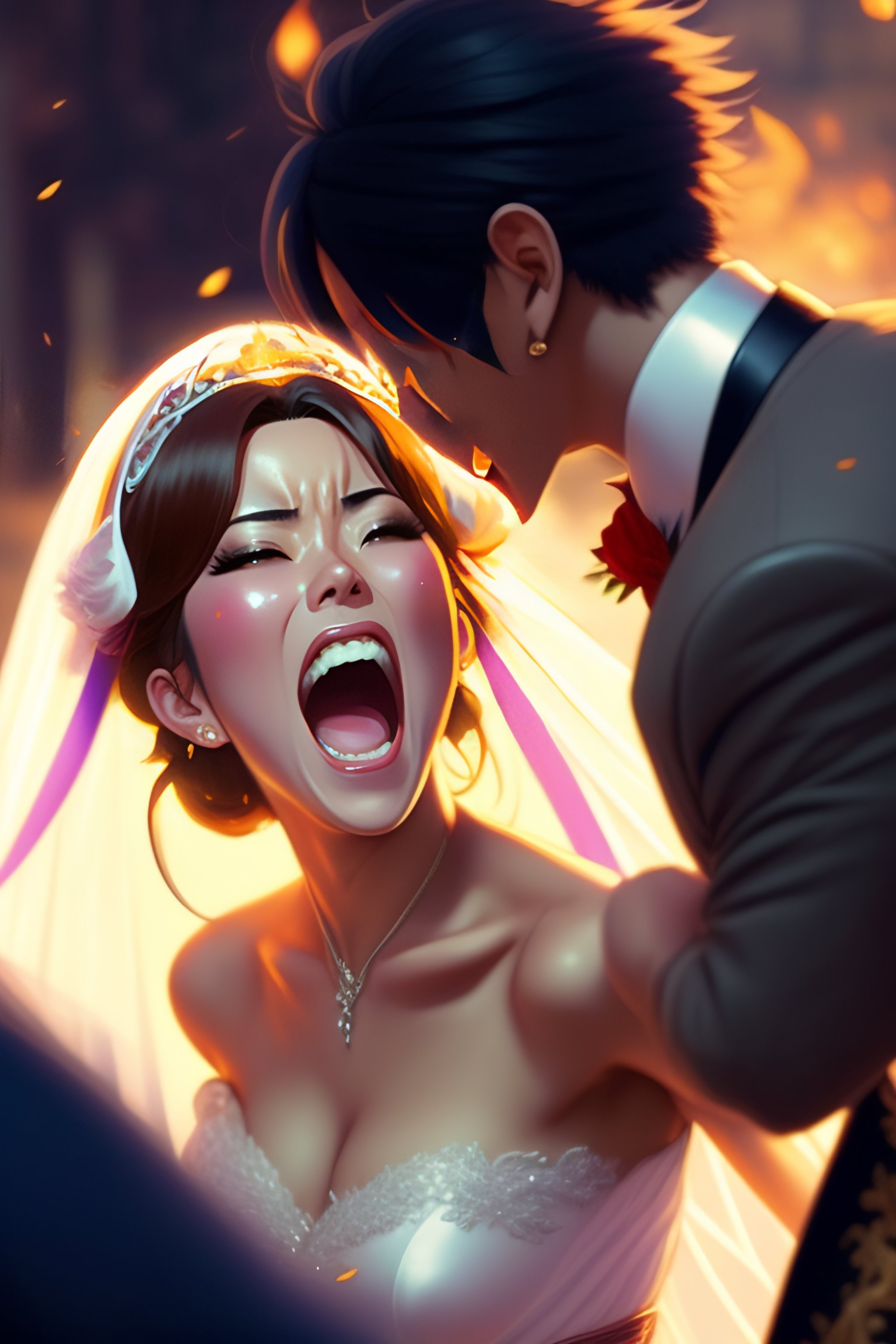 Anime bride screaming and slapping a groom