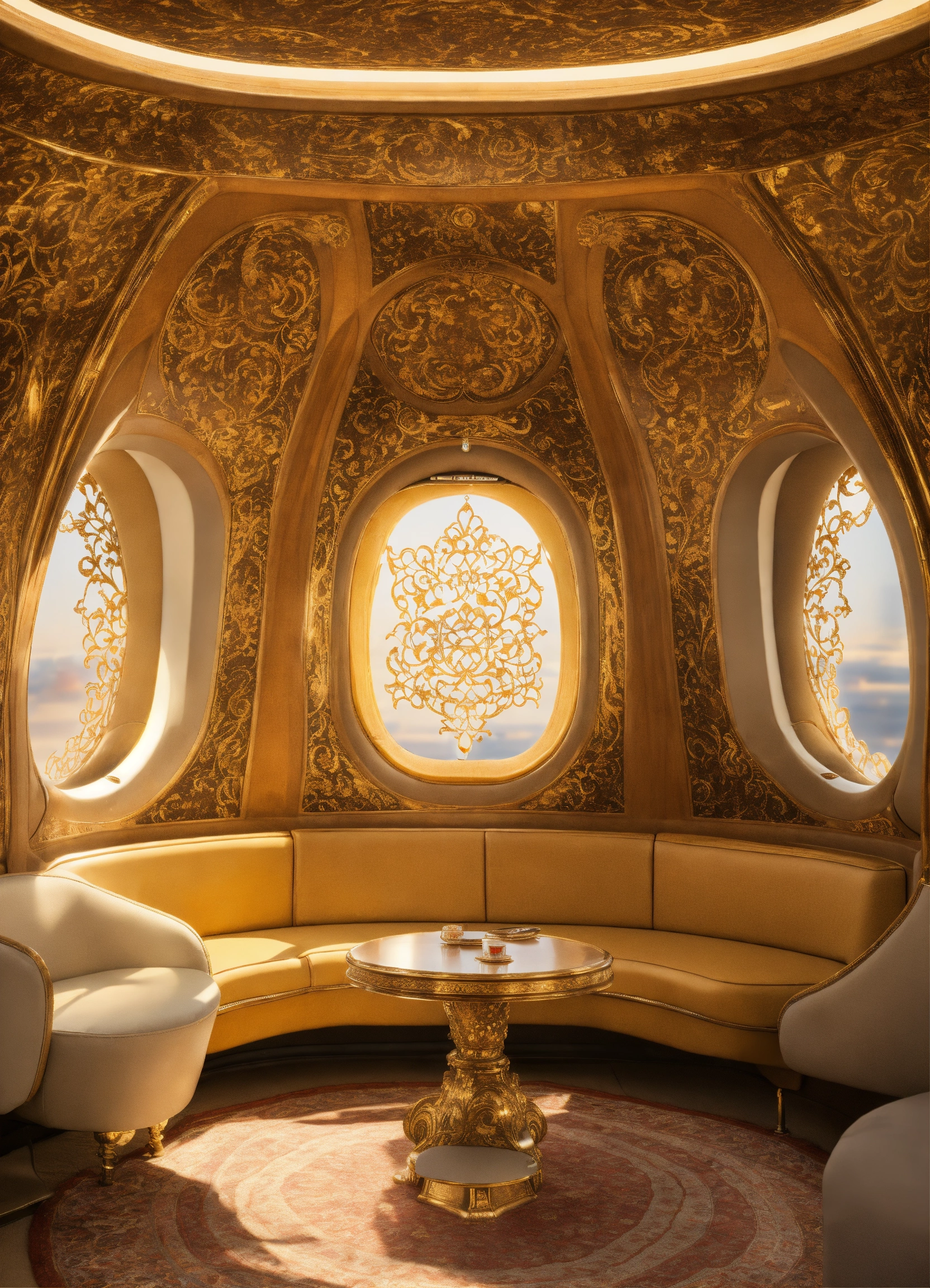 دلة + baroque saudi nouveau riche style airplane interior fuselage diwaniya