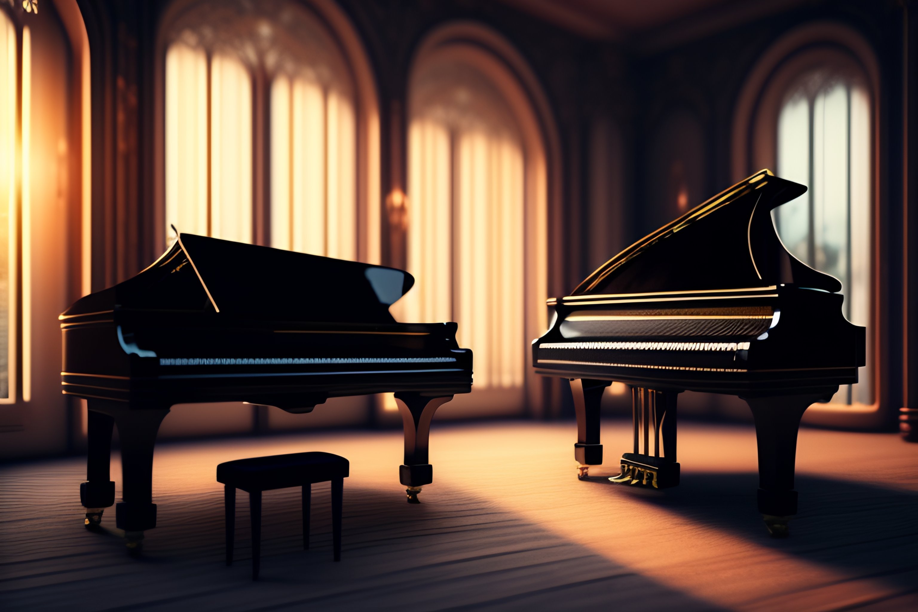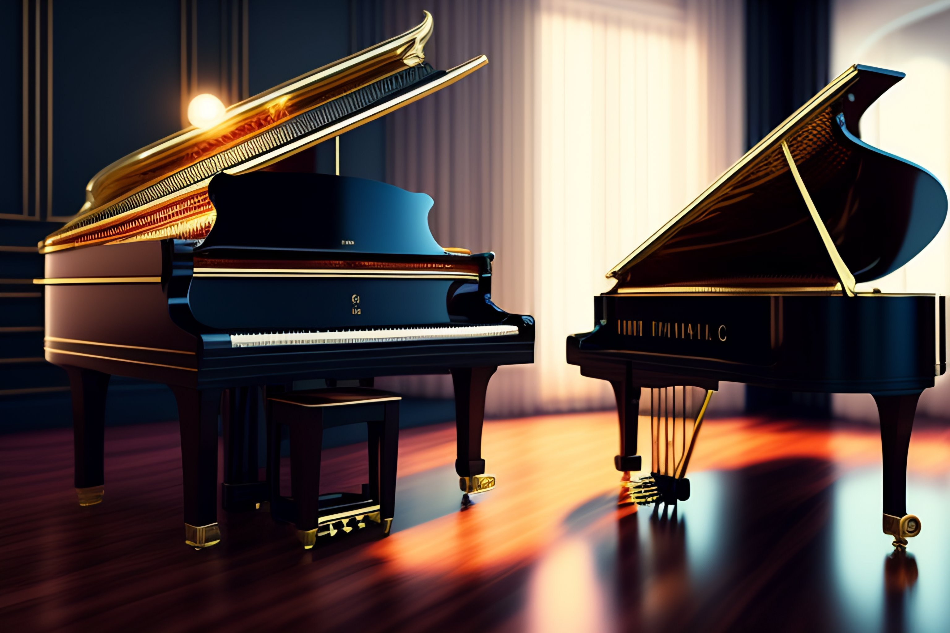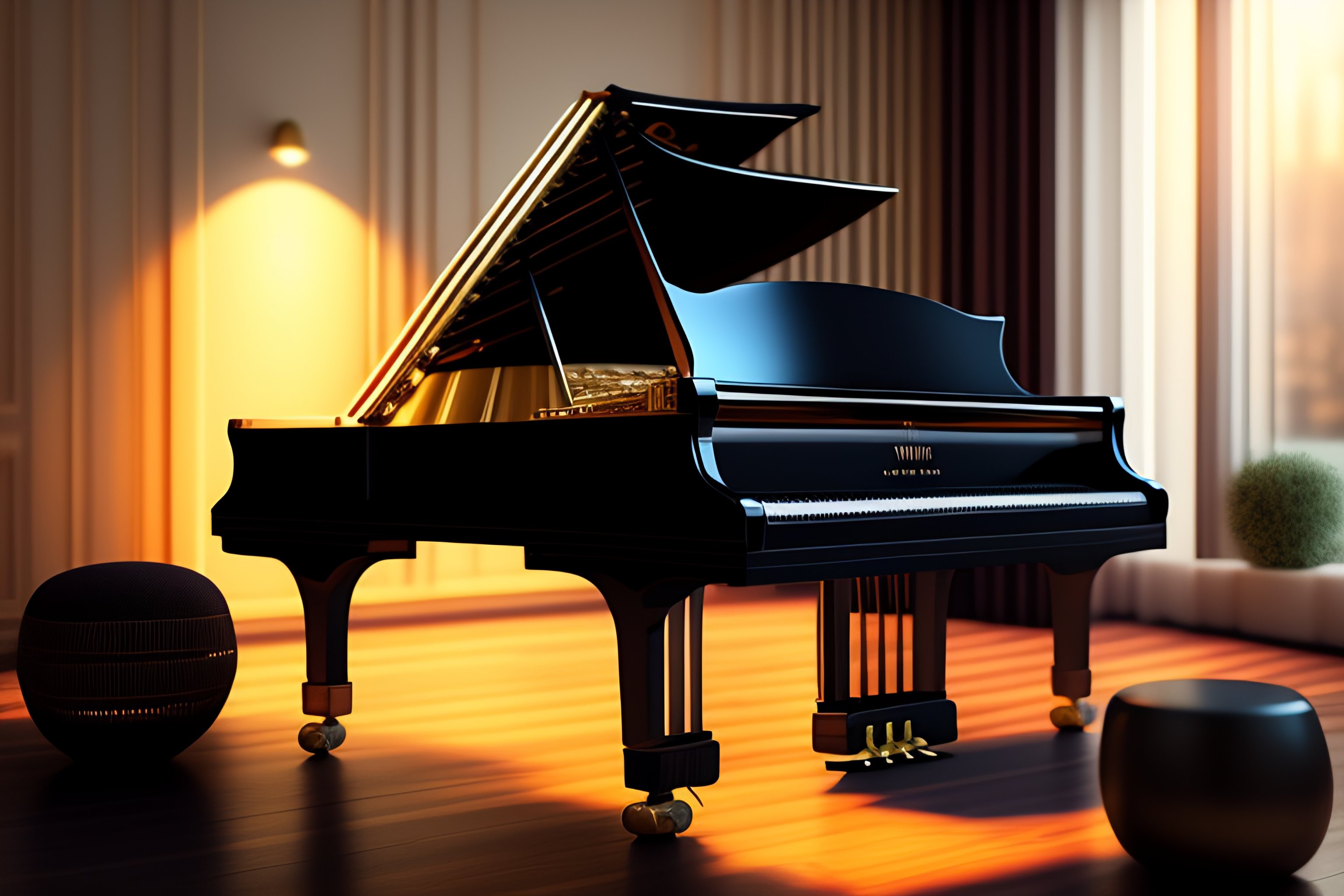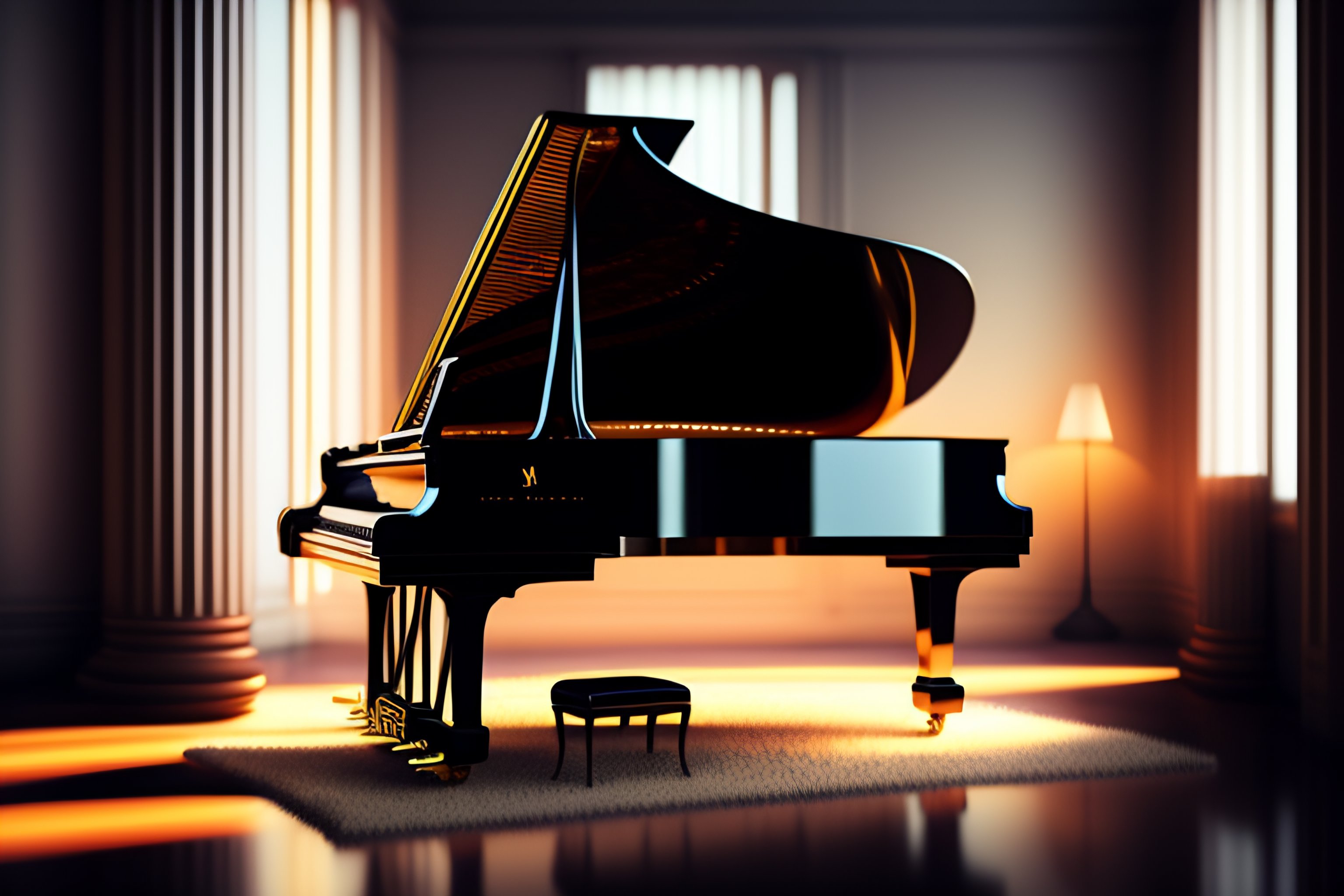 The most beautiful elegant crafty grand piano ever, amazing light, cozy relaxing feeling, relaxing wallpaper, wallpaper for relaxing music, cyberpunk style, brave new world style, elf craft