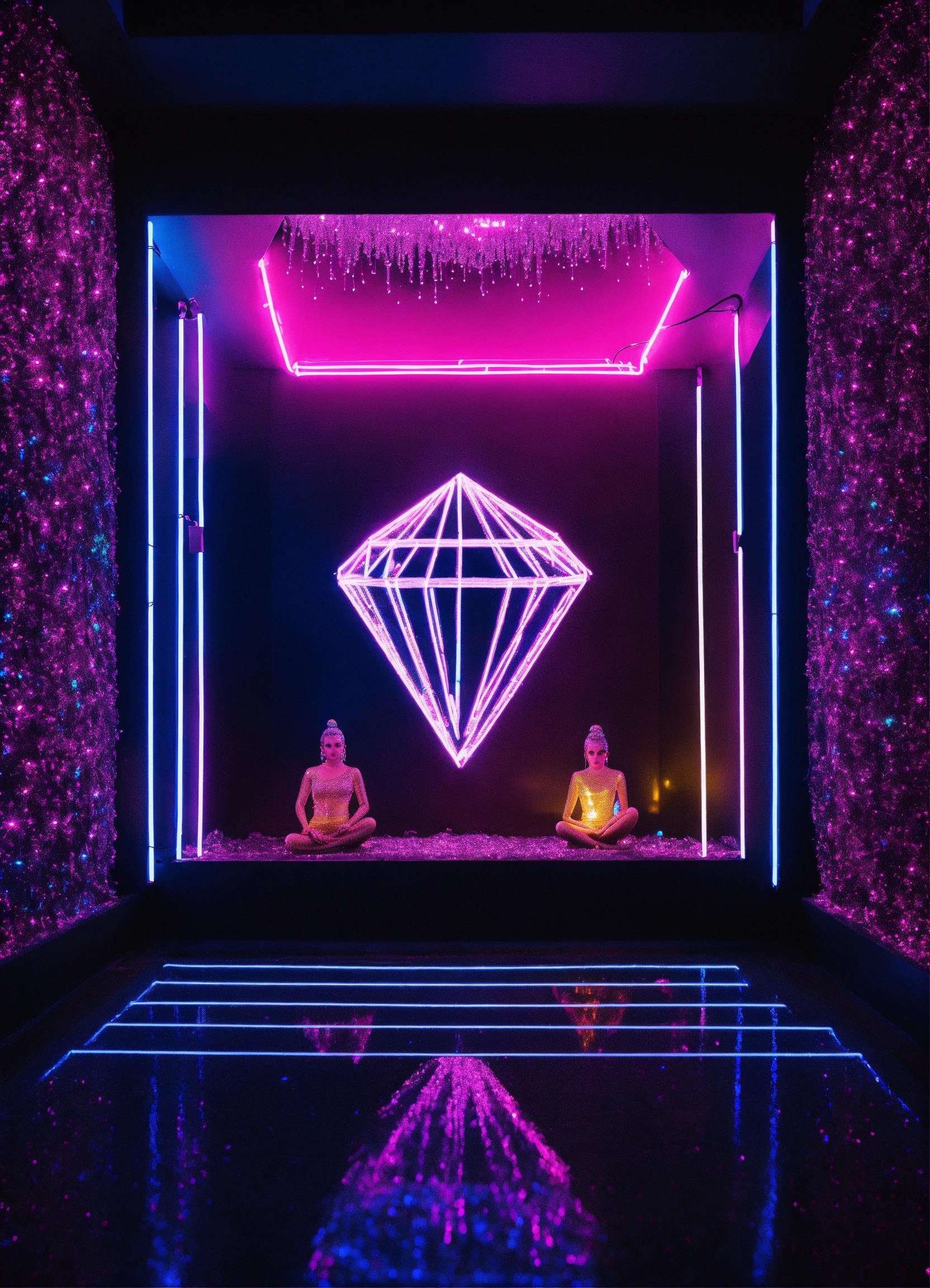 Enlightenment made of diamonds and glitter black neon light