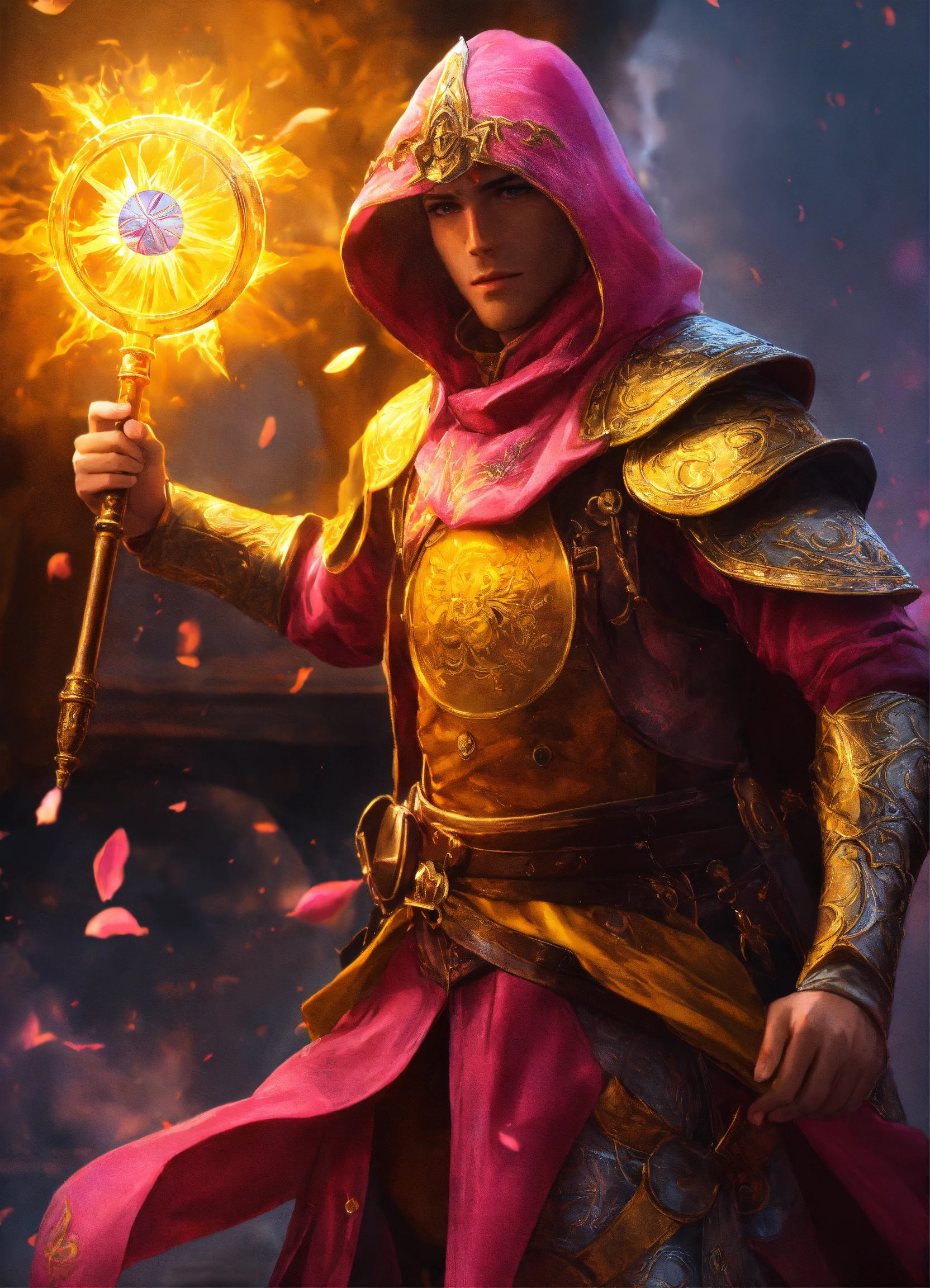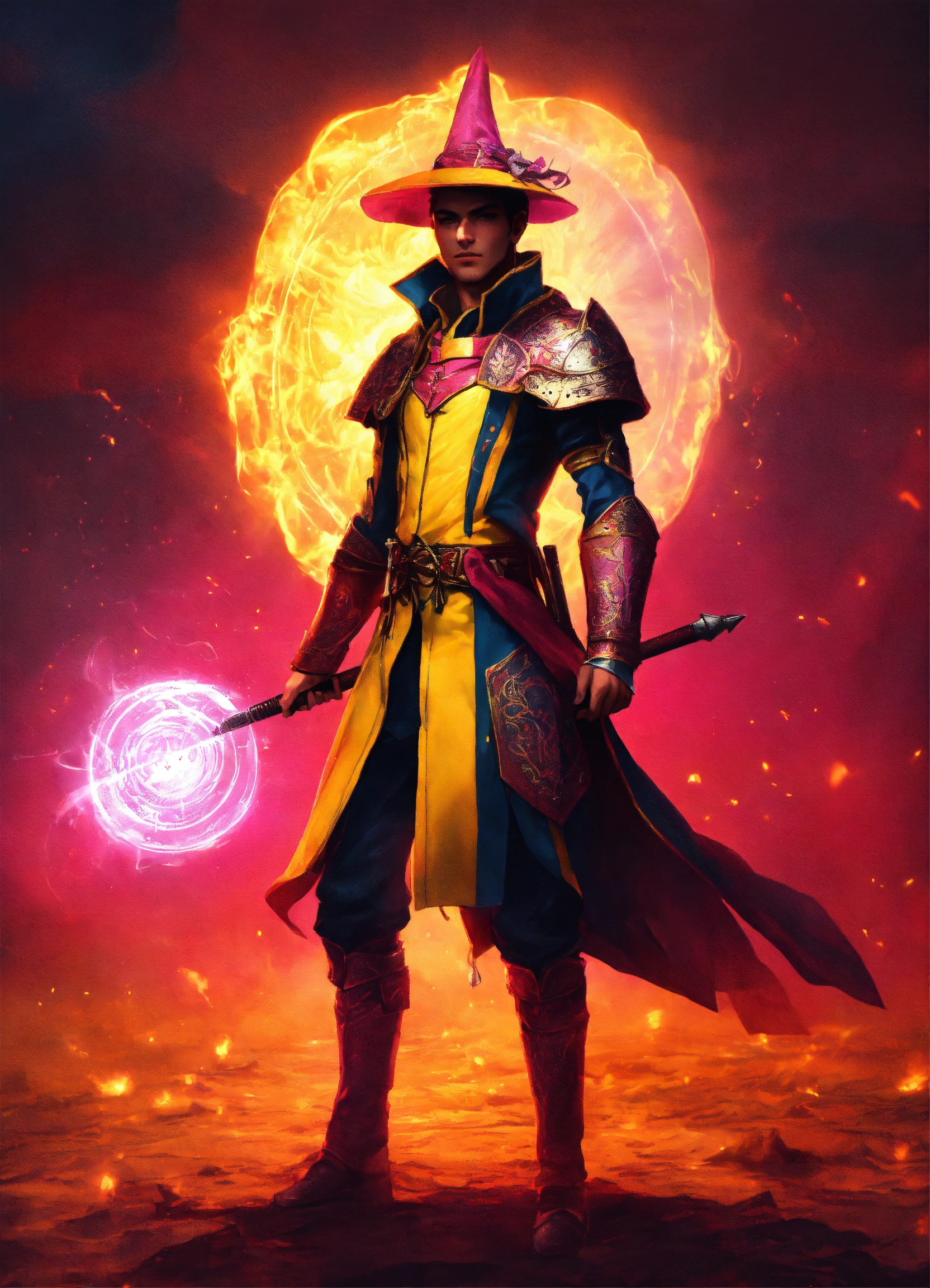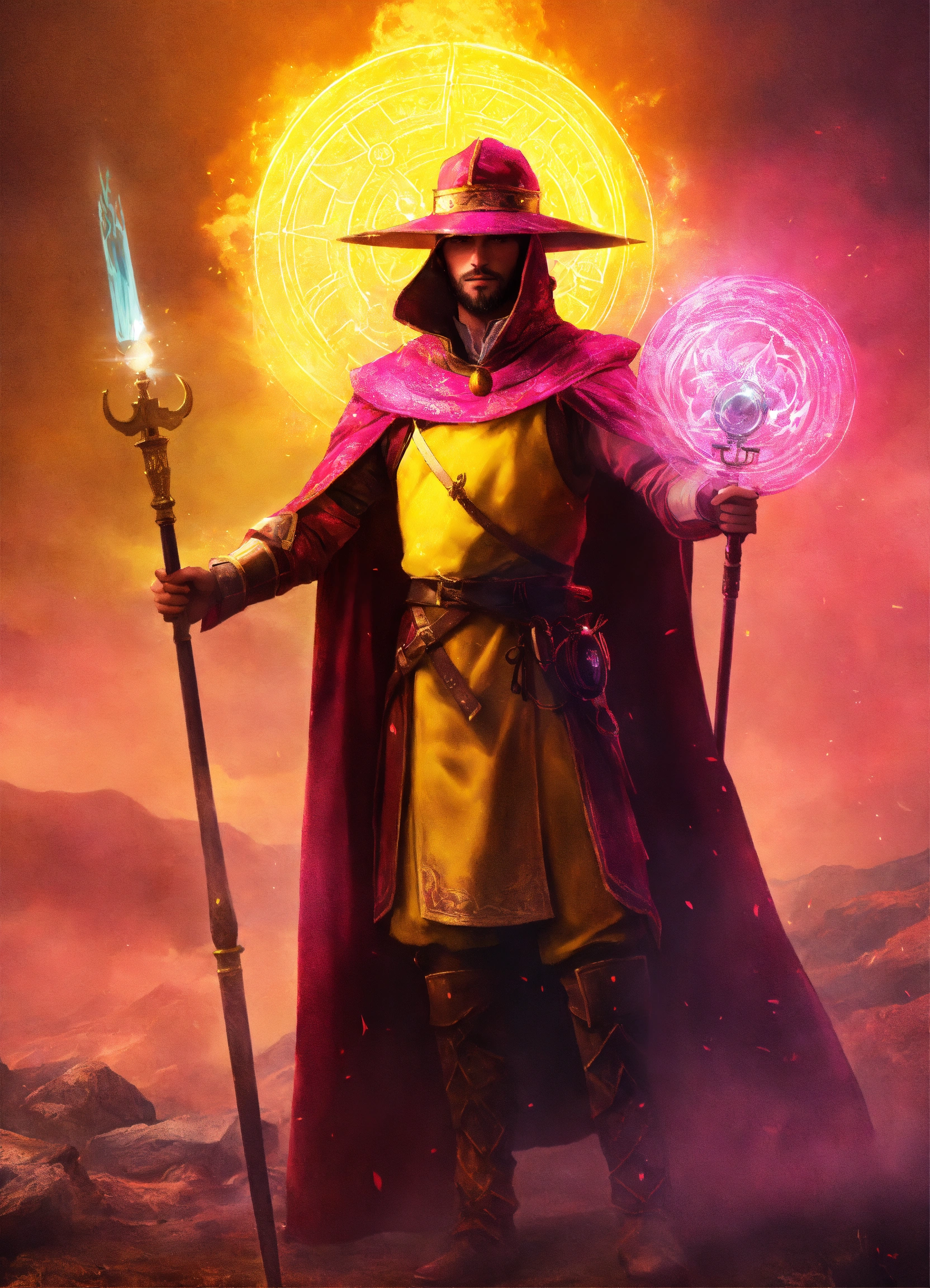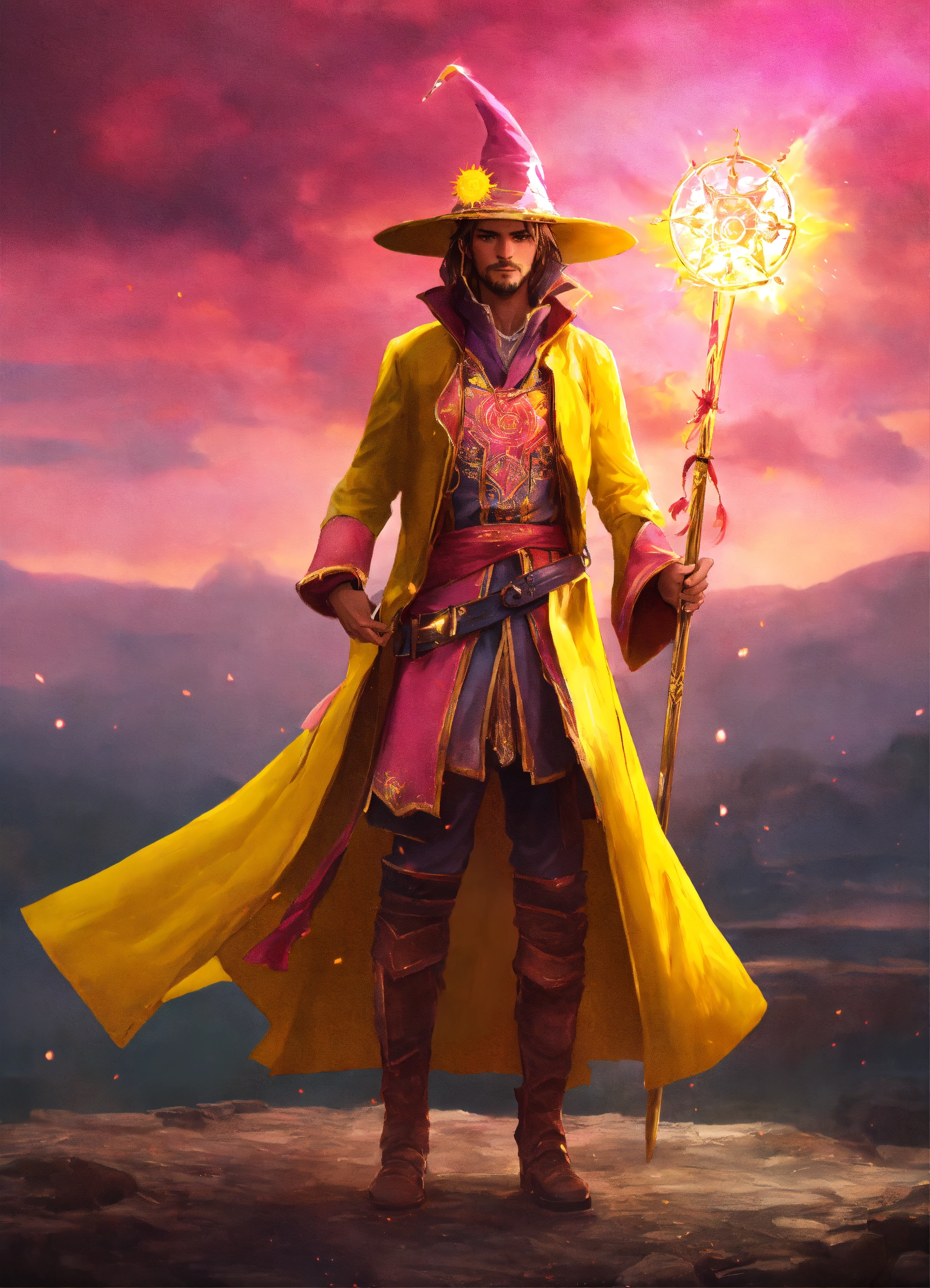 A sun magician in yellow and pink