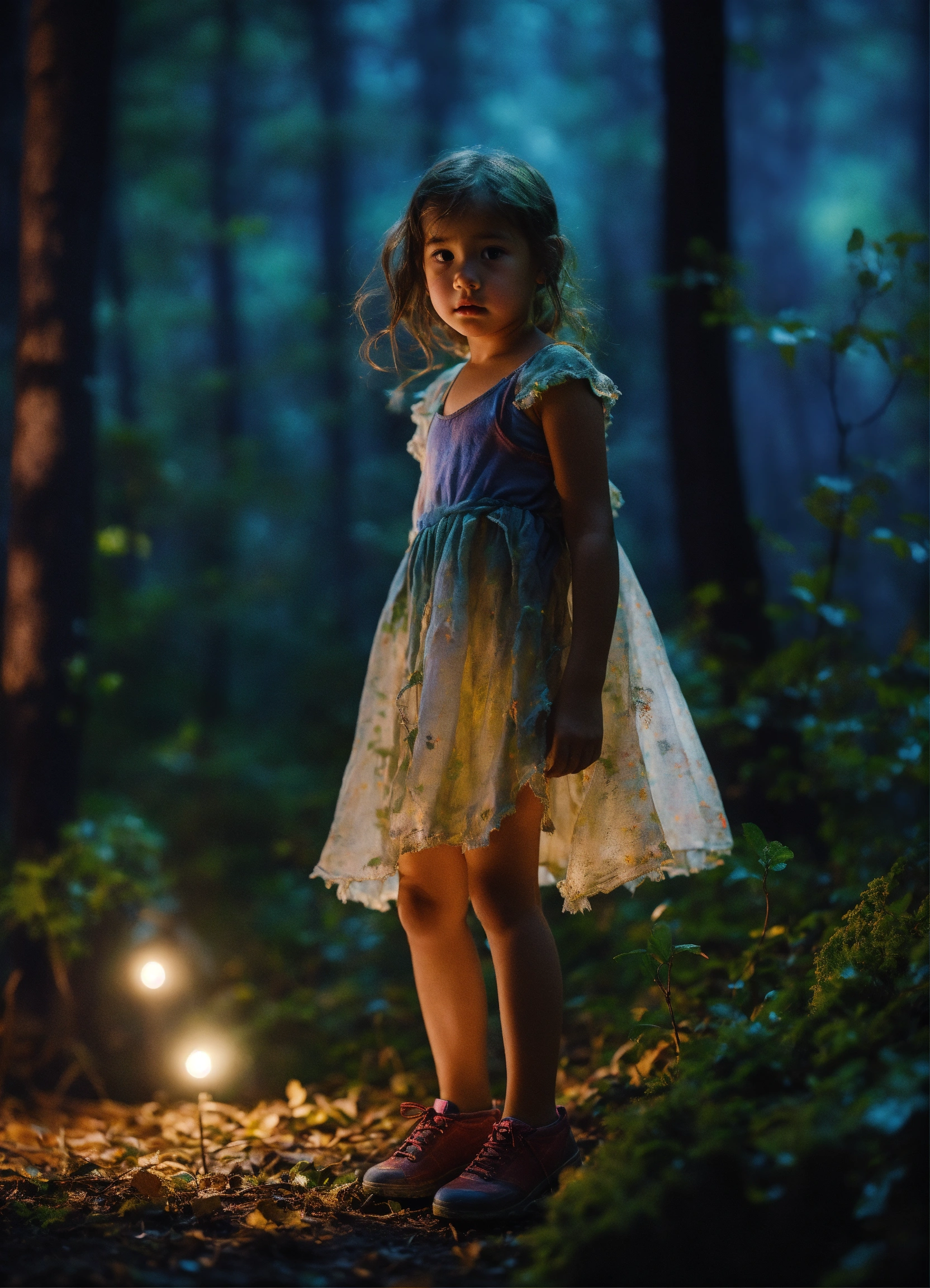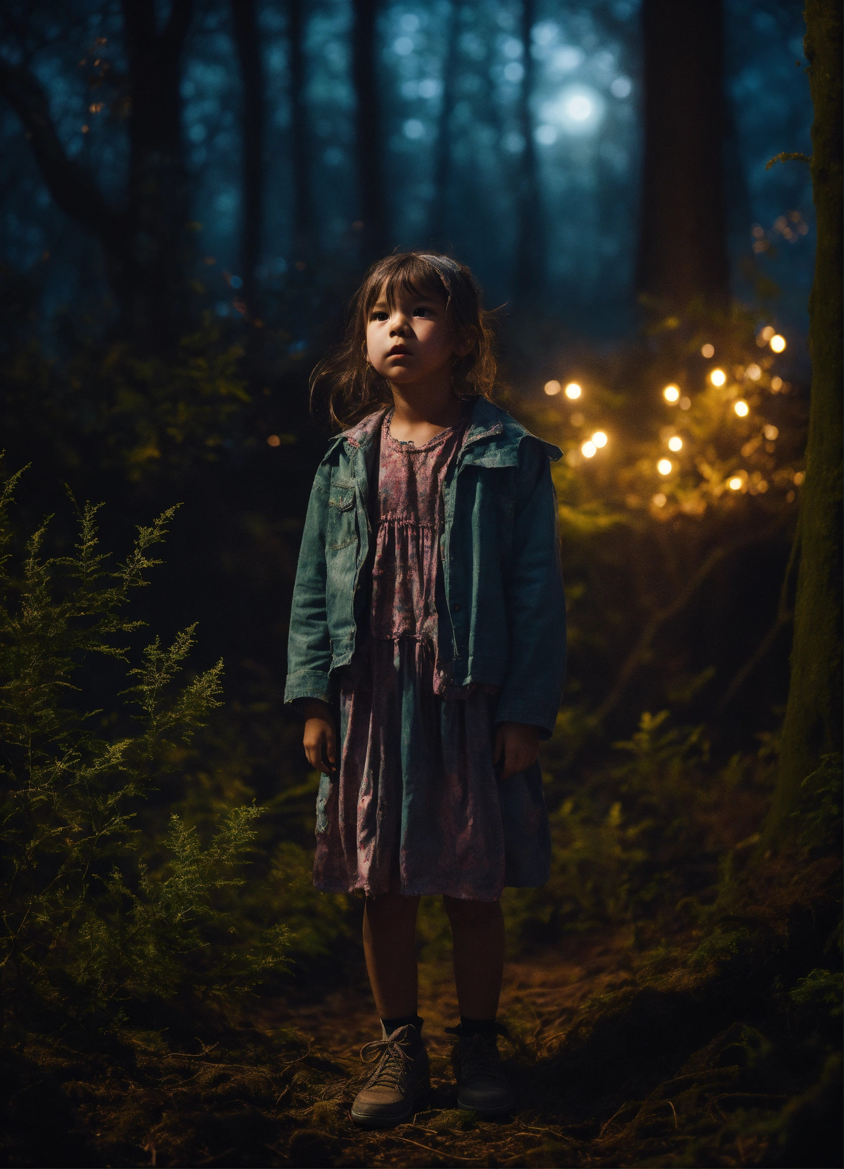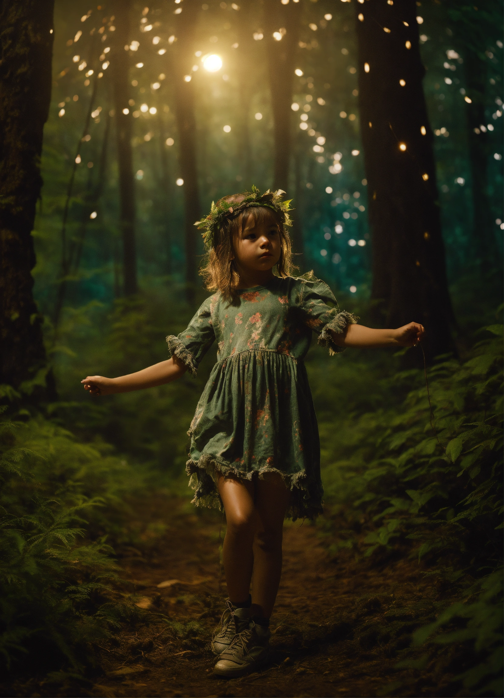 dancing in a forest at night