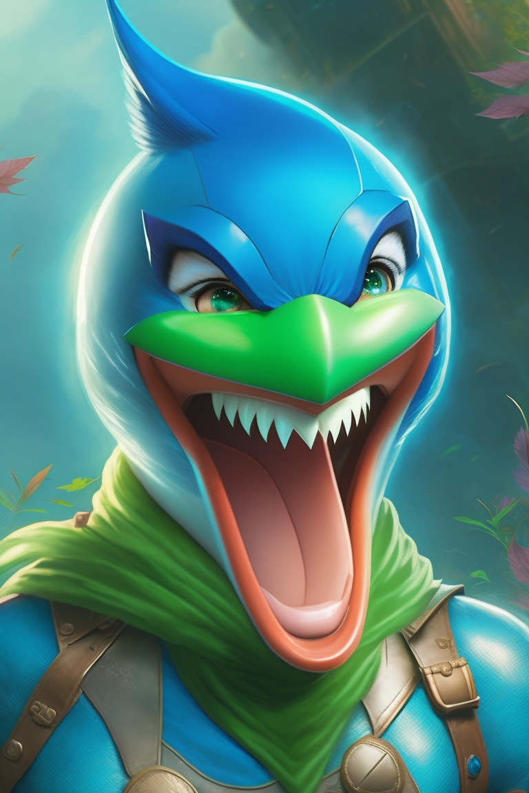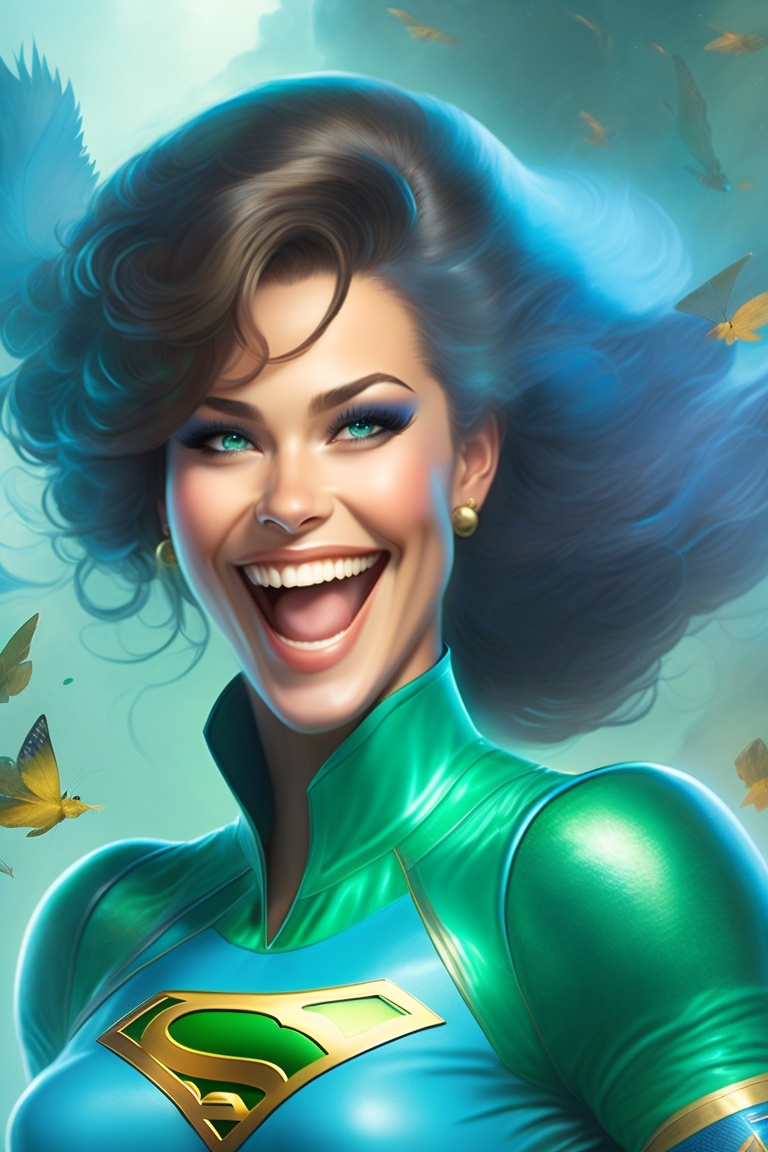 bluebird from dc comics laughing hysterically surrounded by a green mist.