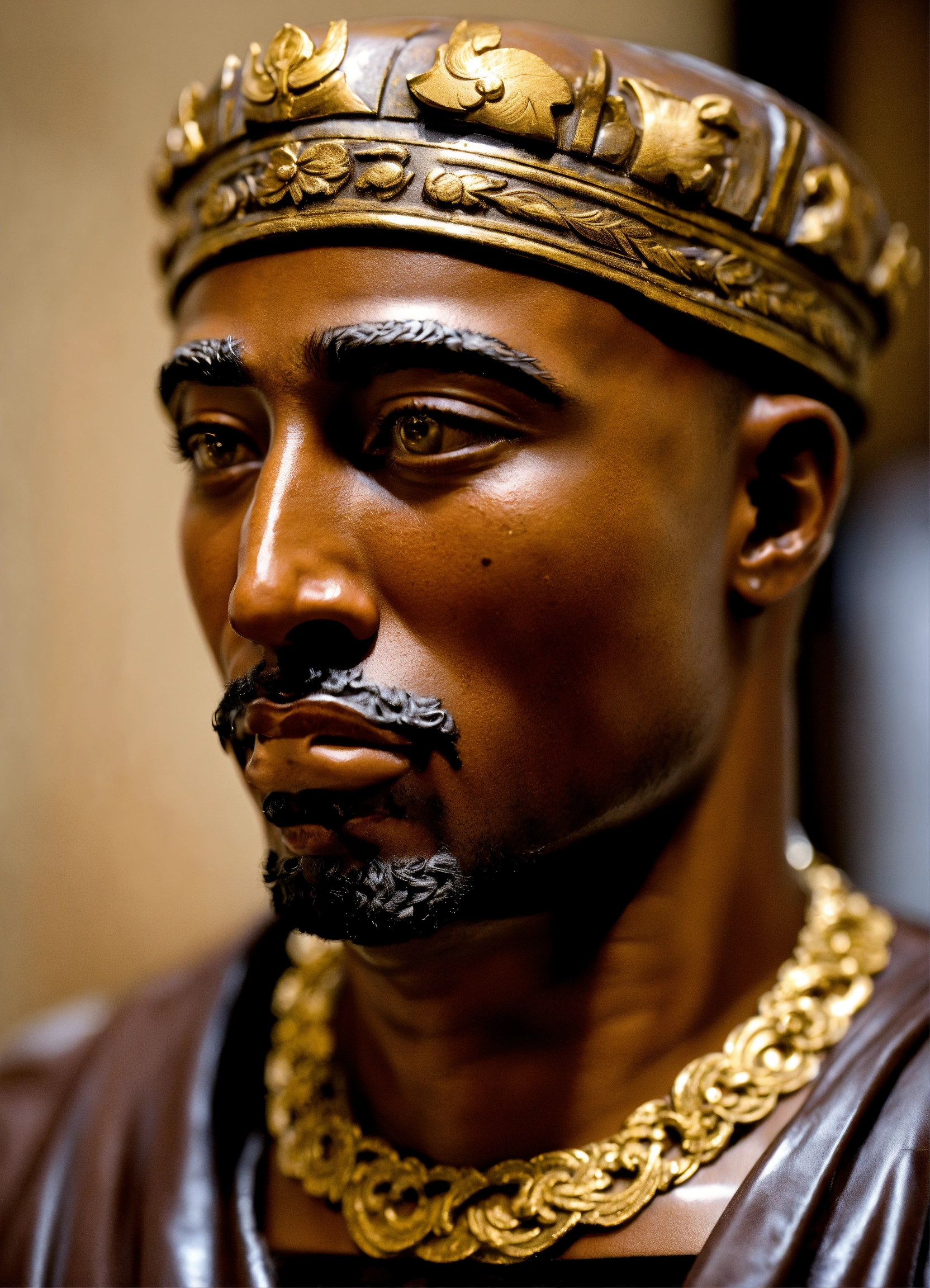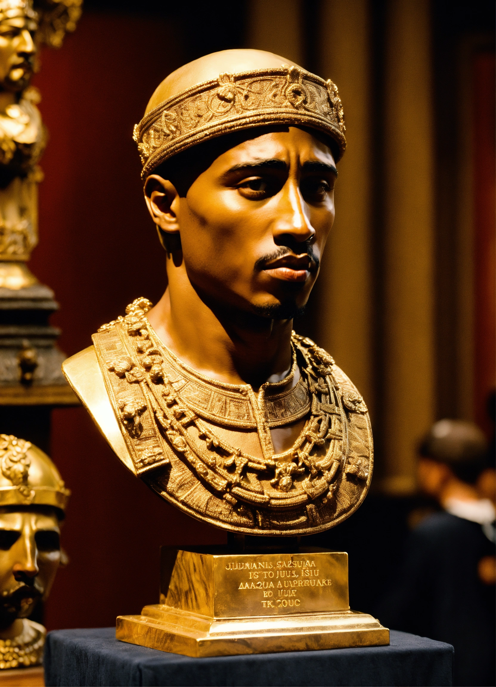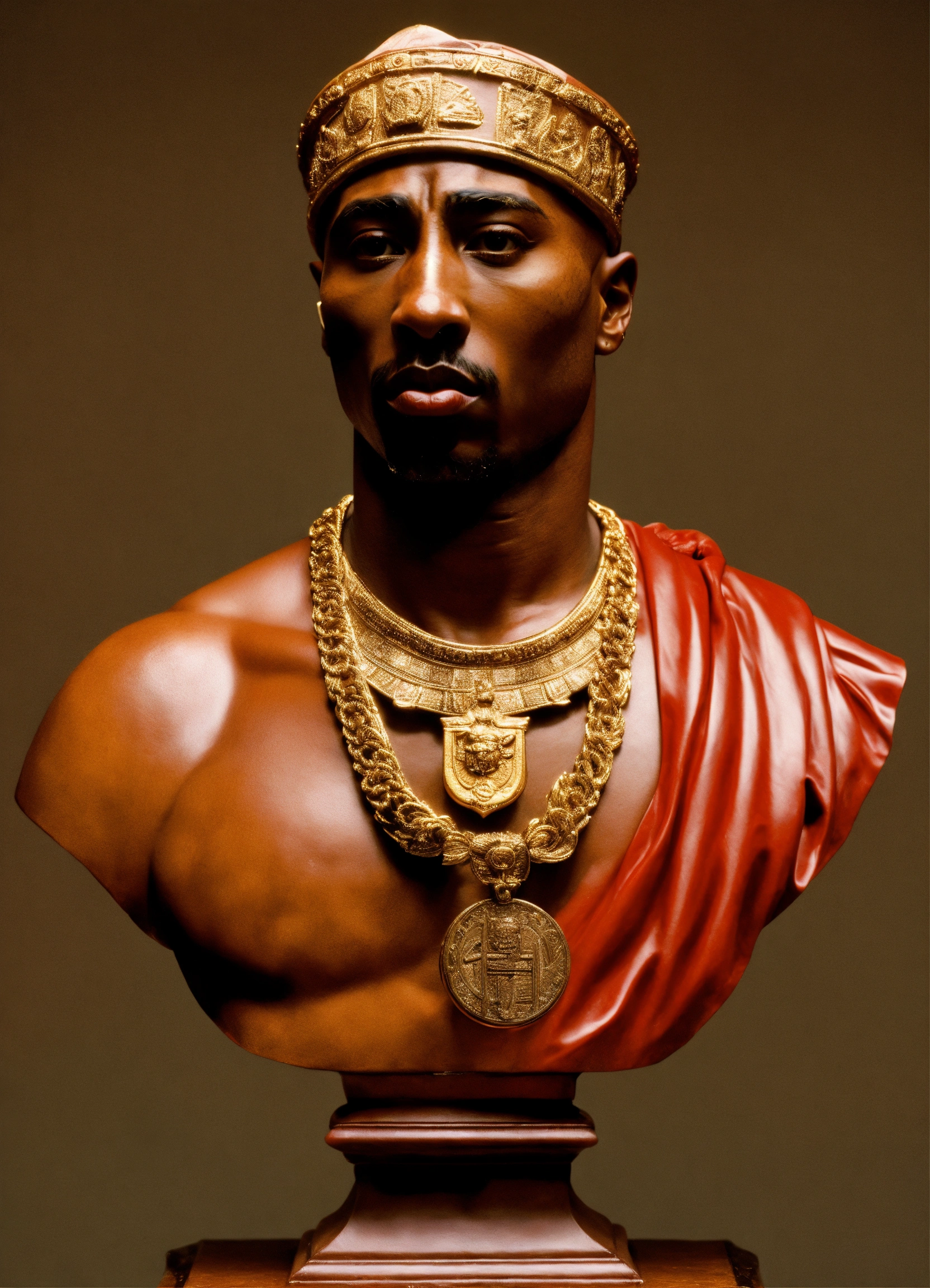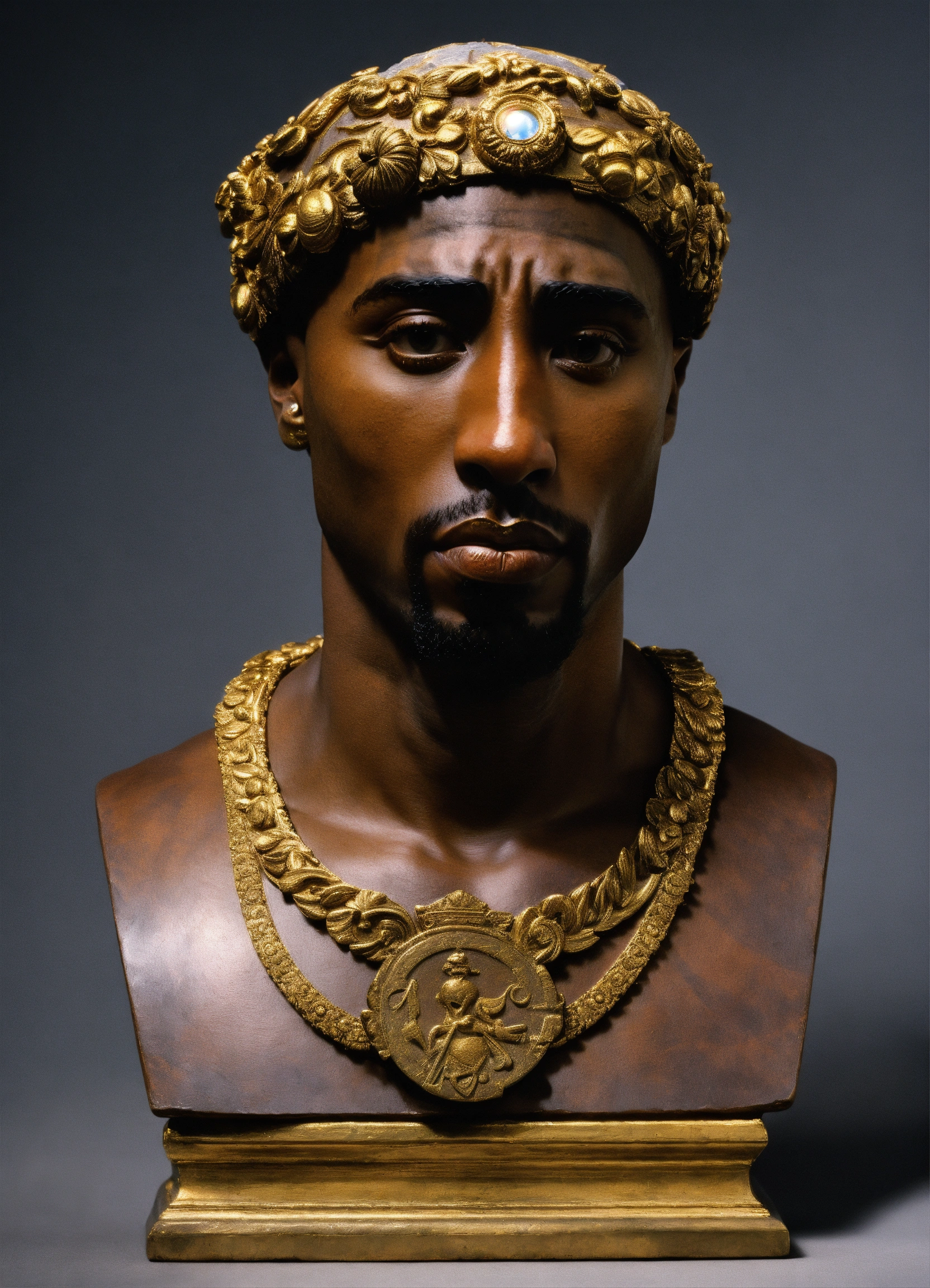 A renaissance bust of tupac shakur as roman emperor julius caesar