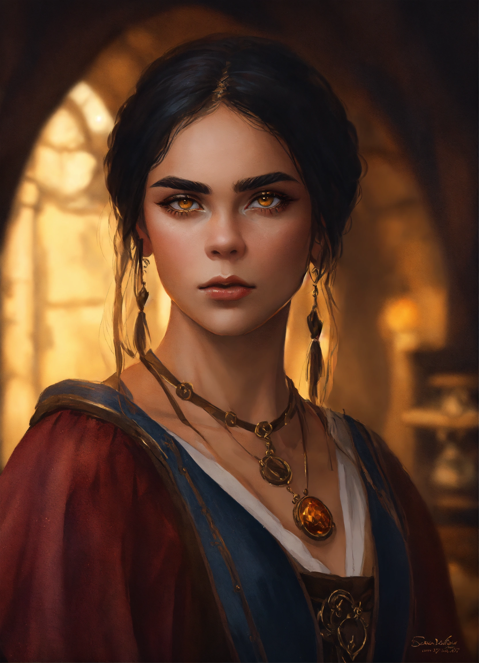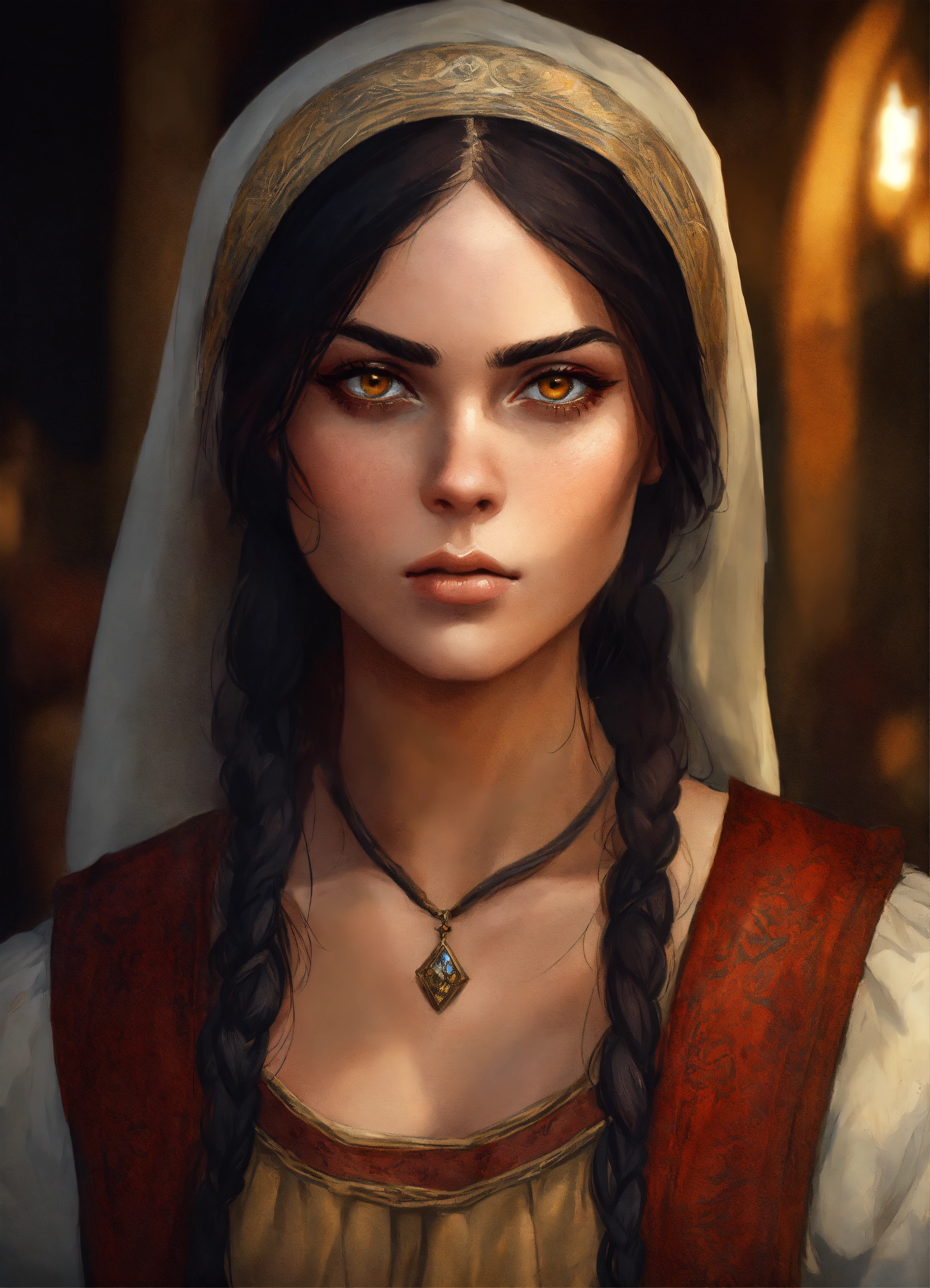 Portrait of cara delevigne, medieval peasant woman, medieval barmaid, amber eyes, black hair, highly detailed, digital painting, artstation, concept art, smooth, soft focus, illustration.