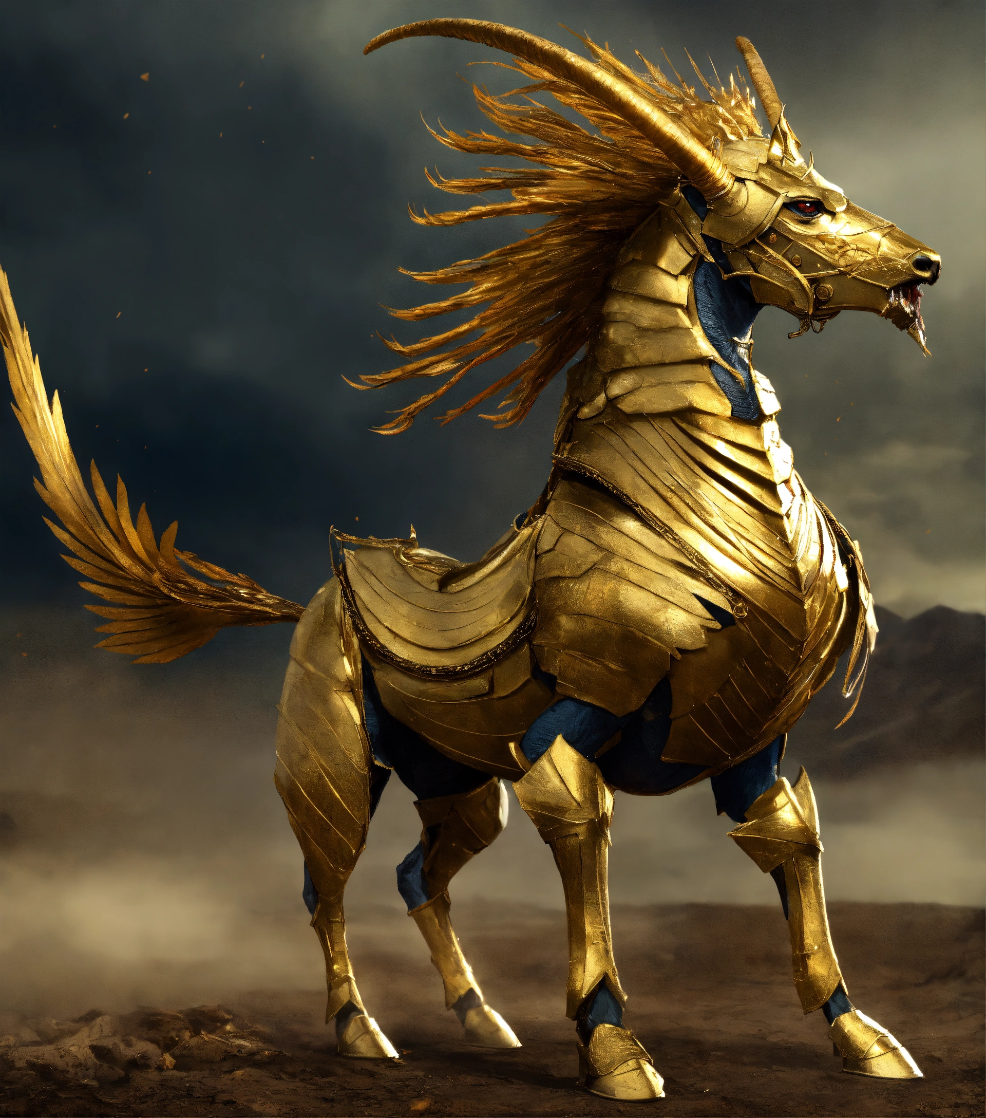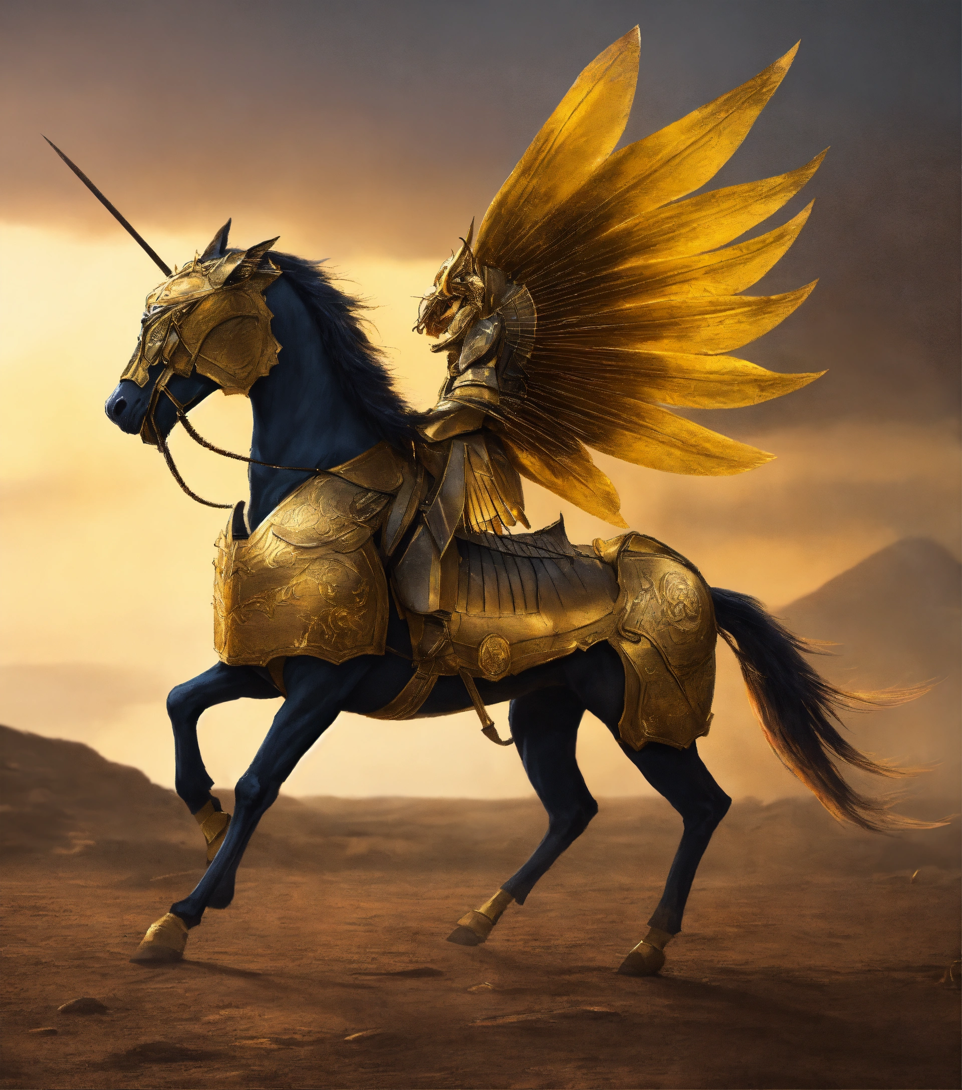 Draw a locust in the shape of a horse prepared for battle. on its head is a crown of gold, and its face resembles a human face. it has hair like a woman’s hair, and teeth like a lion’s teeth. it is wearing an iron breastplate and has wings that are capable of sounding like the thunder of many horses and chariots rushing into battle. its tail has a stinger like a scorpion’s tail.