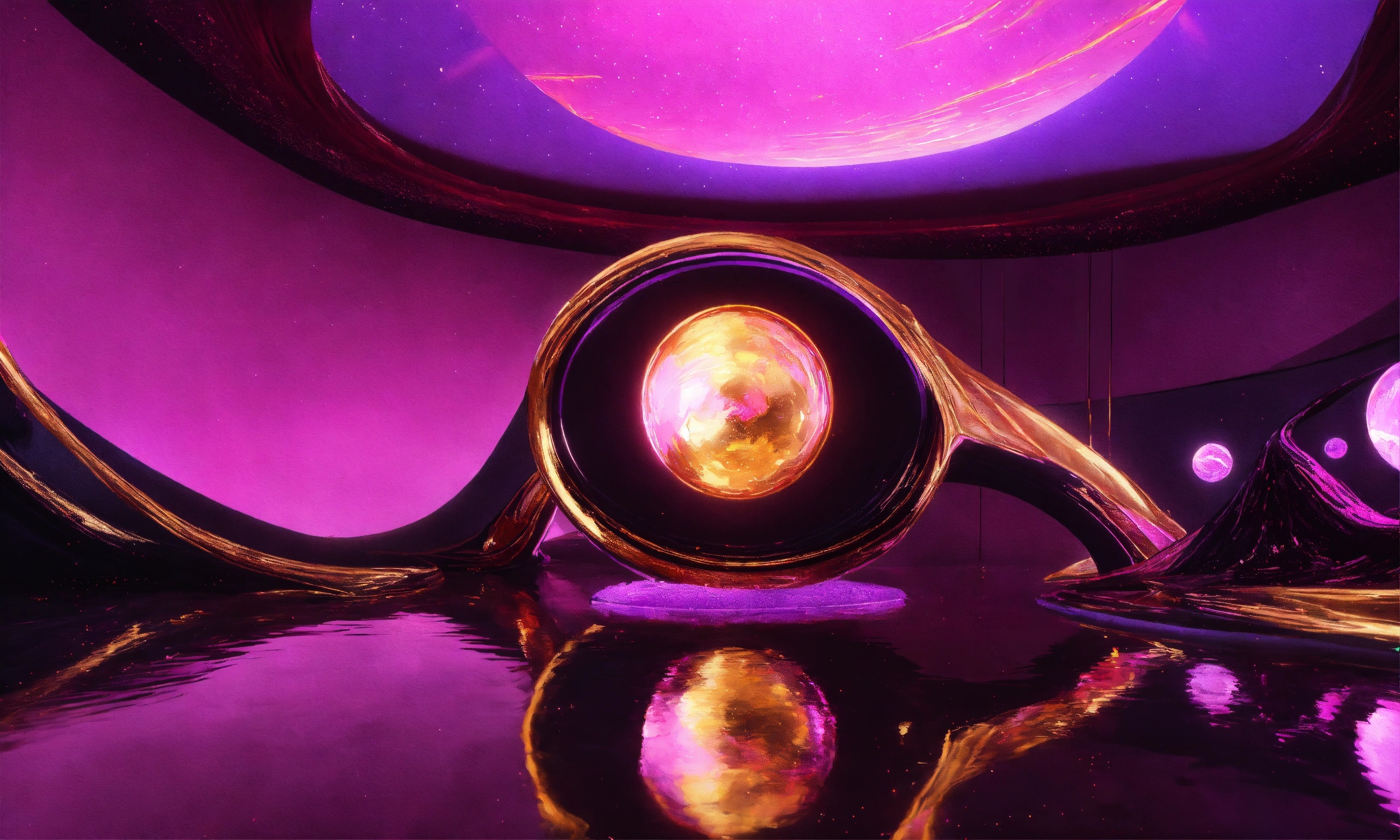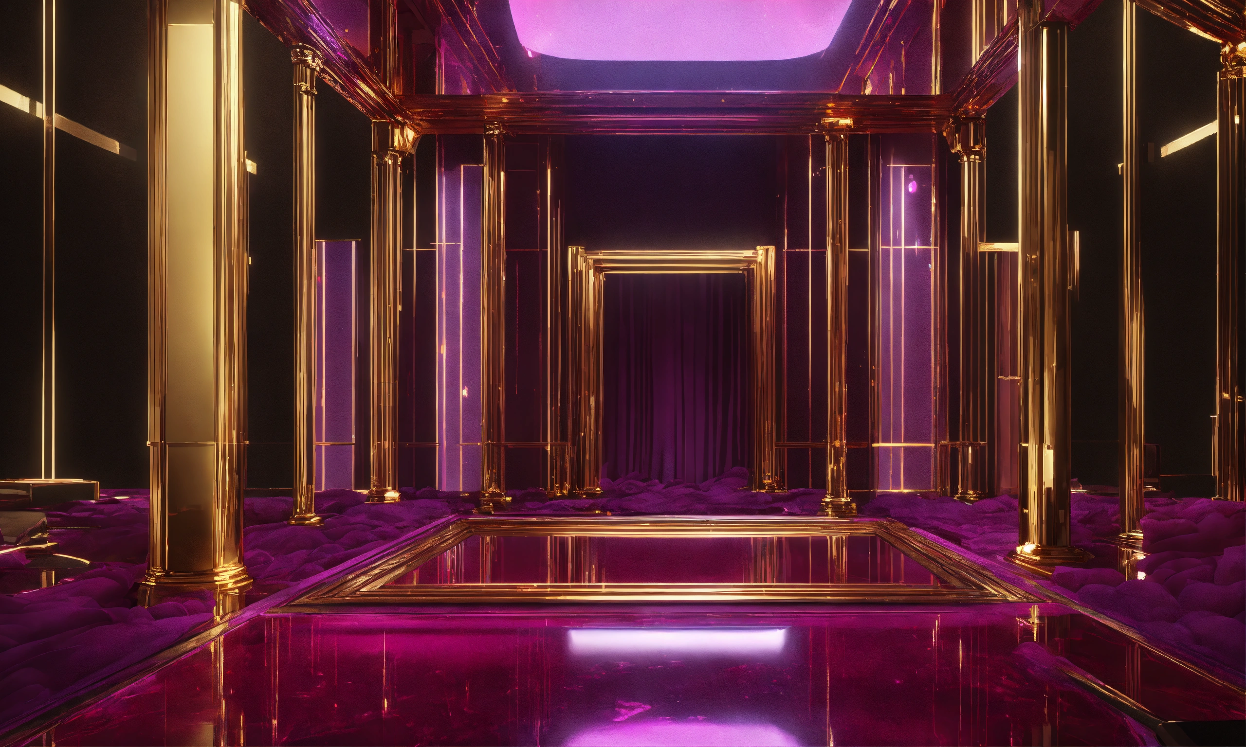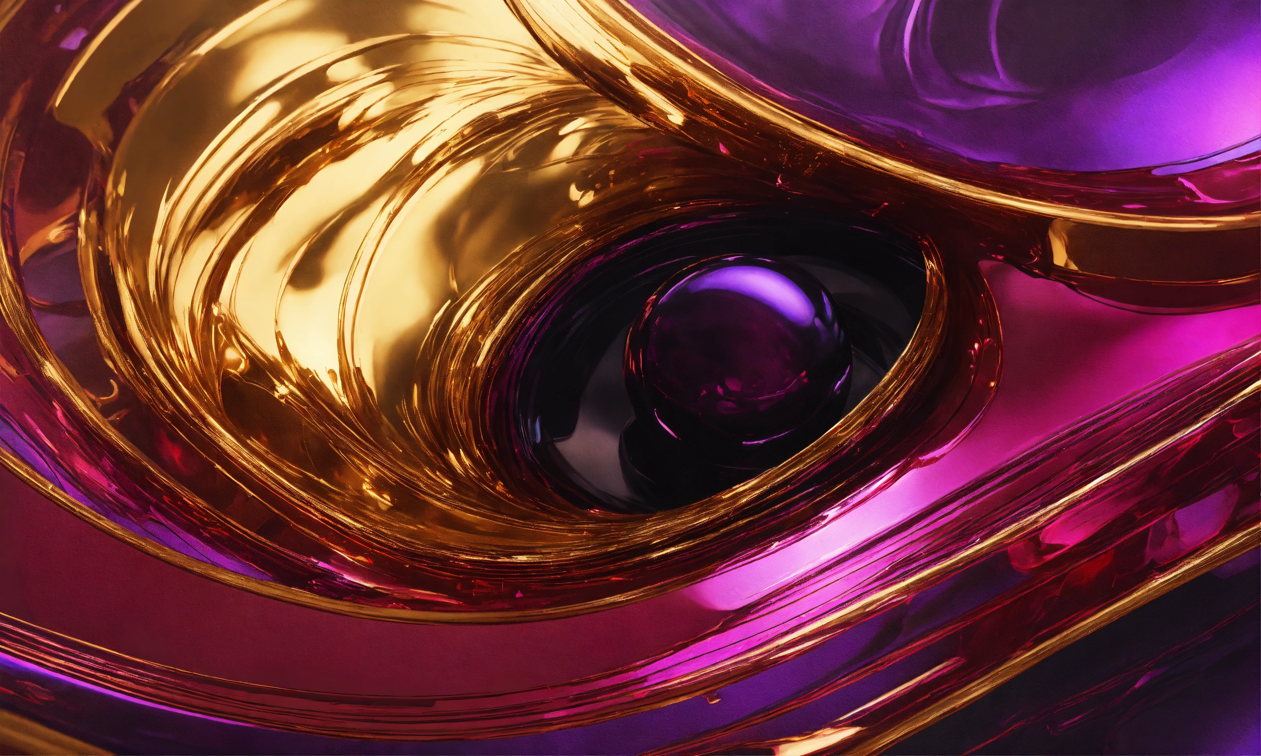 A painting with iridescent purple and black, in the style of dark scarlet and light gold, liquid minimalist-core, use of precious materials, meticulous design, dark sanguine and pink, velvet - red and gold, unreal engine render, 8k, zbrush maximalism, 4d hyperspace