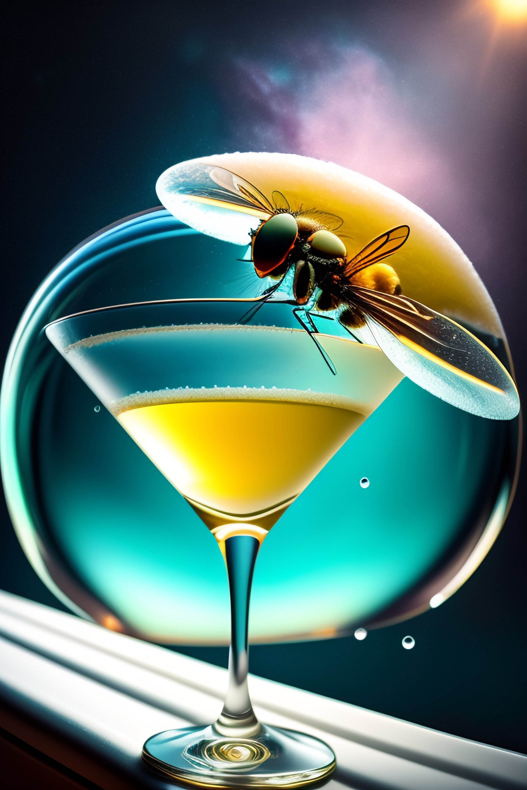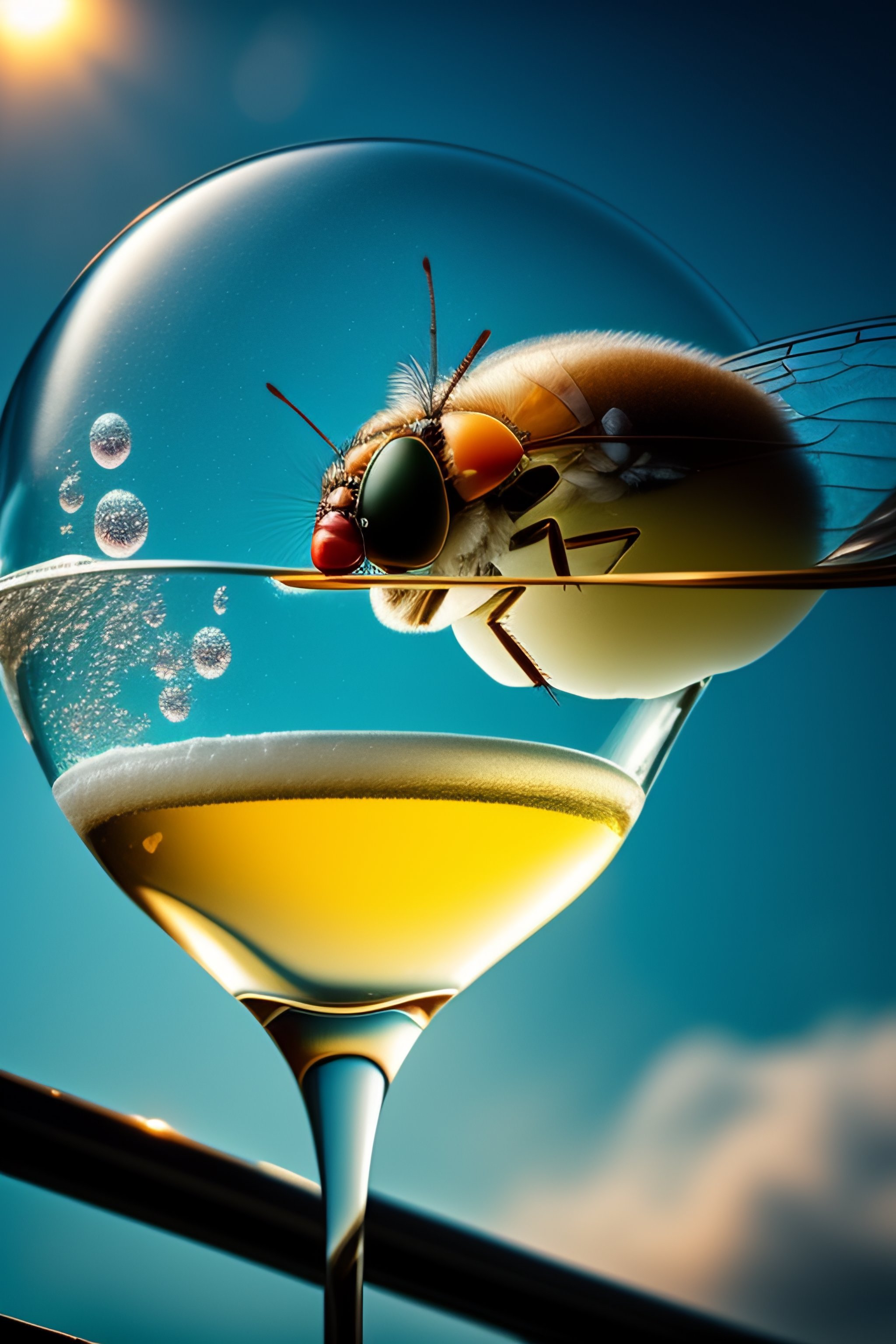 A fly in the bubble bath drinking martini and enjoying life