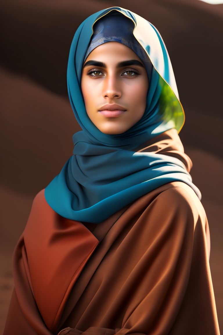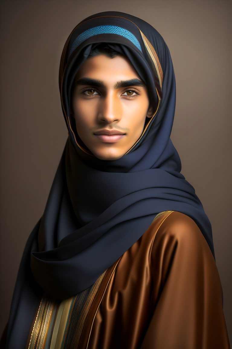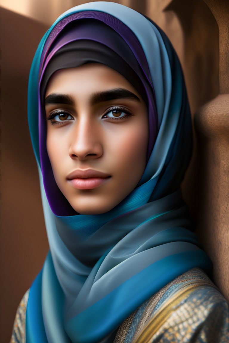 Adult androgynous arab boy with hijab