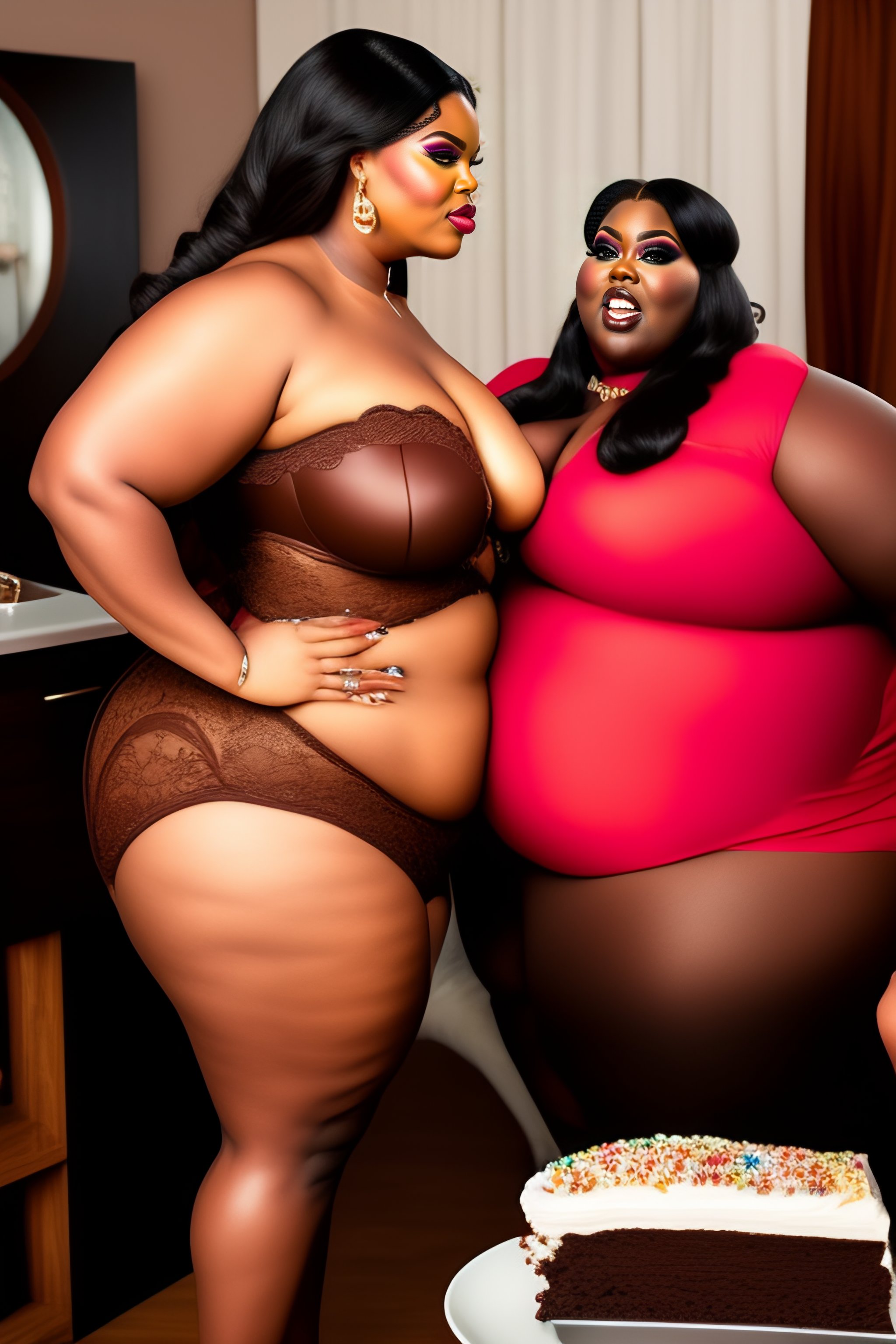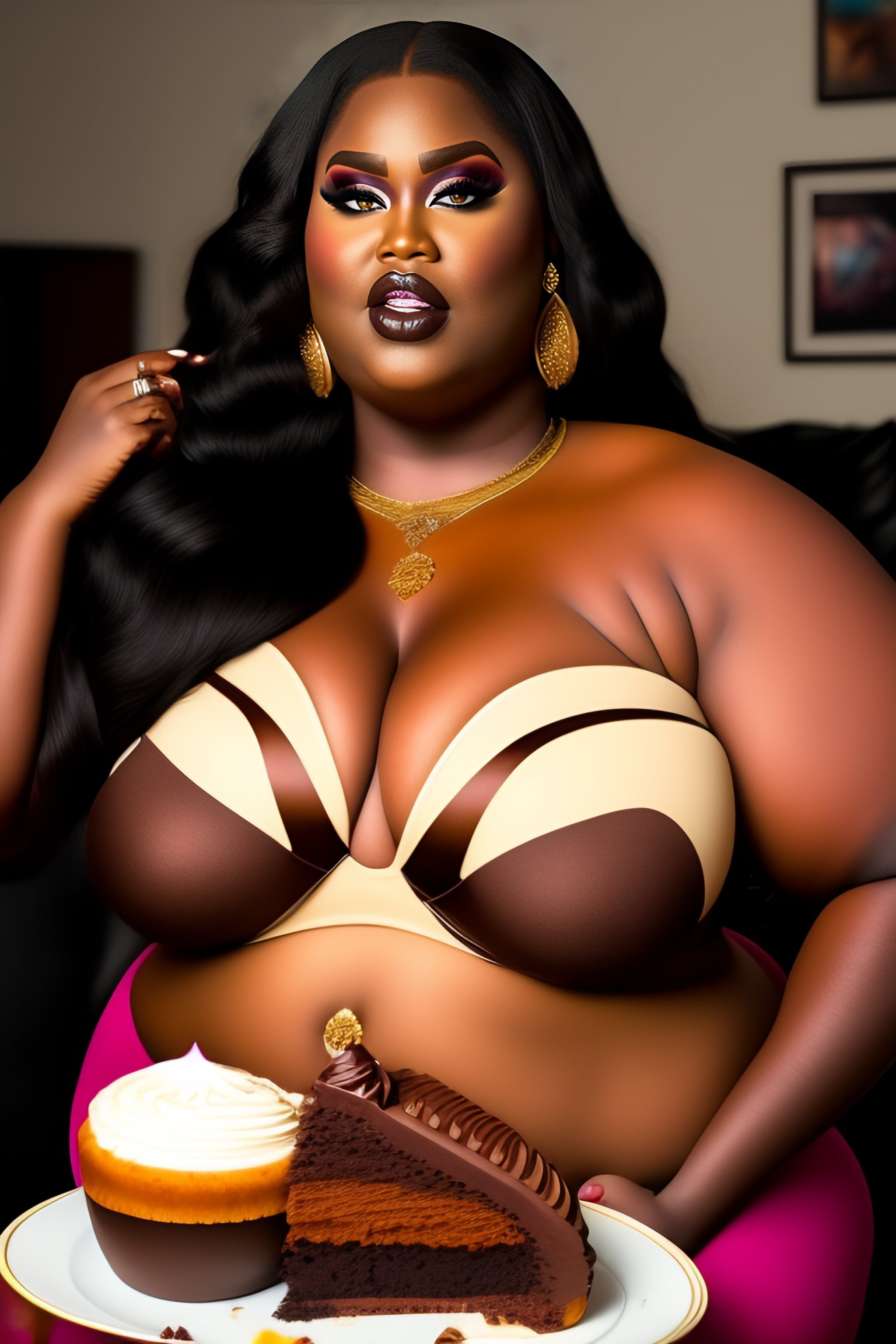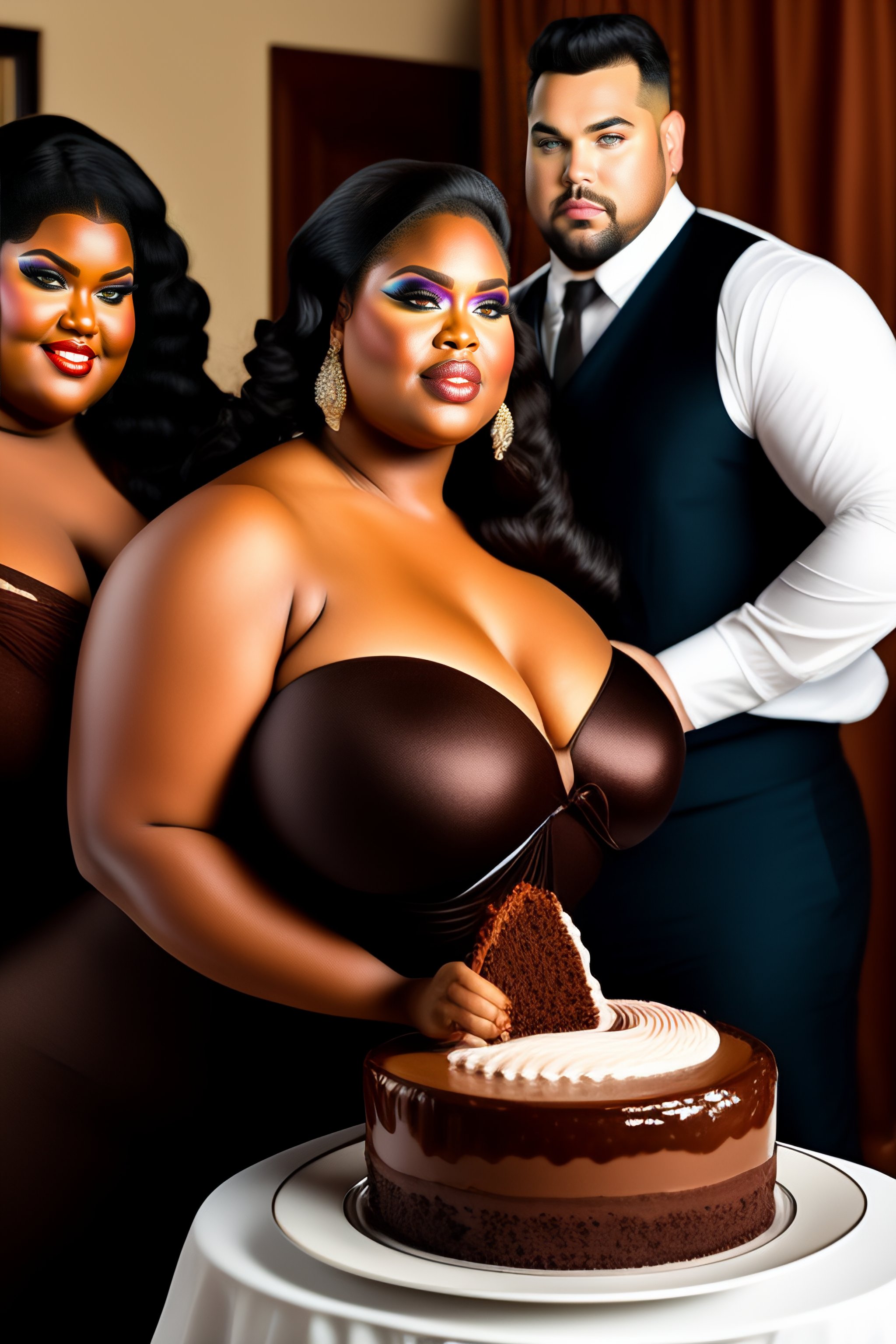 Ssbbw queen beautiful model perfect face being fed chocolate cake by servants
