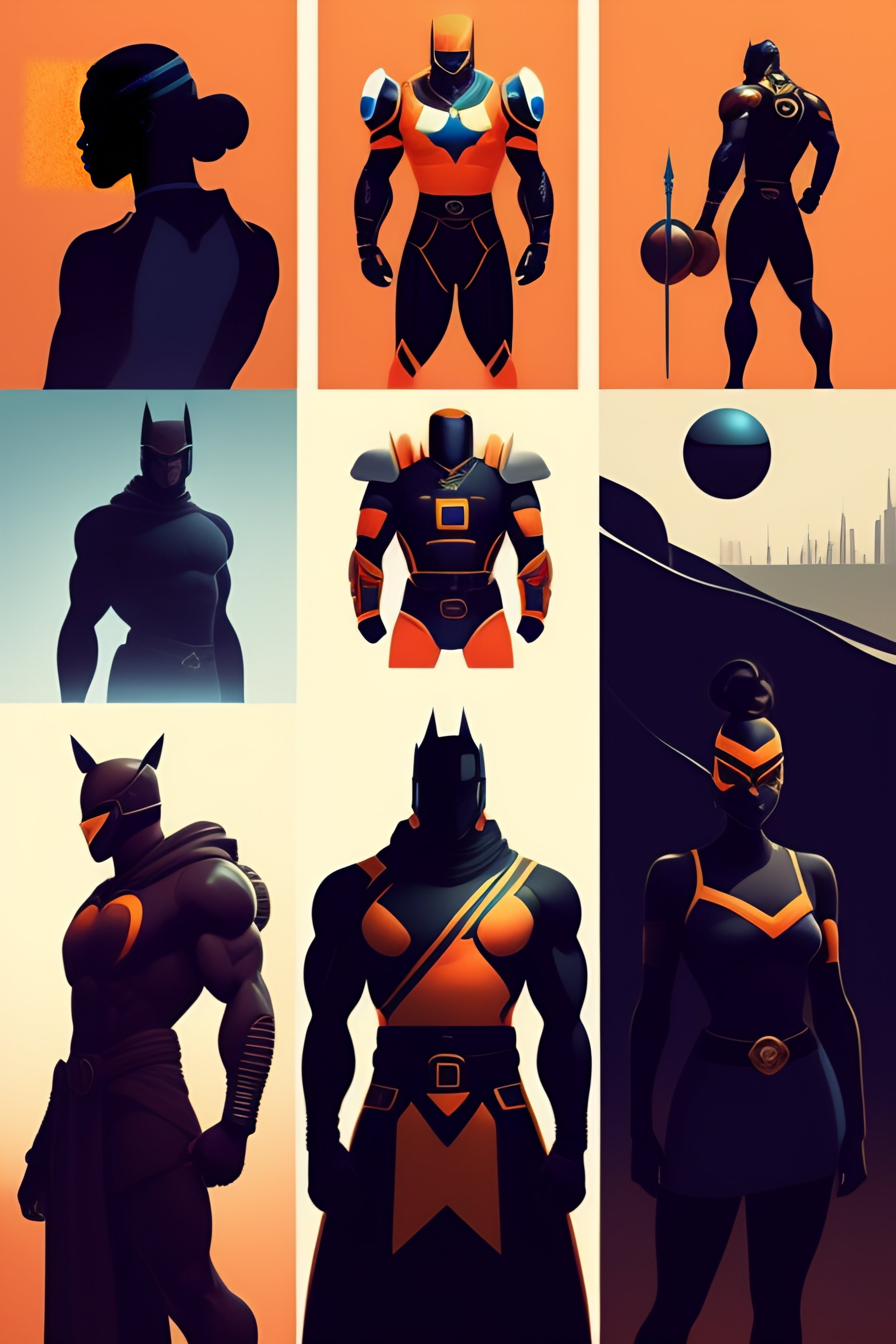 Futuristic character designs, strong silhouette, heroes from another age, hard edges, complex and vibrant, highly detailed, minimal and powerful, concept art, sport stars, athletic and dapper