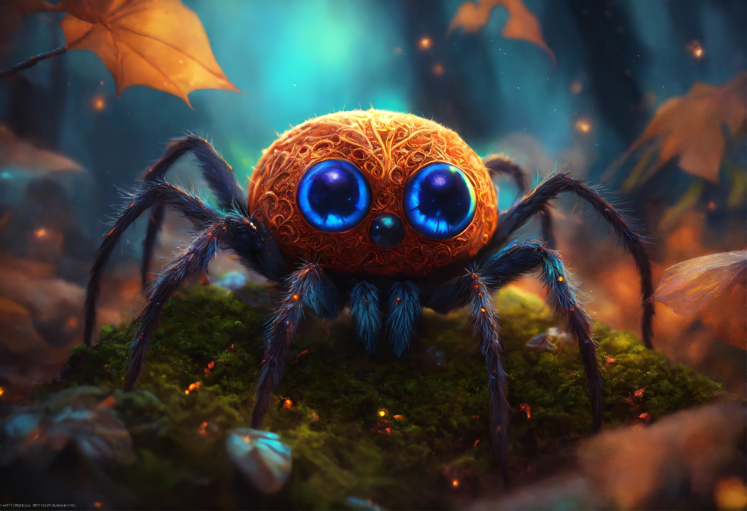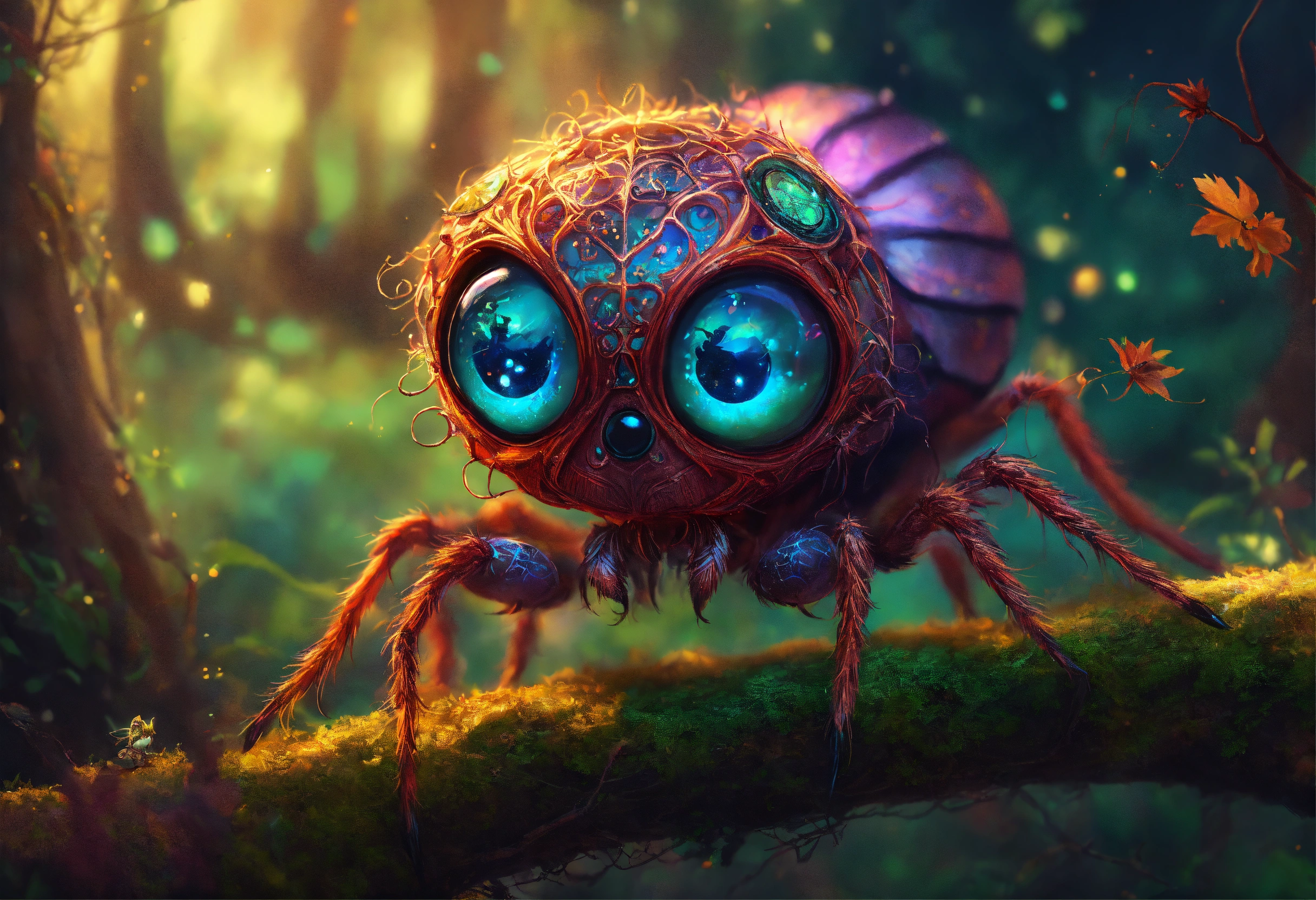 Witch, super cute spider with big bright eyes, digital painting, dreamlike, intricate details, sharp focus, trending on artstation, magical fairies in a dreamlike forest