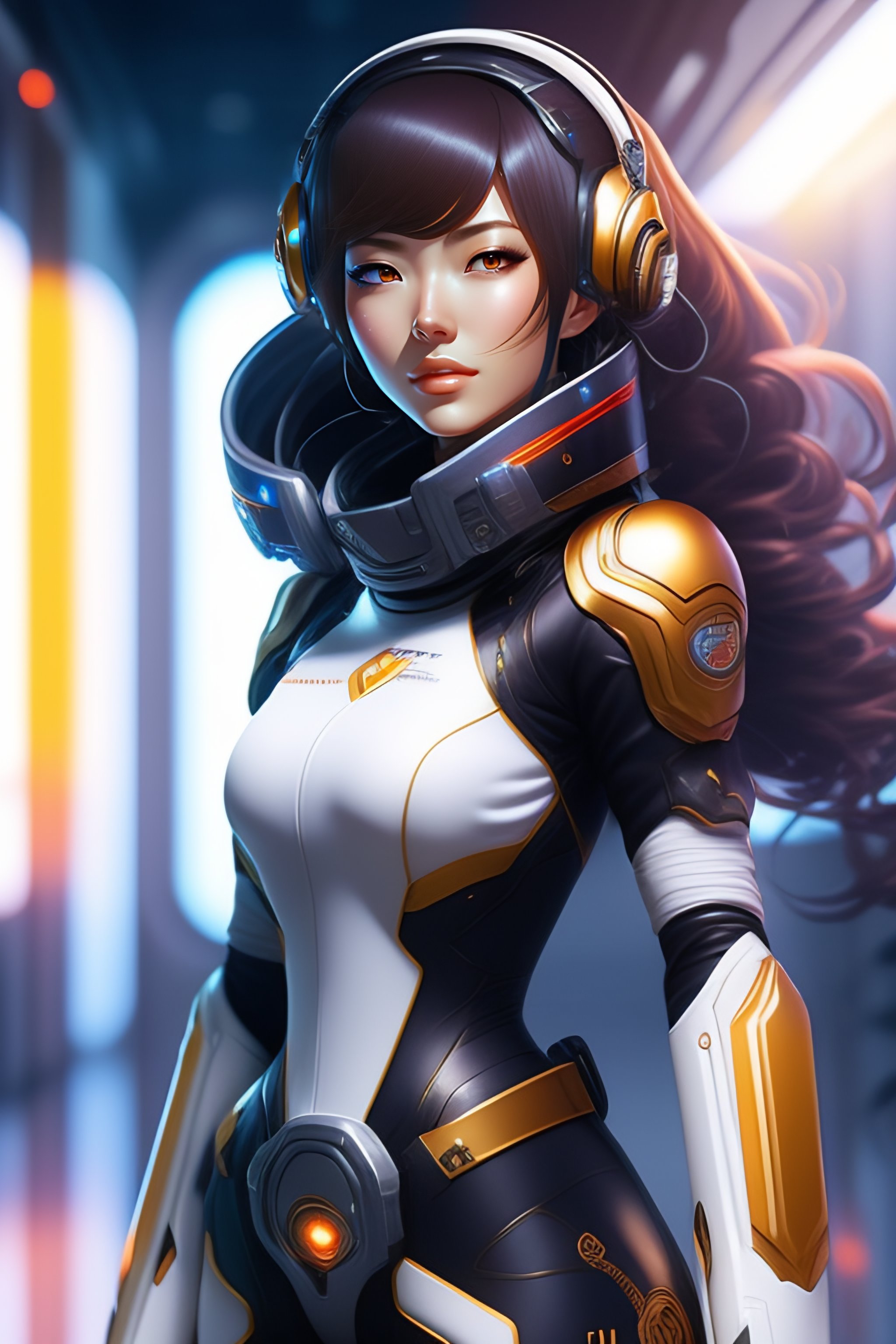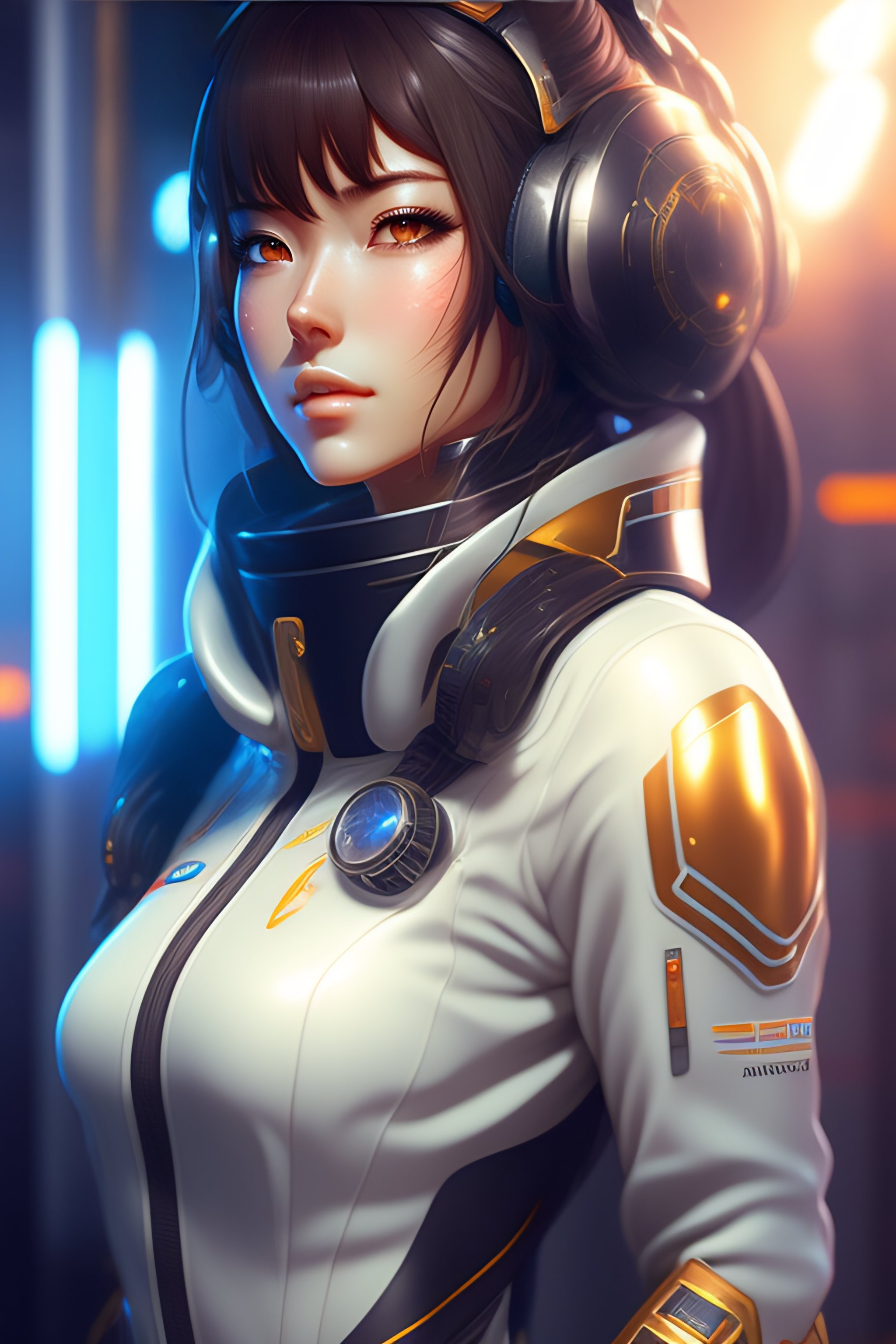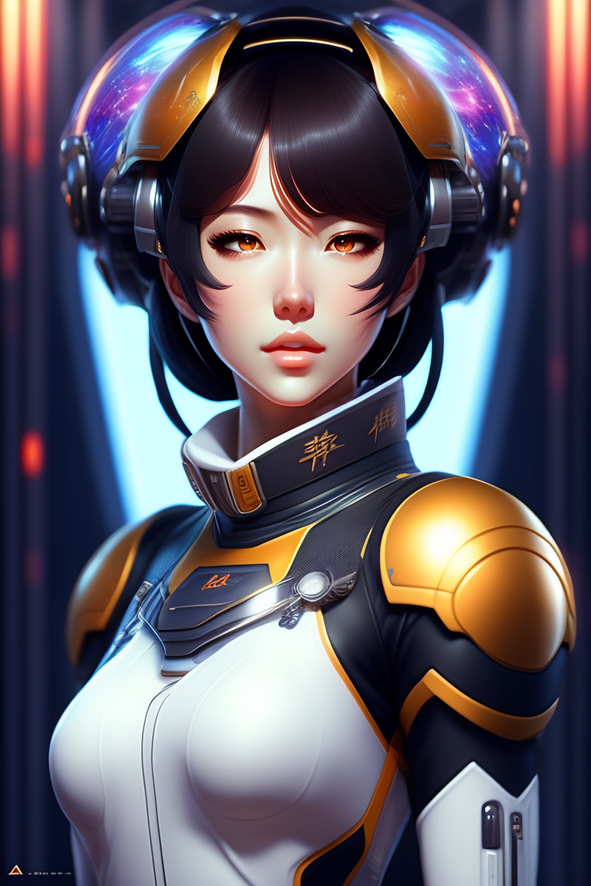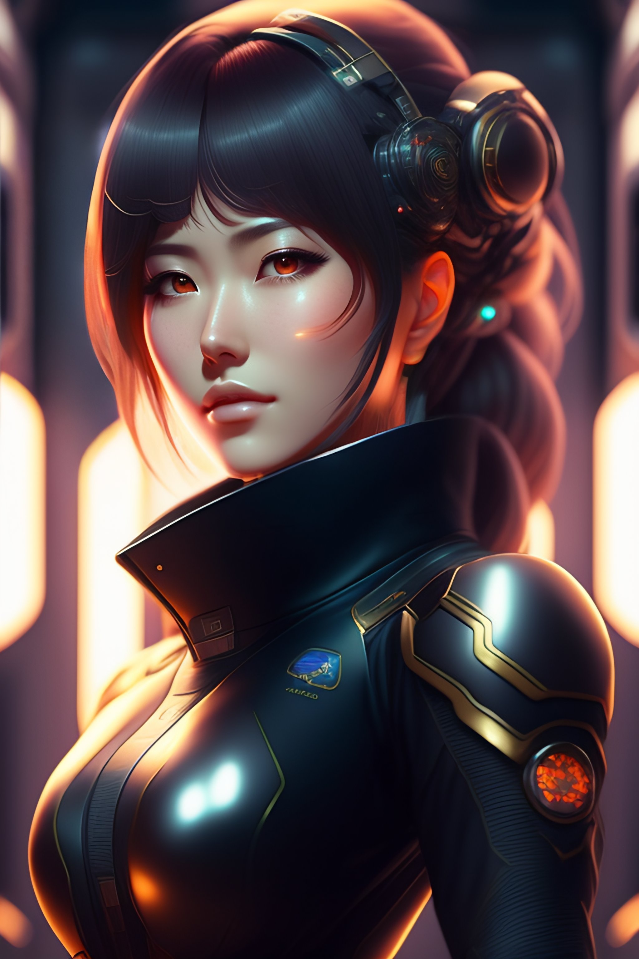 Realistic sci-fi anime female with mechanical hair in a space station, full body pose, intricate detail, digital portrait by artgerm and makoto shinkai, huifeng huang, artstation