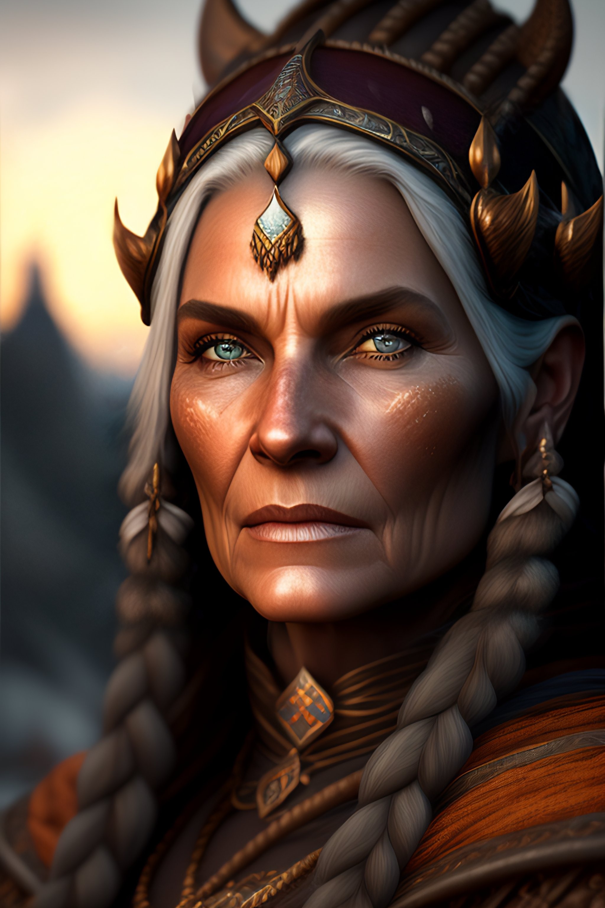 Old viking woman, beautiful, realistic face, detailed, matte painting, deep color, fantastical, intricate detail, splash screen, complementary colors, fantasy concept art, 8k resolution trending on artstation unreal engine 5, symmetrical, ☯️ ⚛