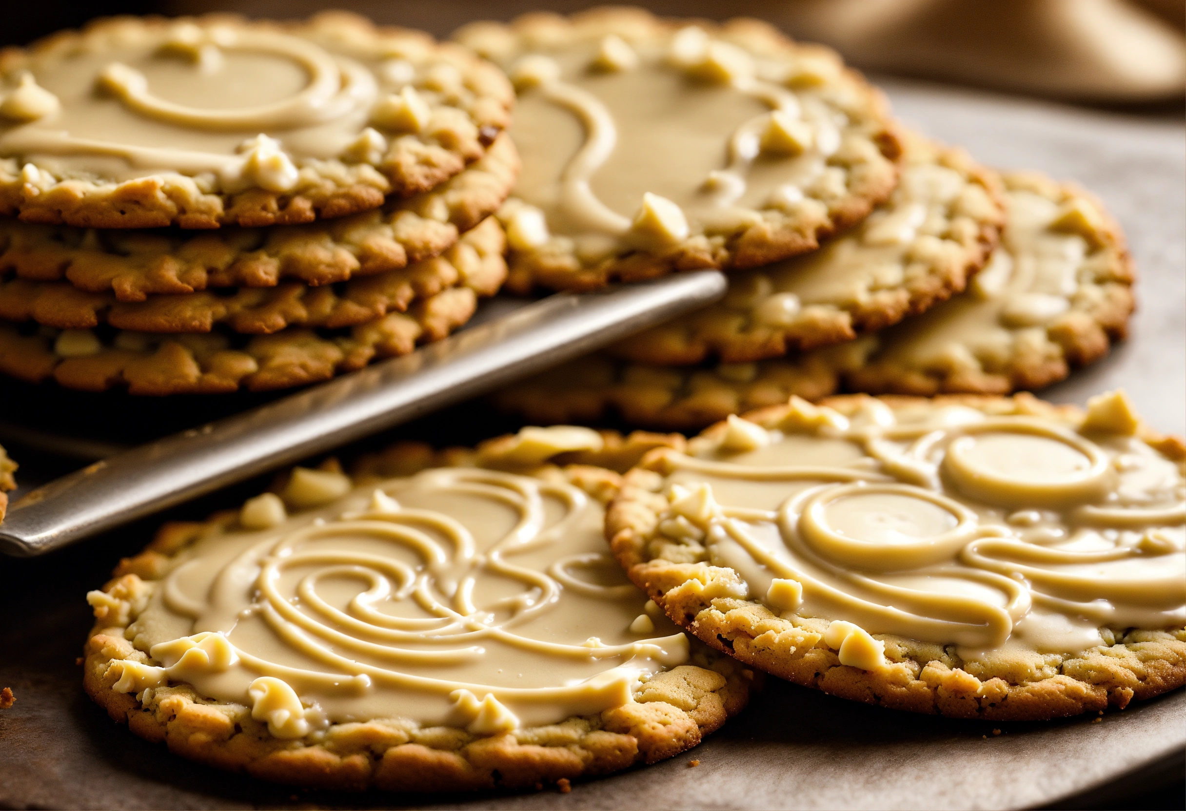 Capture the essence of a delectable americain cookie with white chocolate and macademia in a single image for our recipe website. show off its golden, lacy texture and the perfect balance. make our readers crave a bite just by looking at your photo. we want to see the florentine cookie in all its mouthwatering glory, ready to inspire bakers and delight sweet tooths alike. get creative with your composition, lighting, and styling