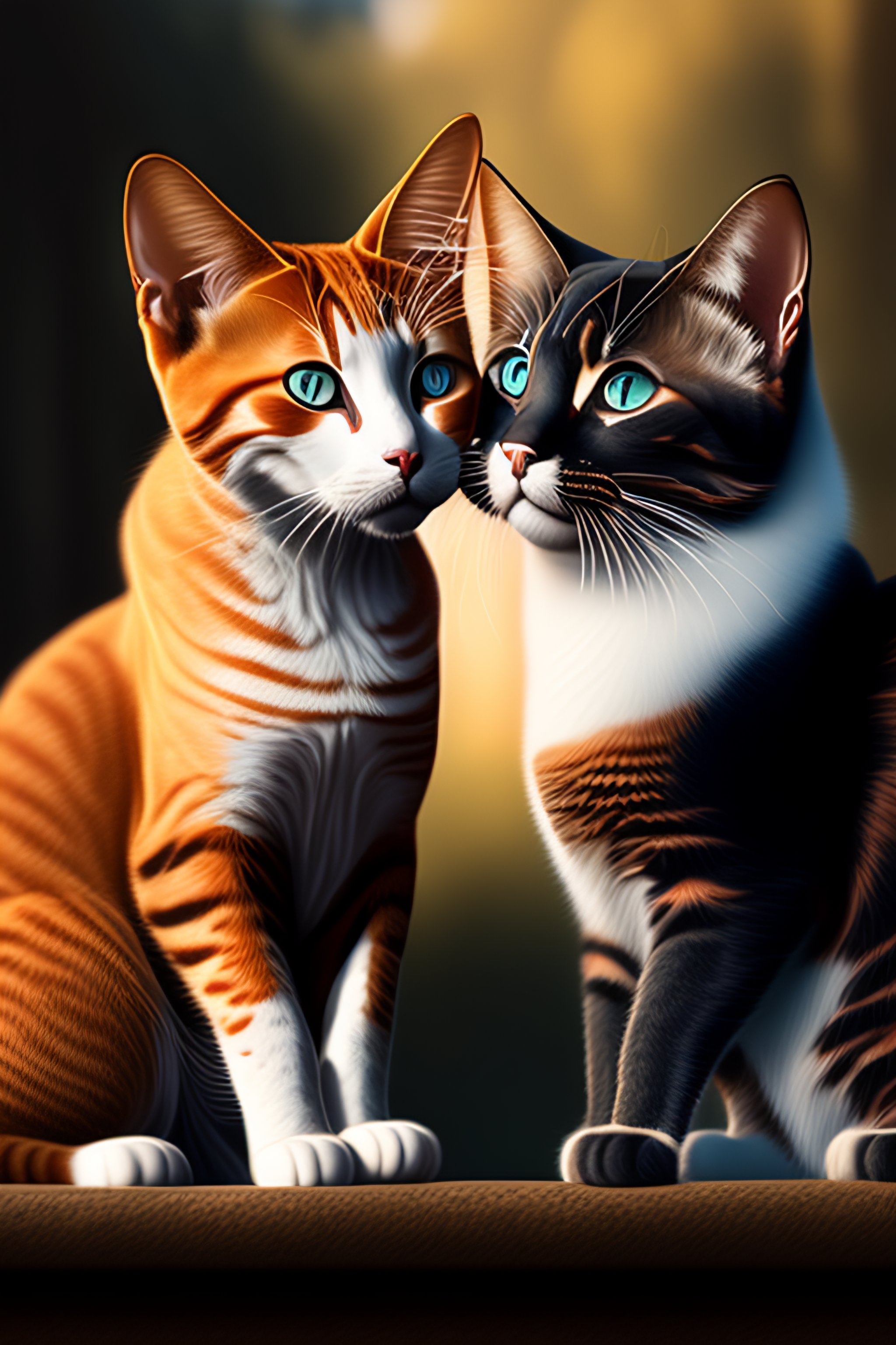 2 cats leaning against each other