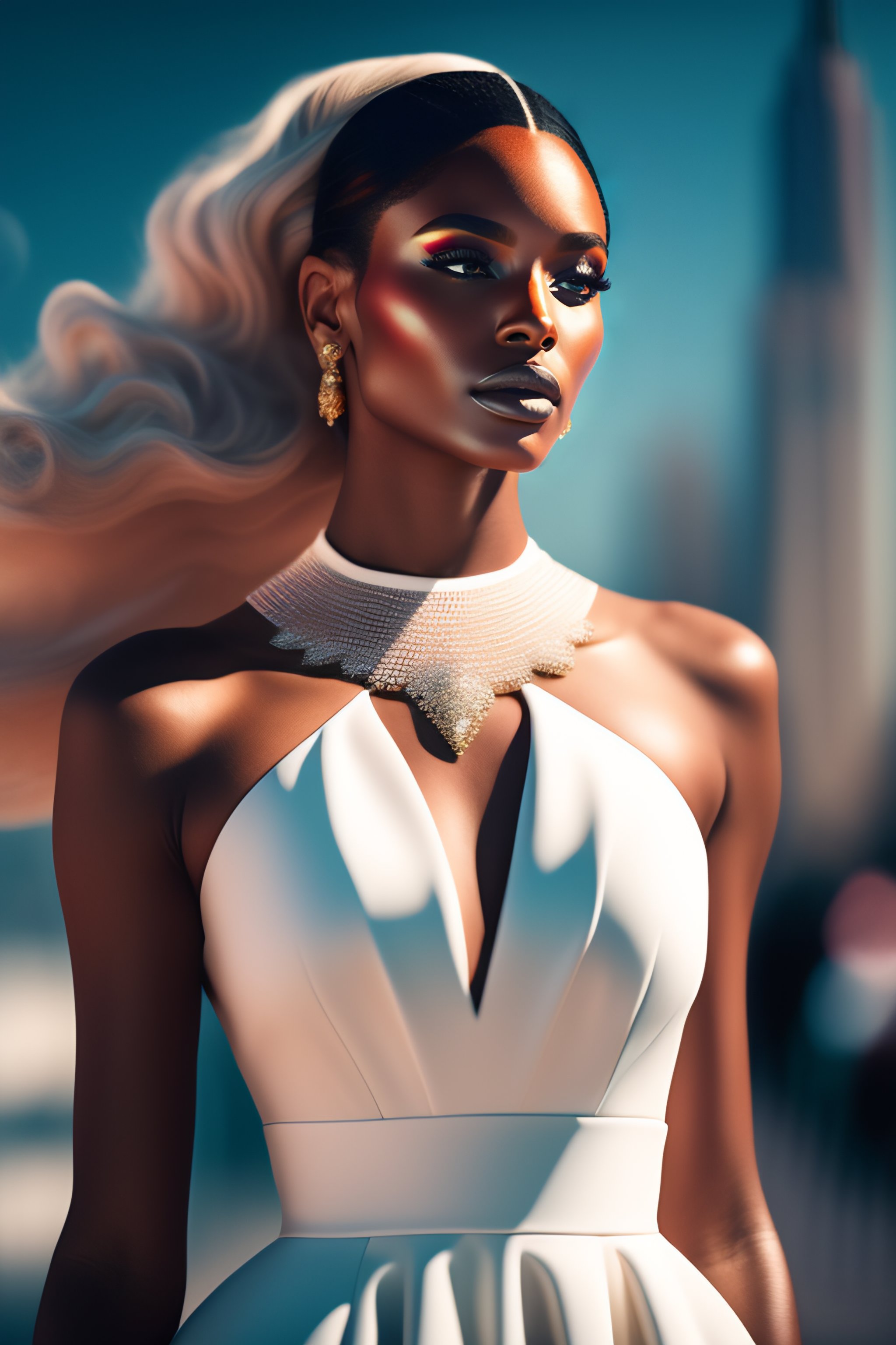 Beautiful dress design on white women in new york fashion week