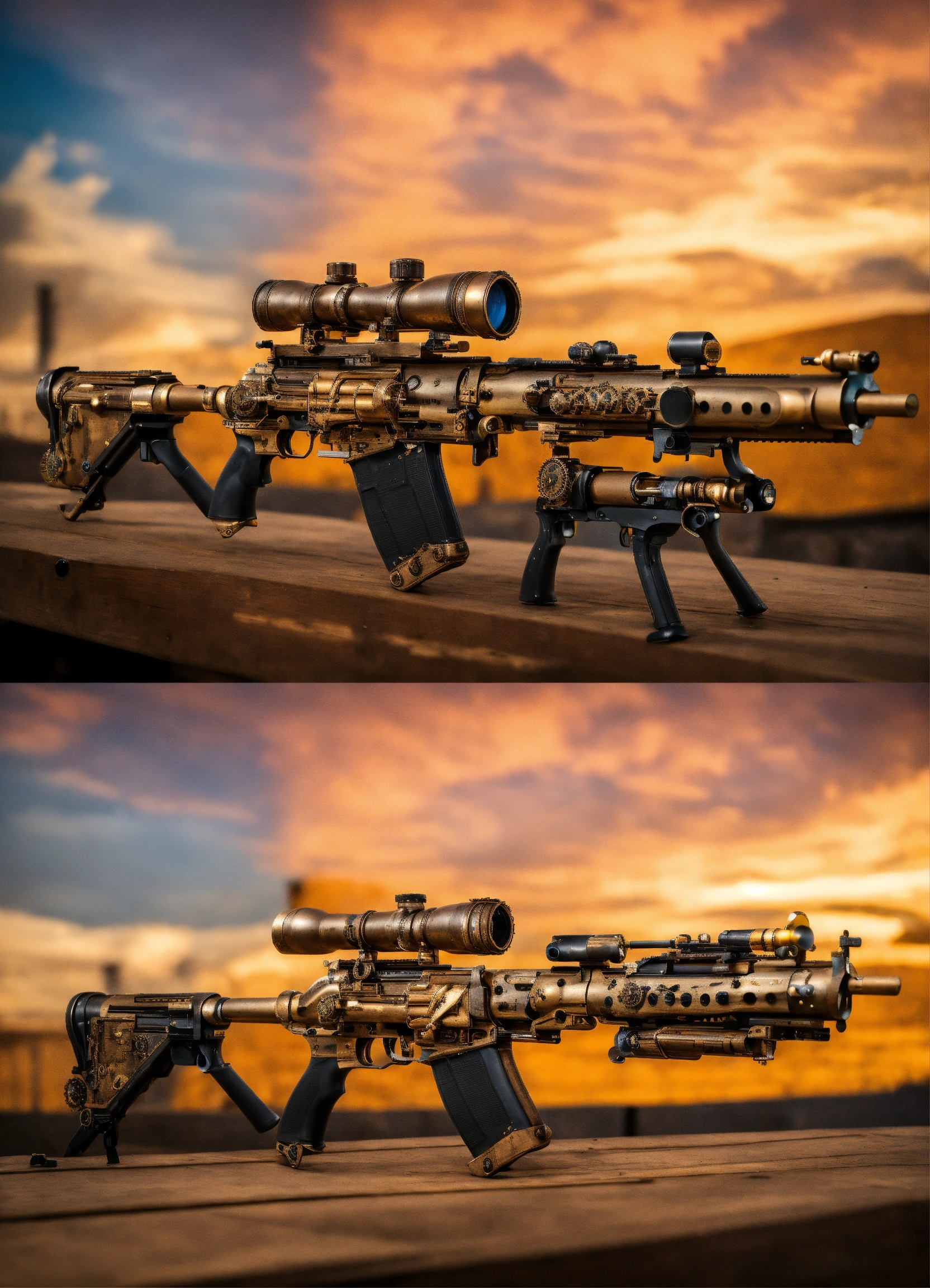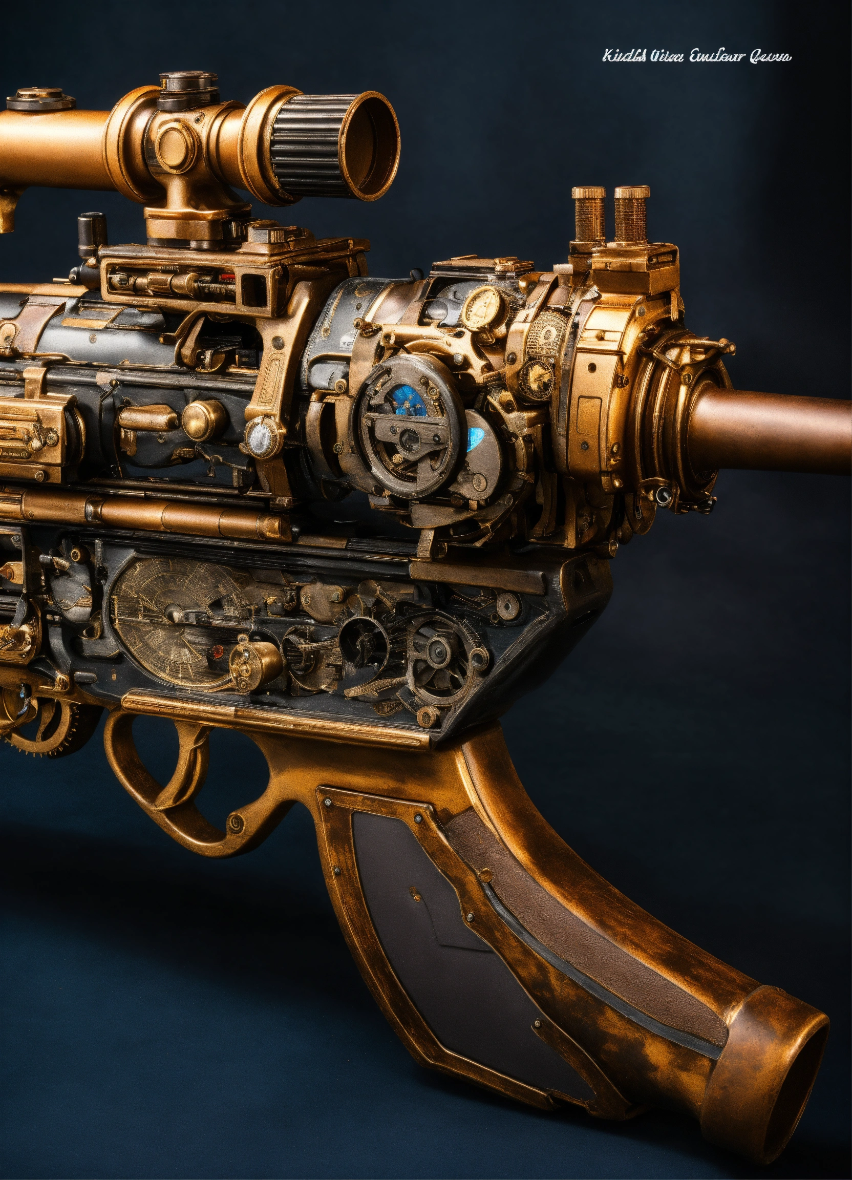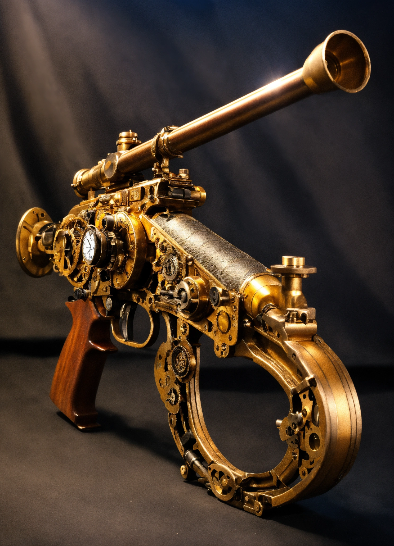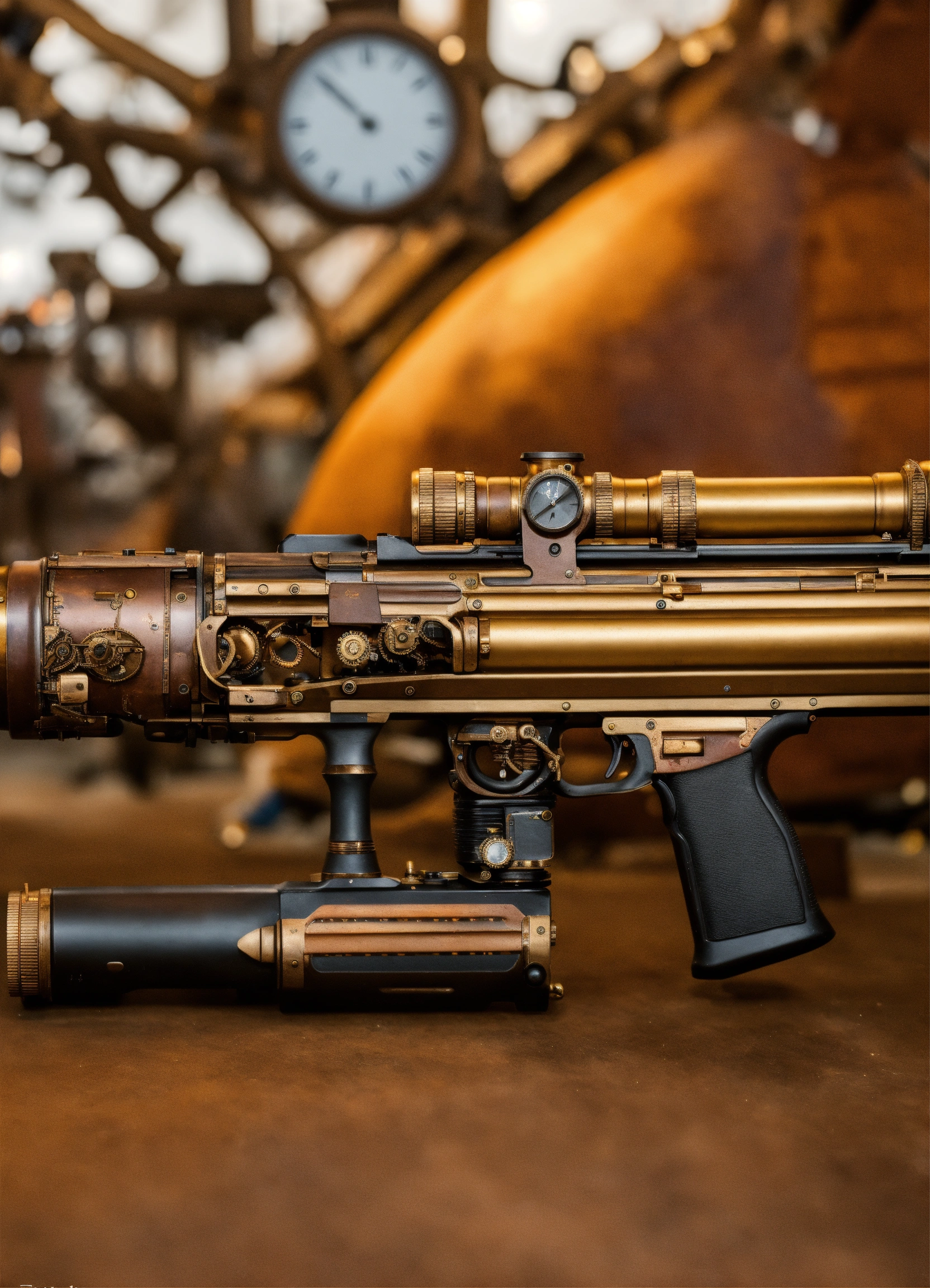 Full side view of a steampunk rifle