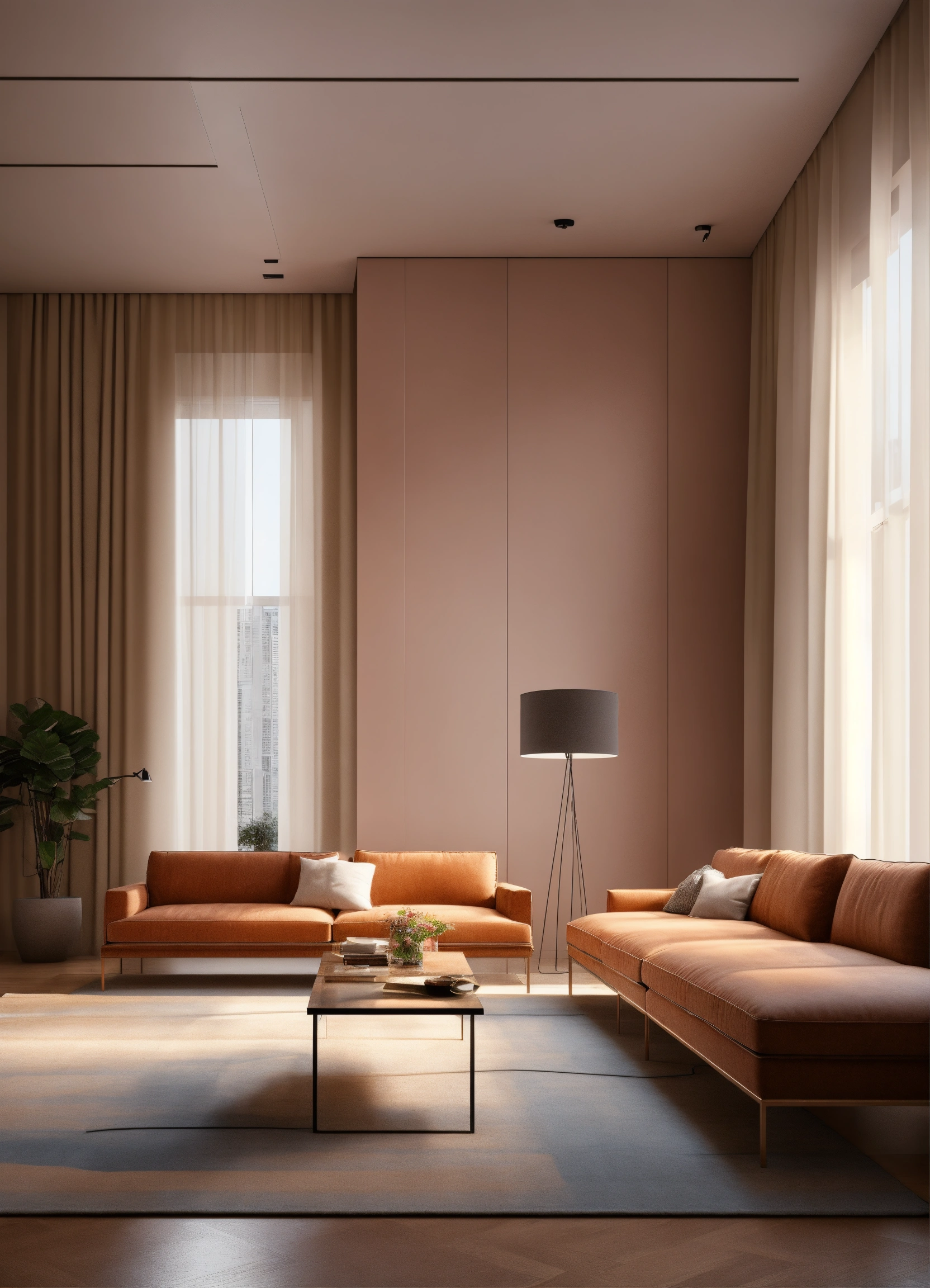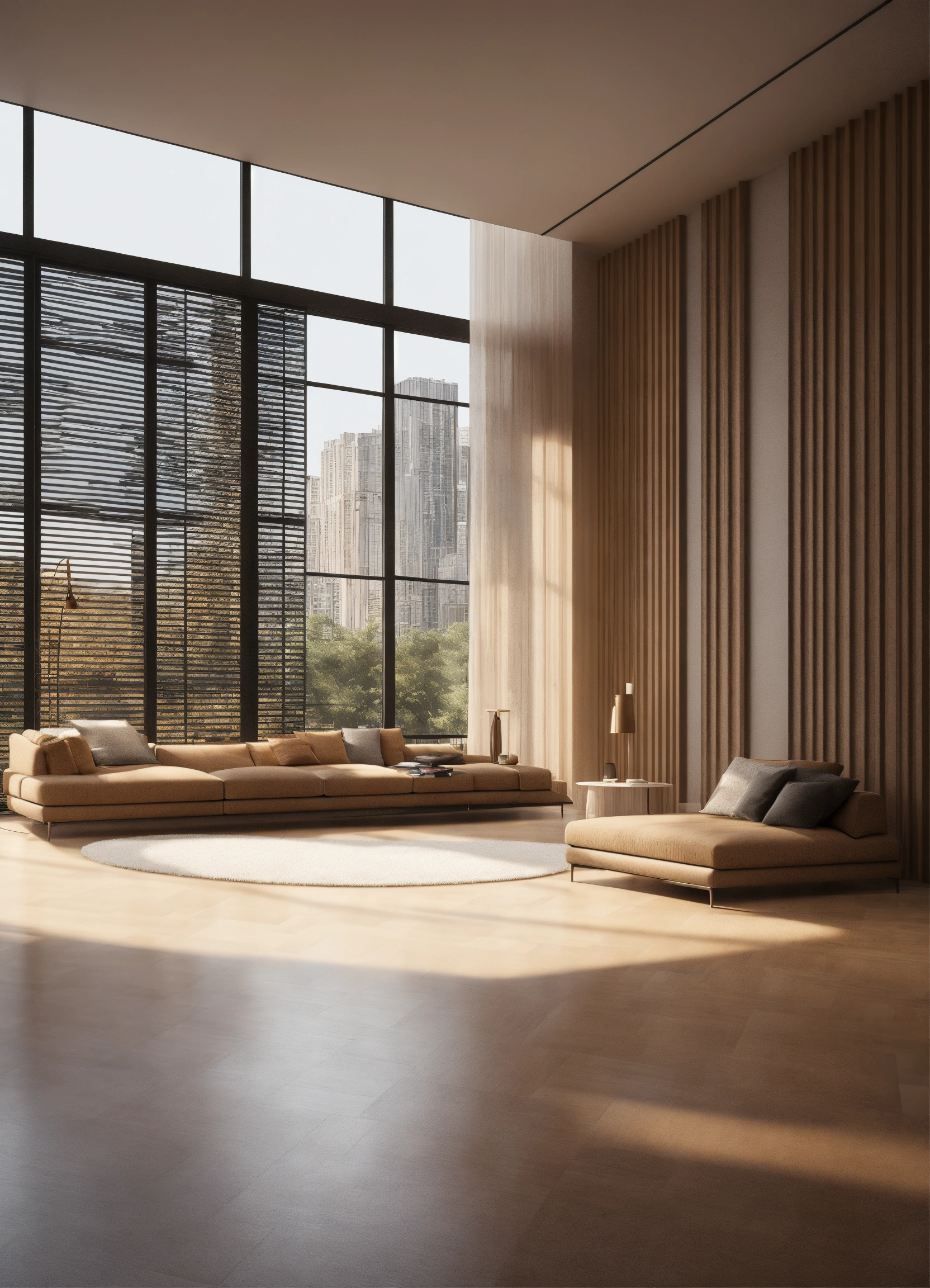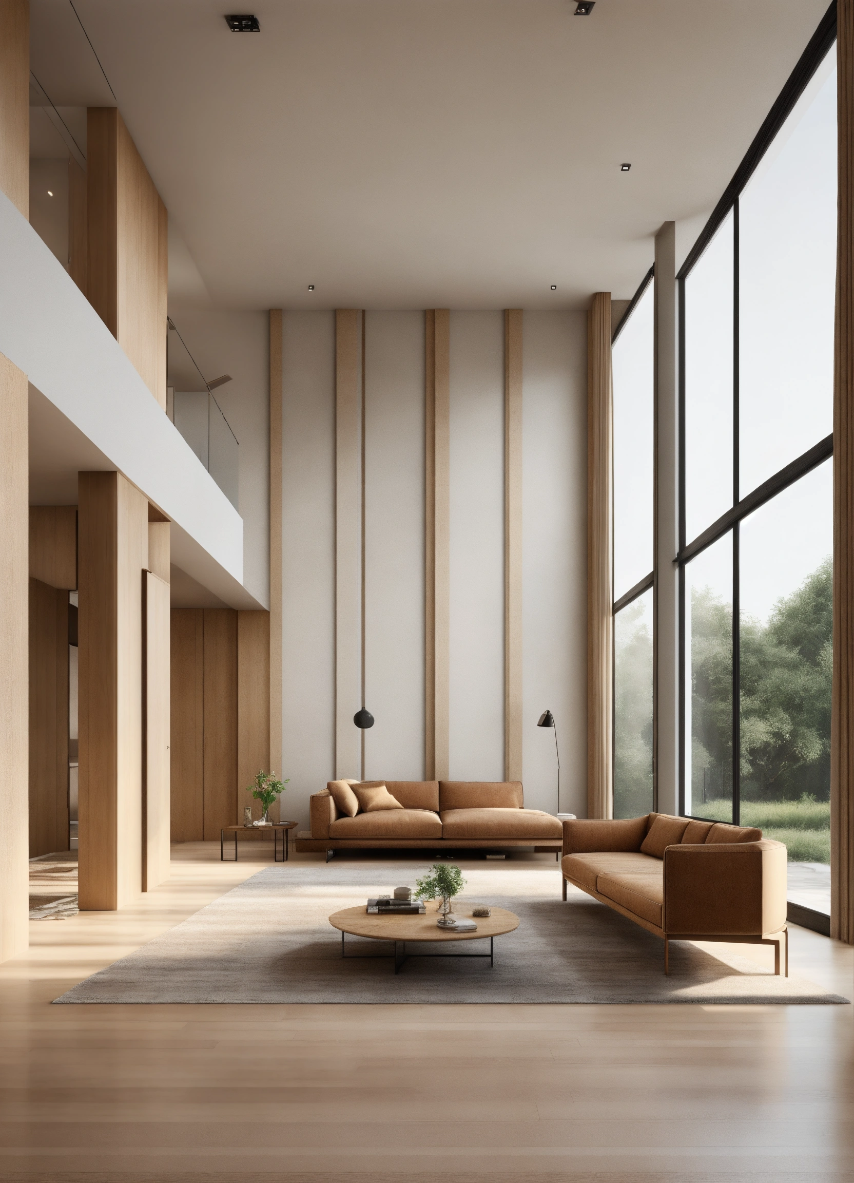 Generate a highly realistic image of a modern architecture in an elegant style, devoid of furnishings, showcasing a minimalist design. generate an empty living room without any furniture items; it's absolutely crucial that there are no sofas, armchairs, or loveseats.