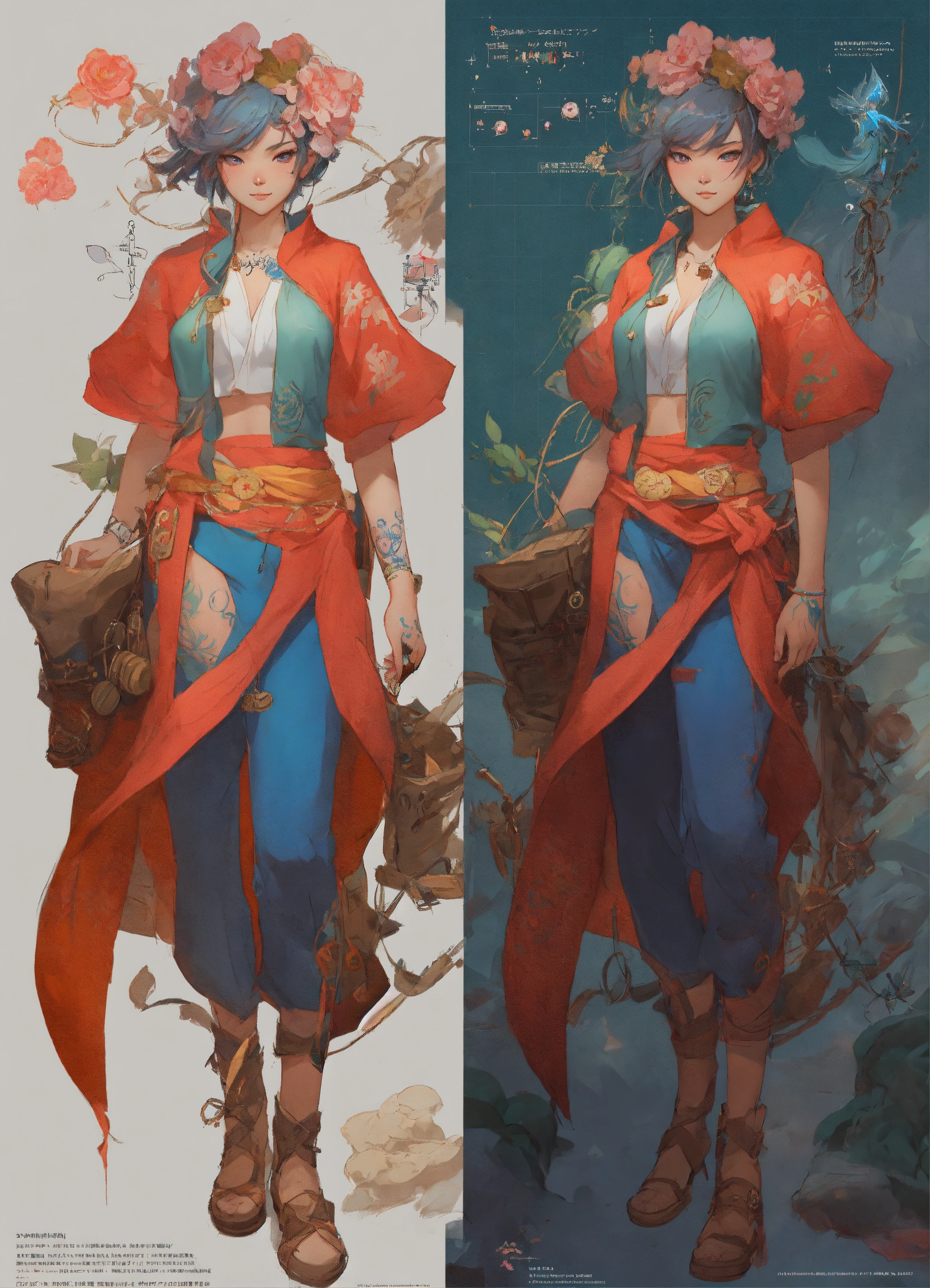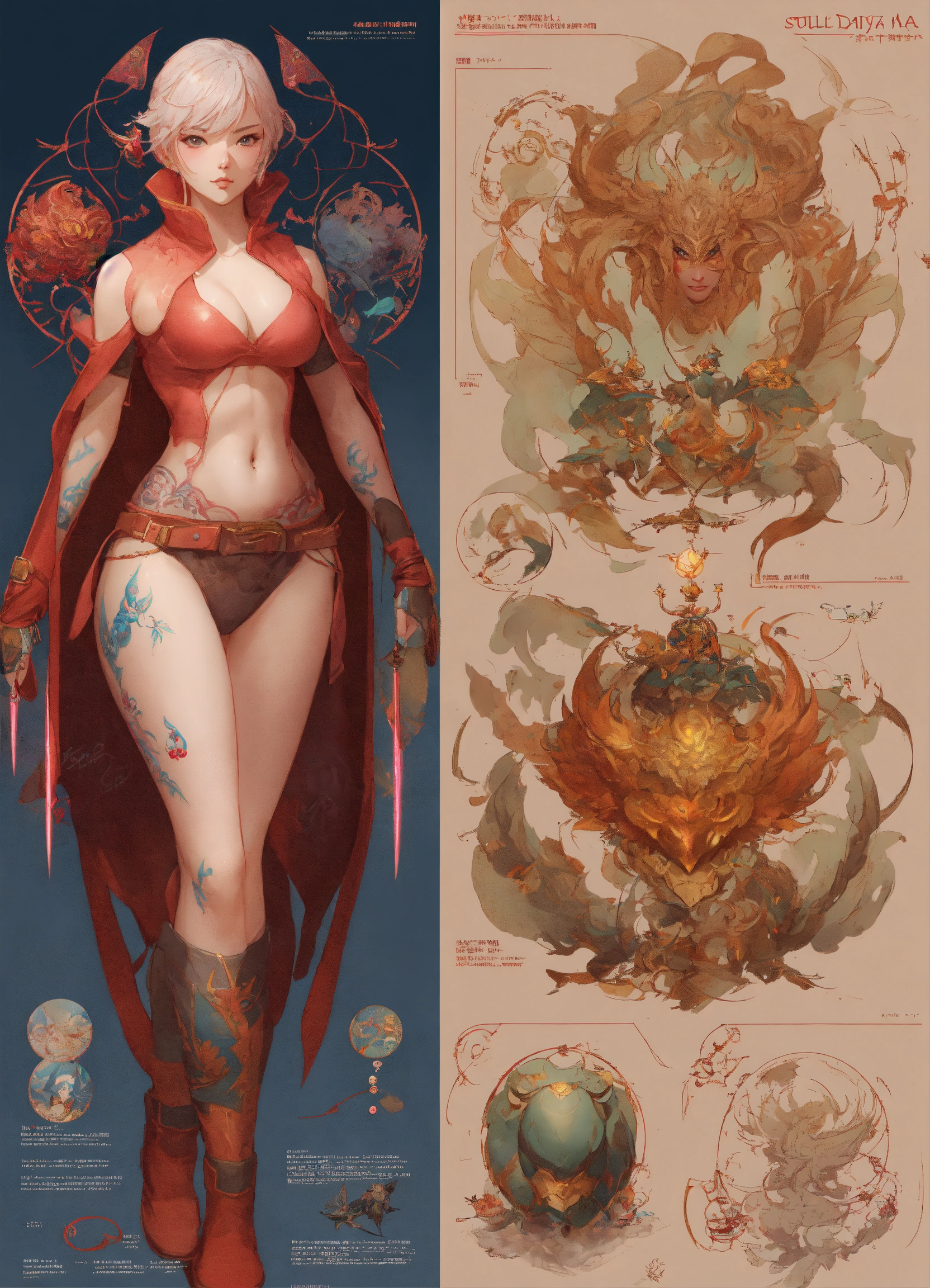 Full magic tattoo body, character sheet, character design, chart, reference sheet, multiple views, high detail, fine details, concept art, rossdraws, james jean, sakimichan, moebius, stanley artgerm lau, jayison devadas, phuoc quan, studio ghibli