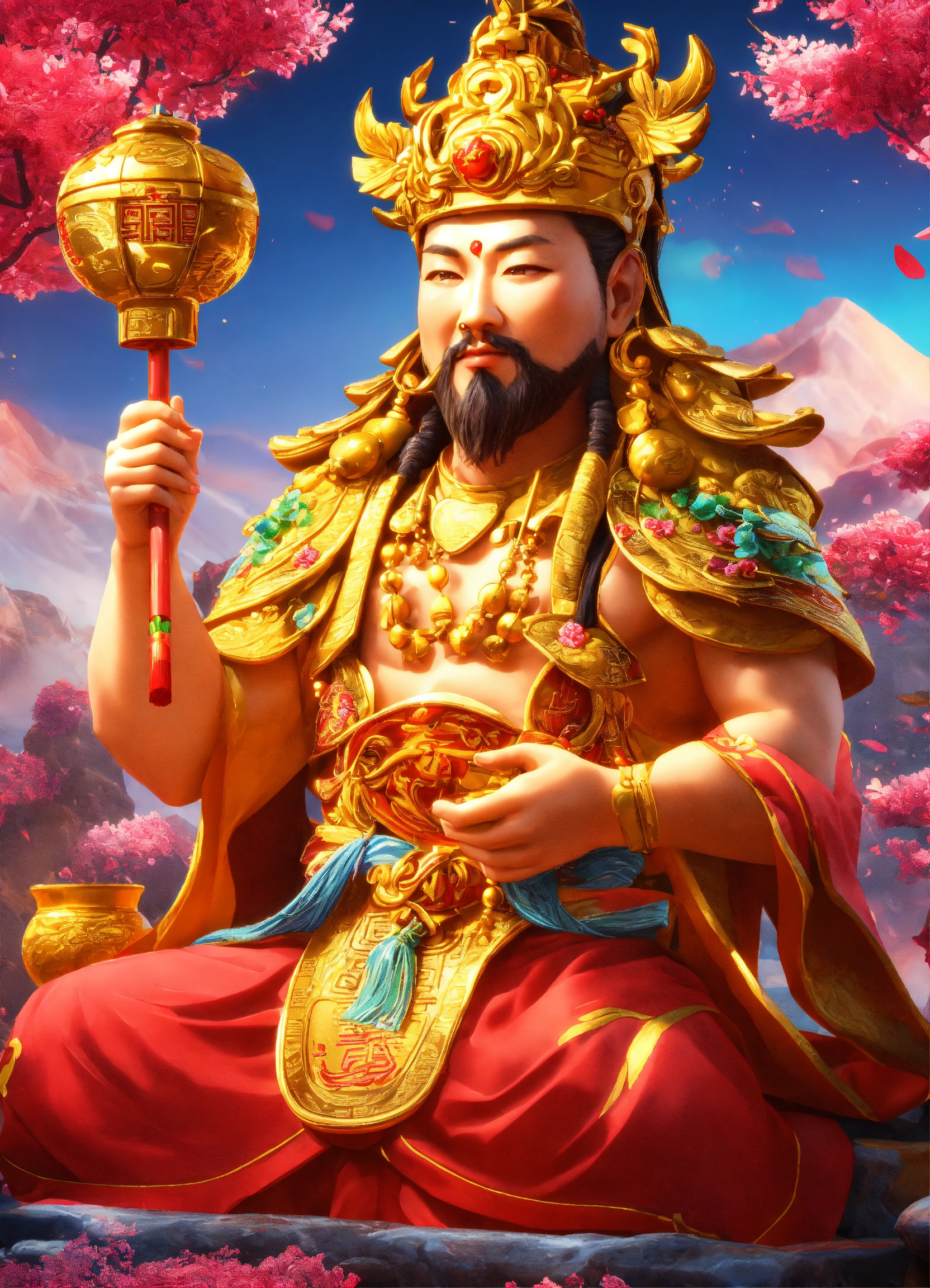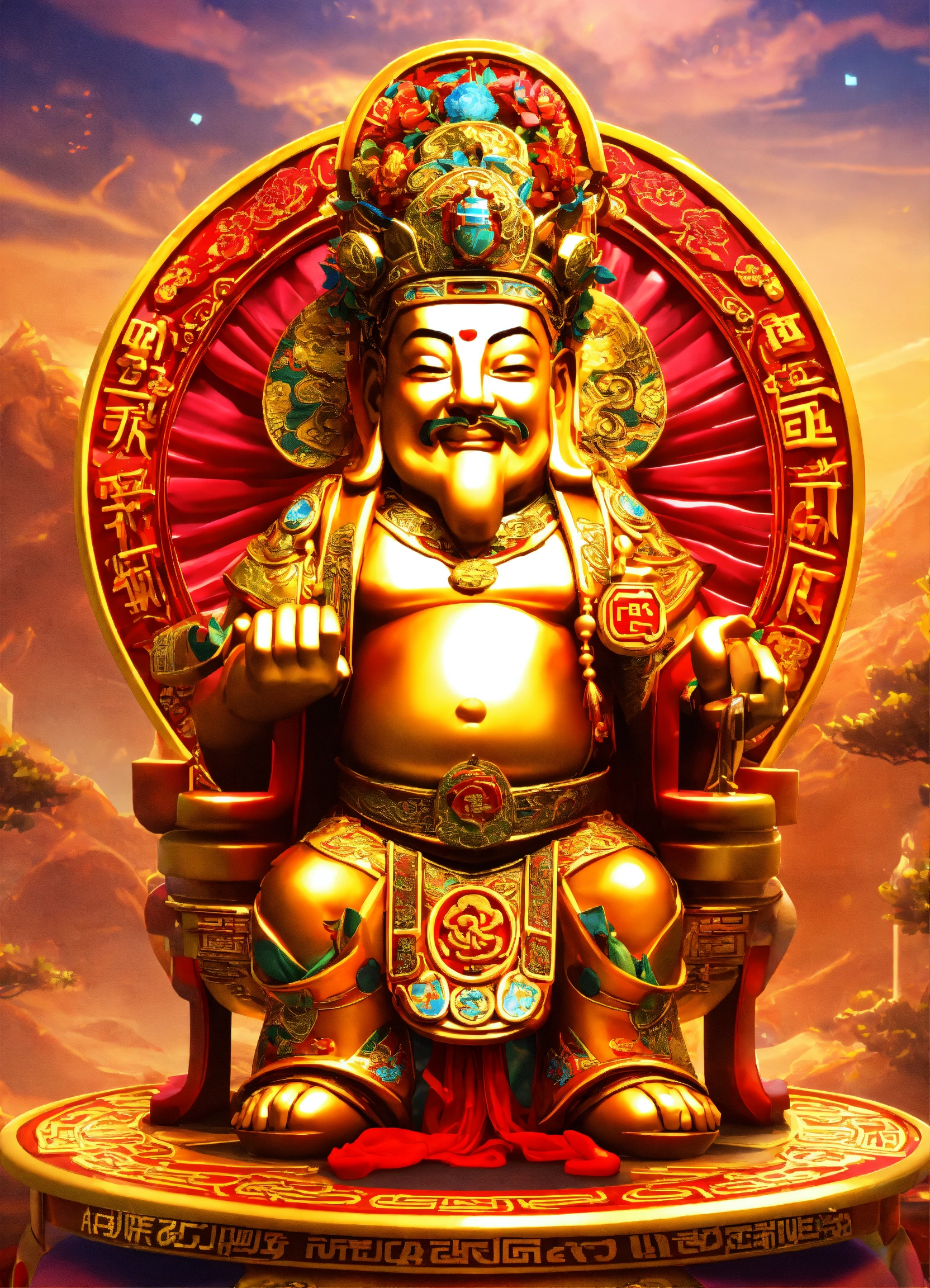 3d god of wealth (chinese) with cryber future slot machine game impressionistic treasure elegant fortune icon