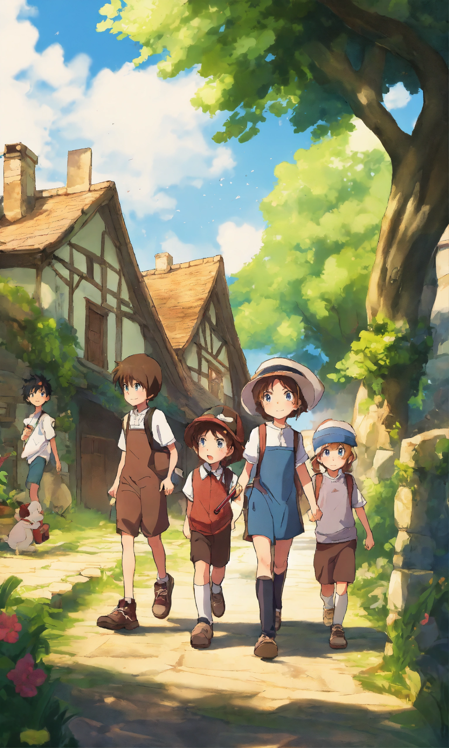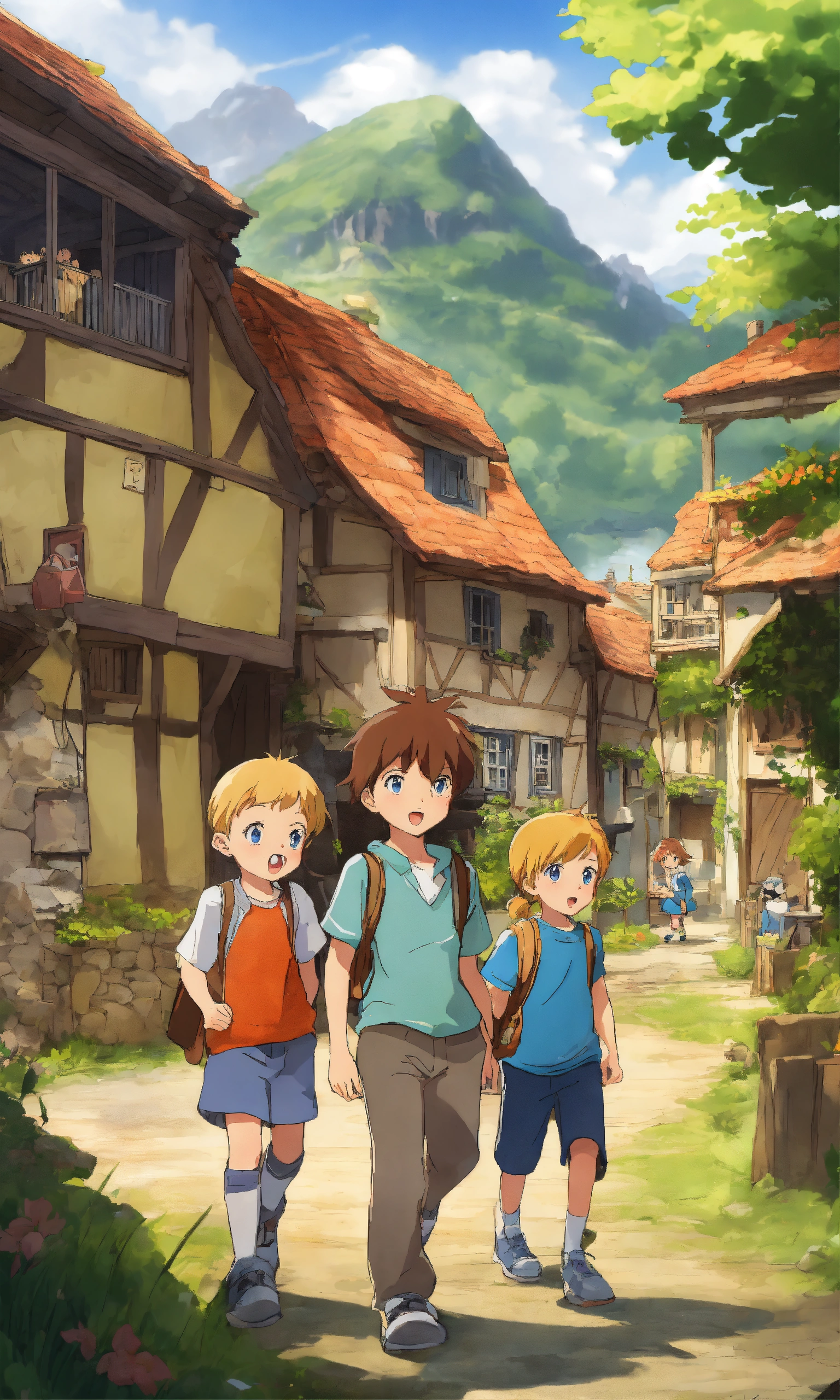 4 enfants de 5 a 8 ans dans un village a la recherche dun tresort