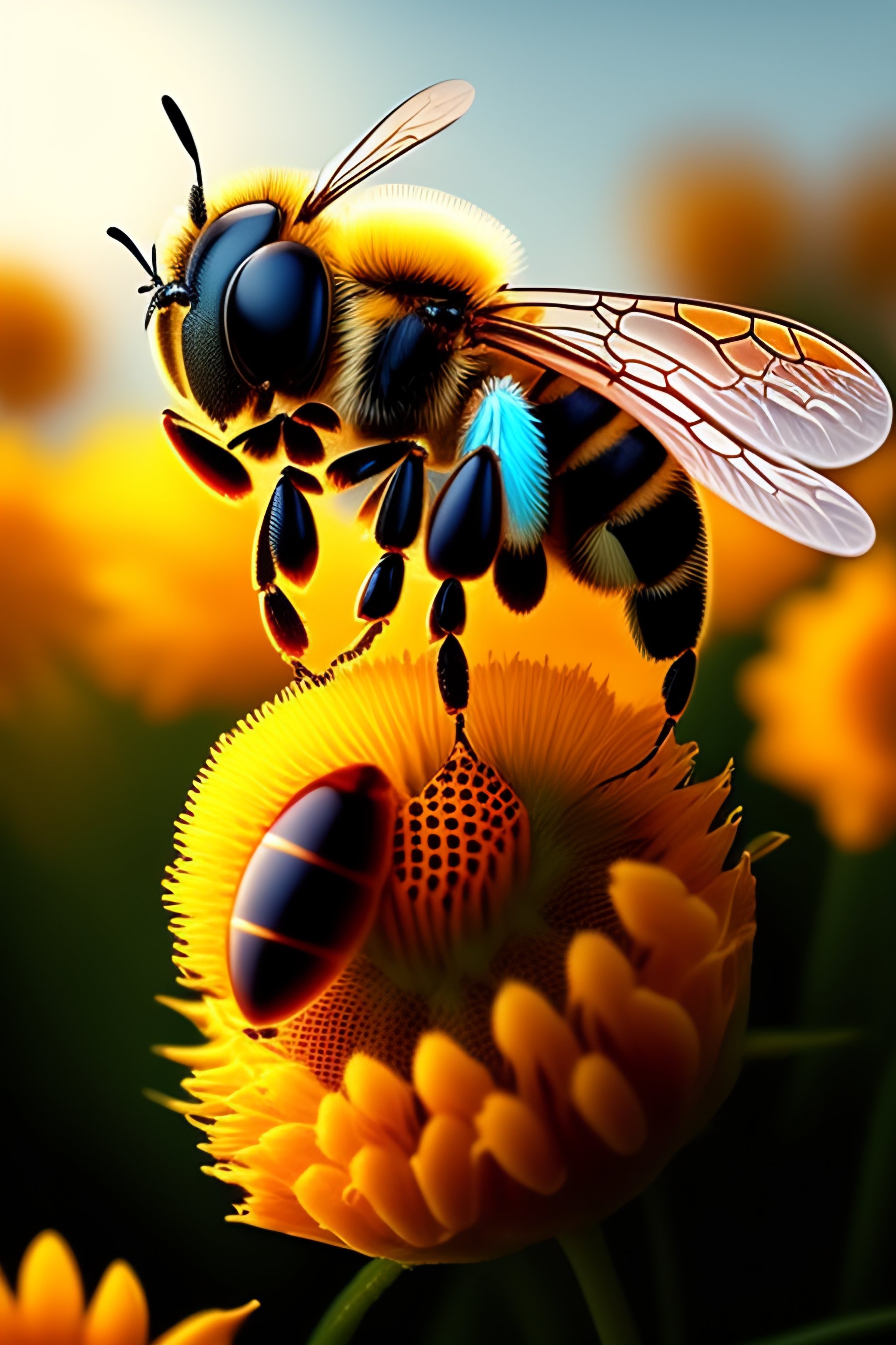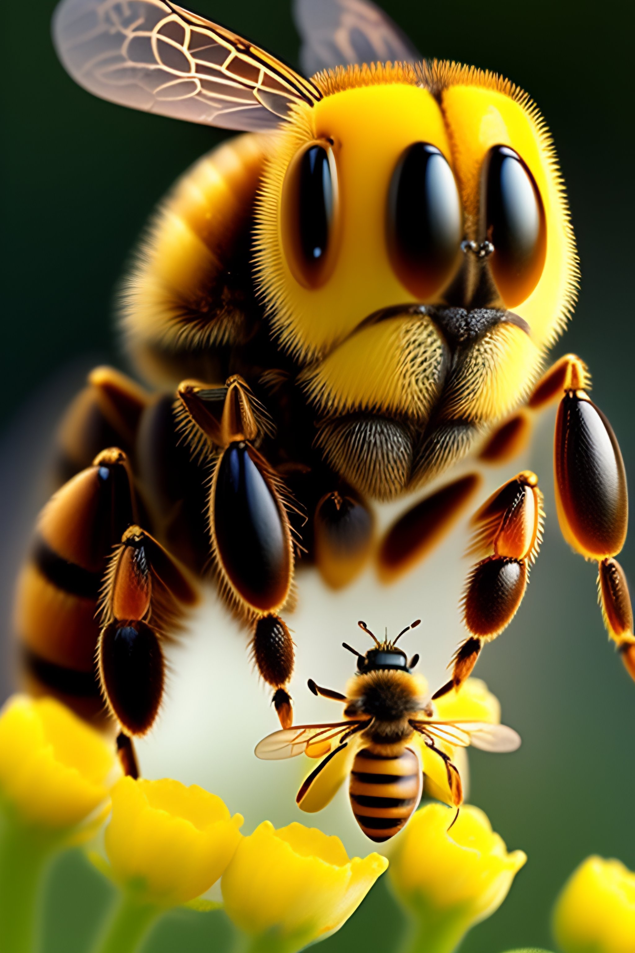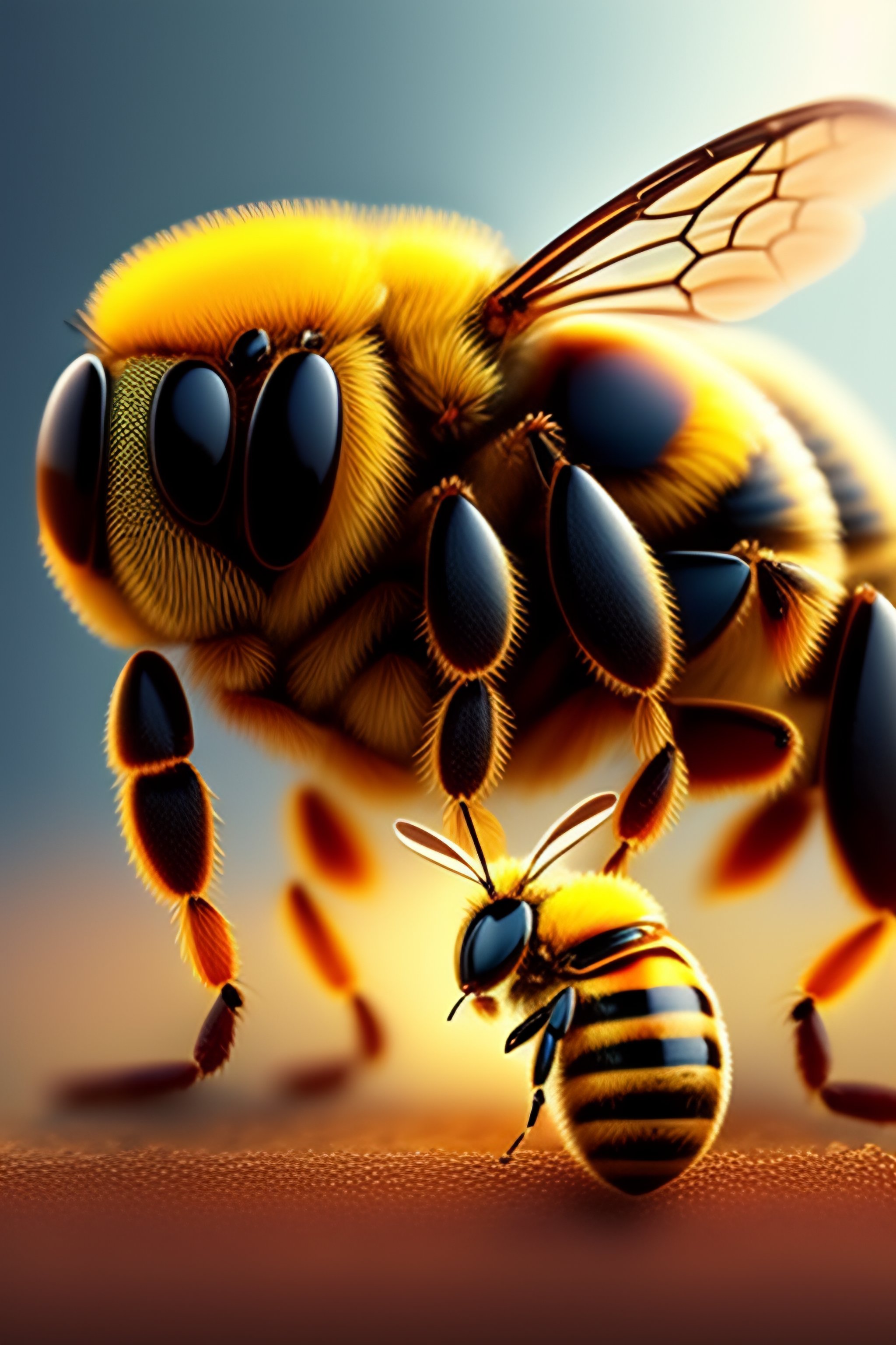 Giant honey bee hunting down people who are running for their lives, realitic, scary, terrifying, horror, fear, people, running, running for life, agony, cute bee