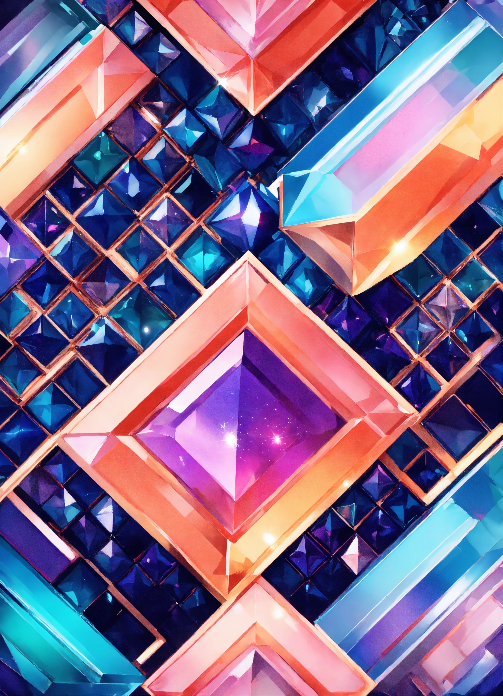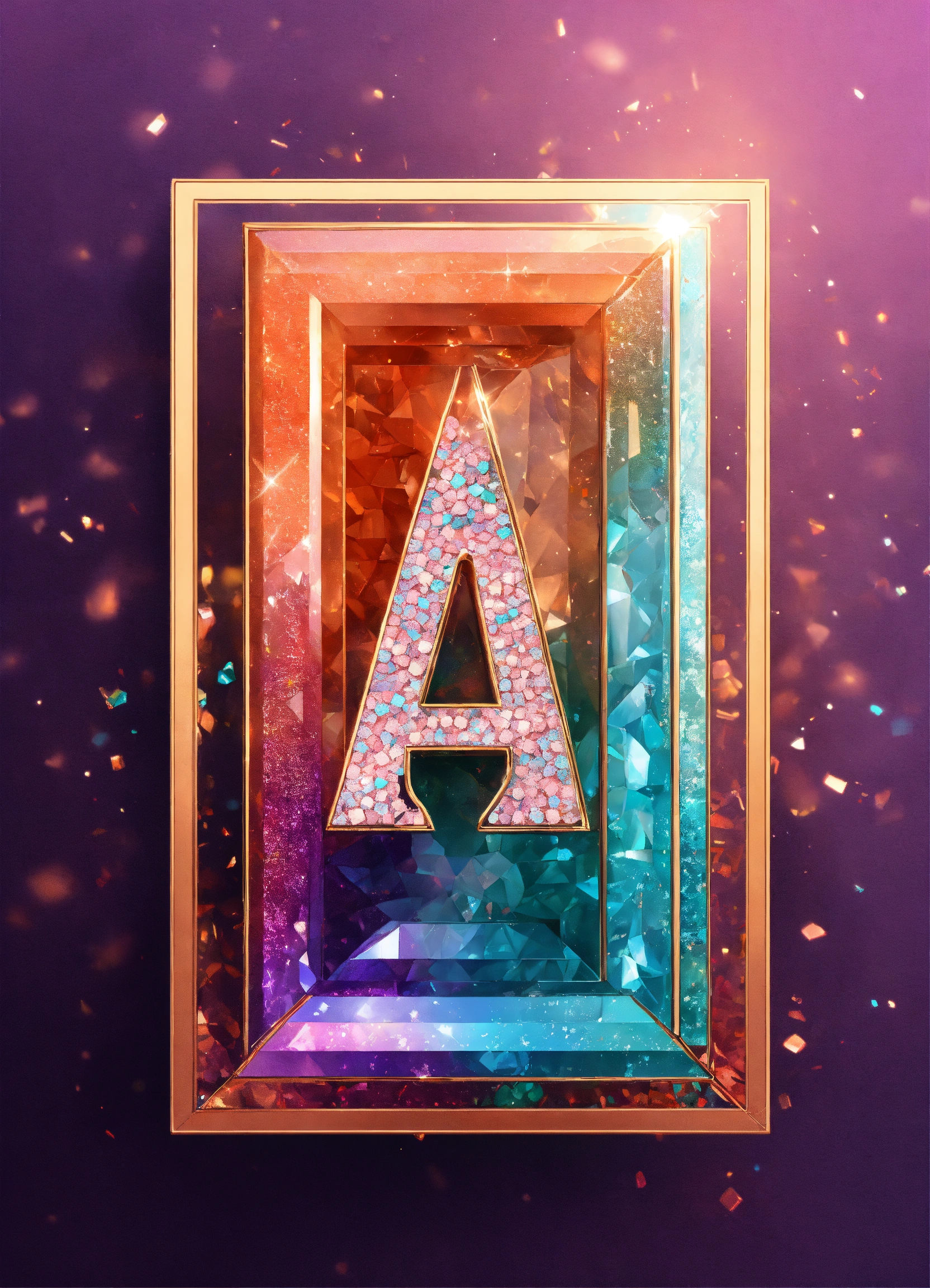 Business logo with a vertical letters rectangle shaped iconic symbolism . crystallized, rhinestones sequins shine glitter, sparkle, made with colors of coral/peach, violet and turquoise, classy, modern, feminine 8k, hd, intricate