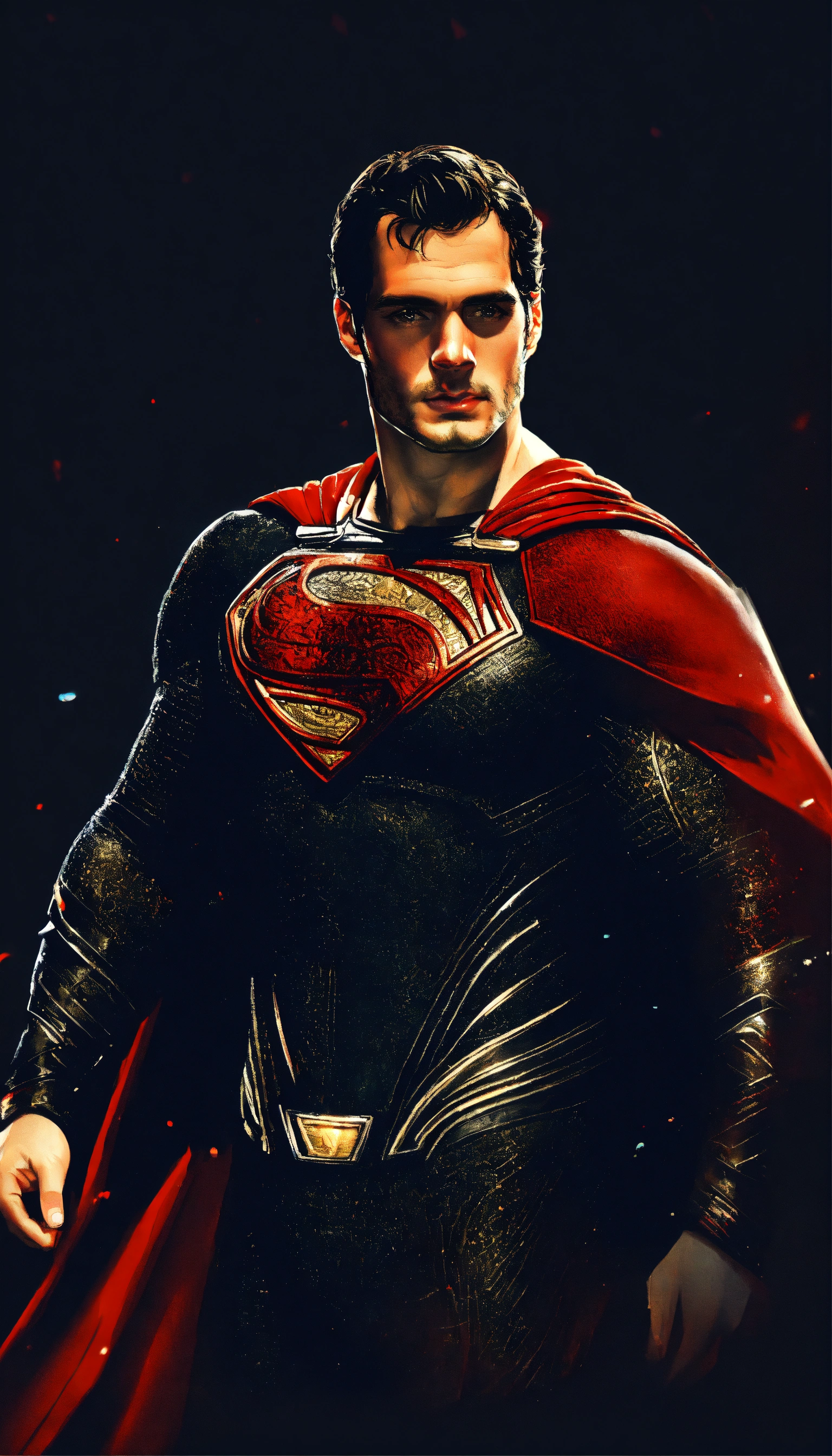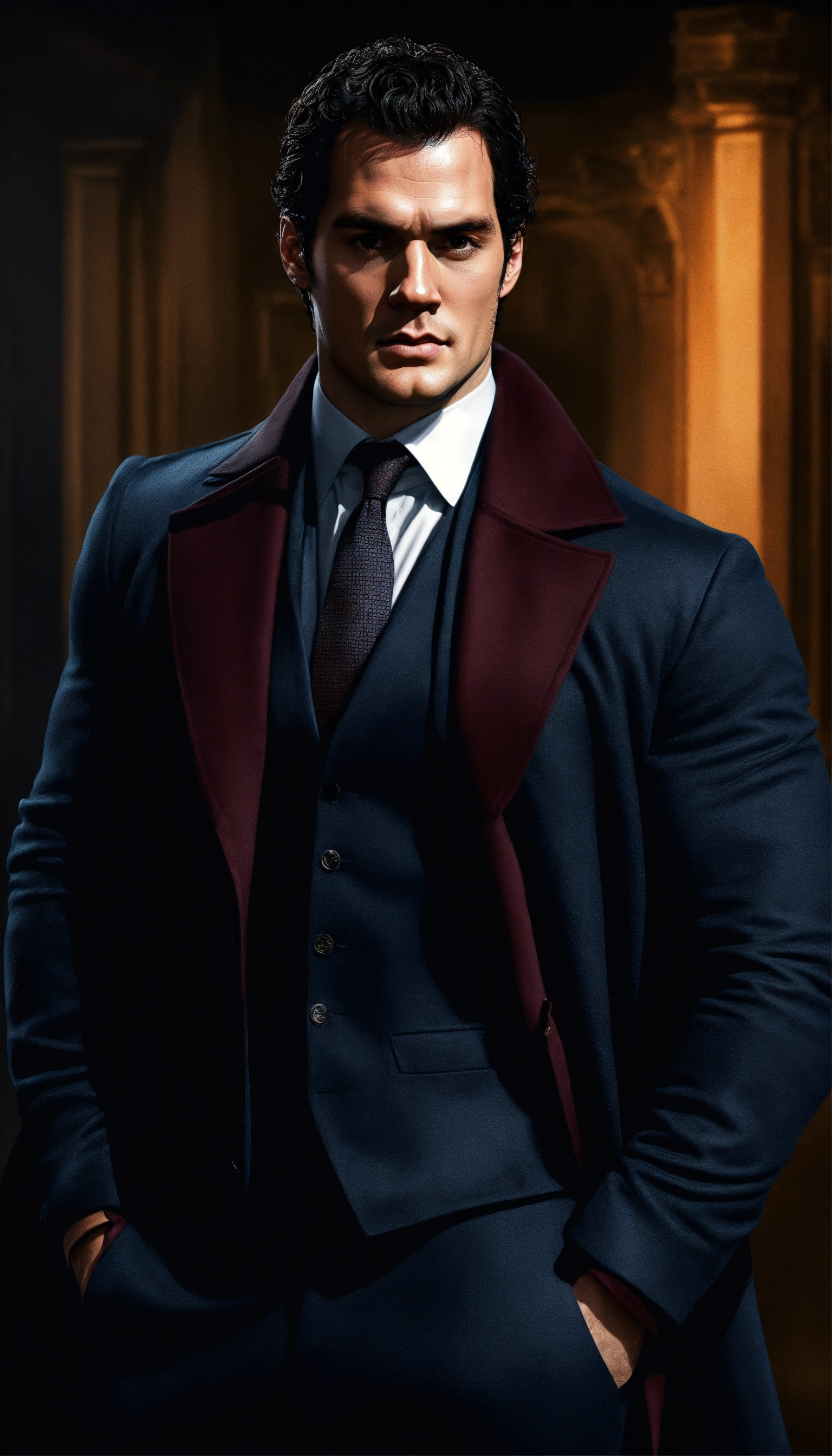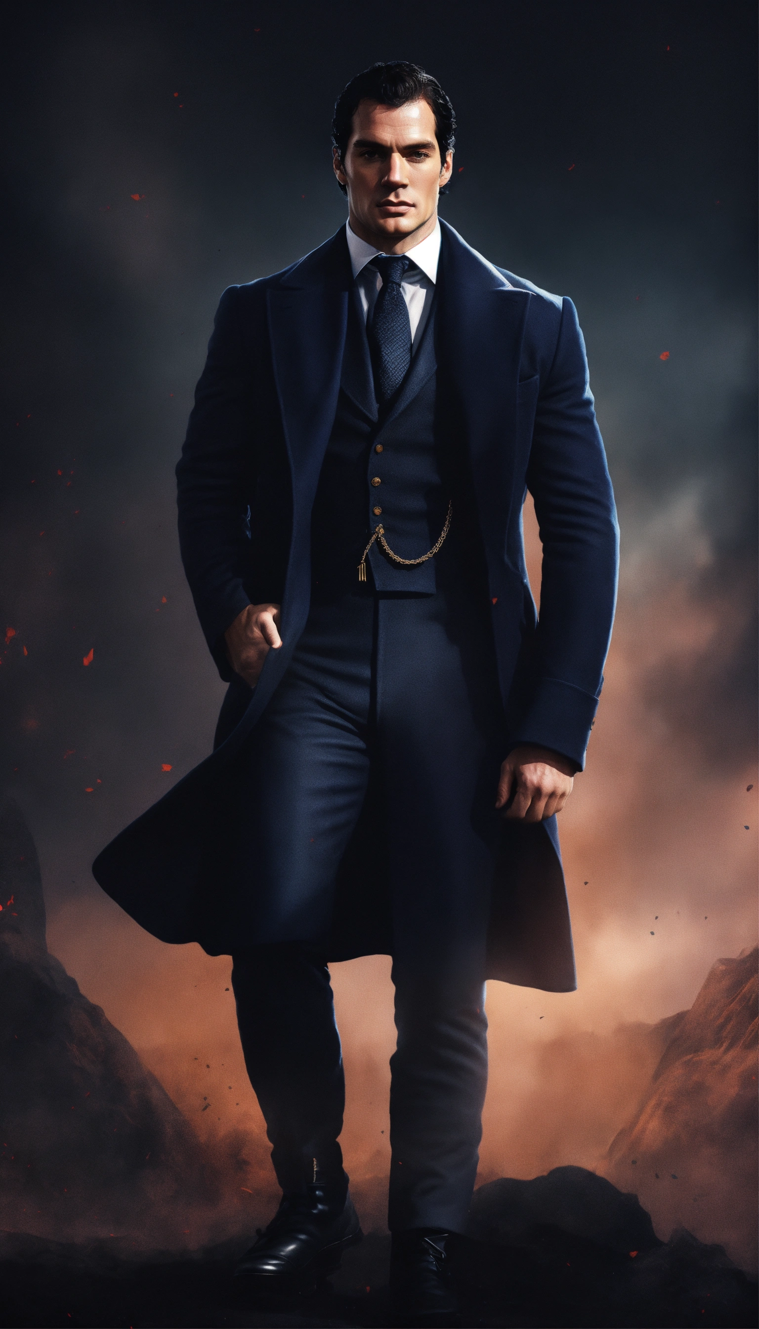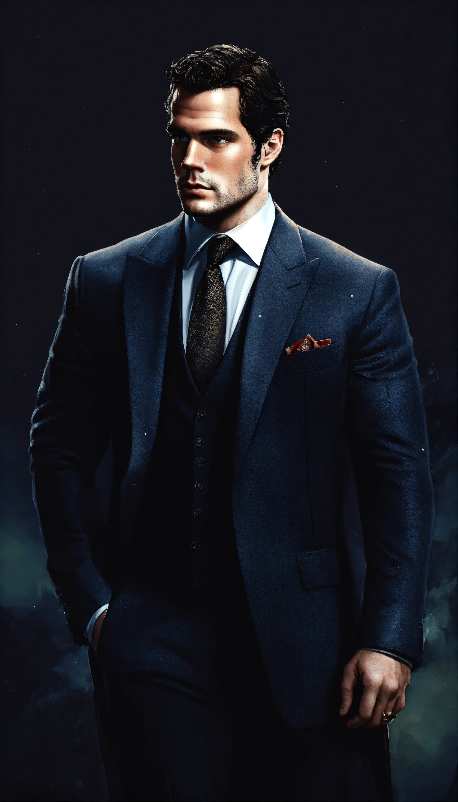 Henry cavill, illustration, 2d, realism, black flat background, flat image, mysterious aura, full body