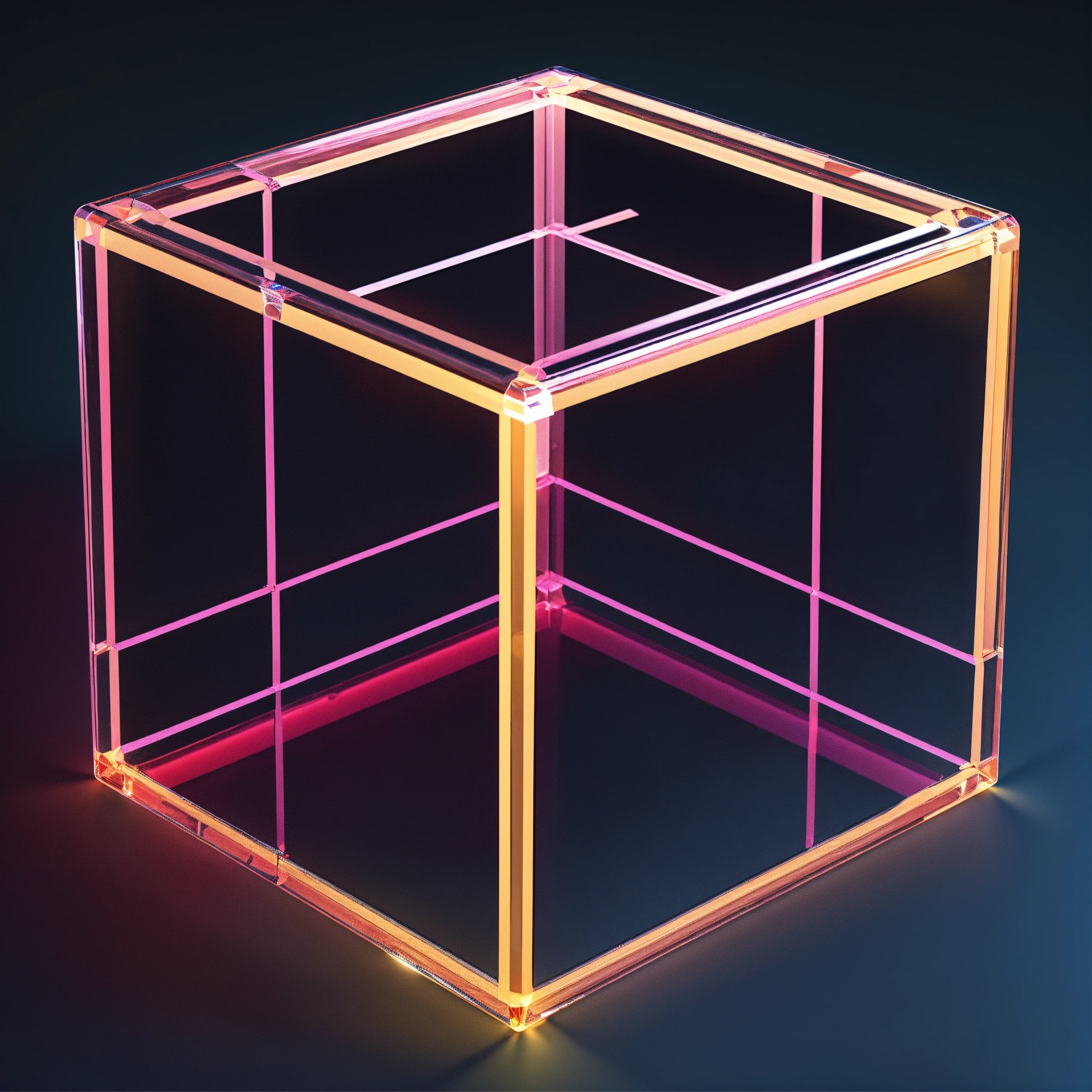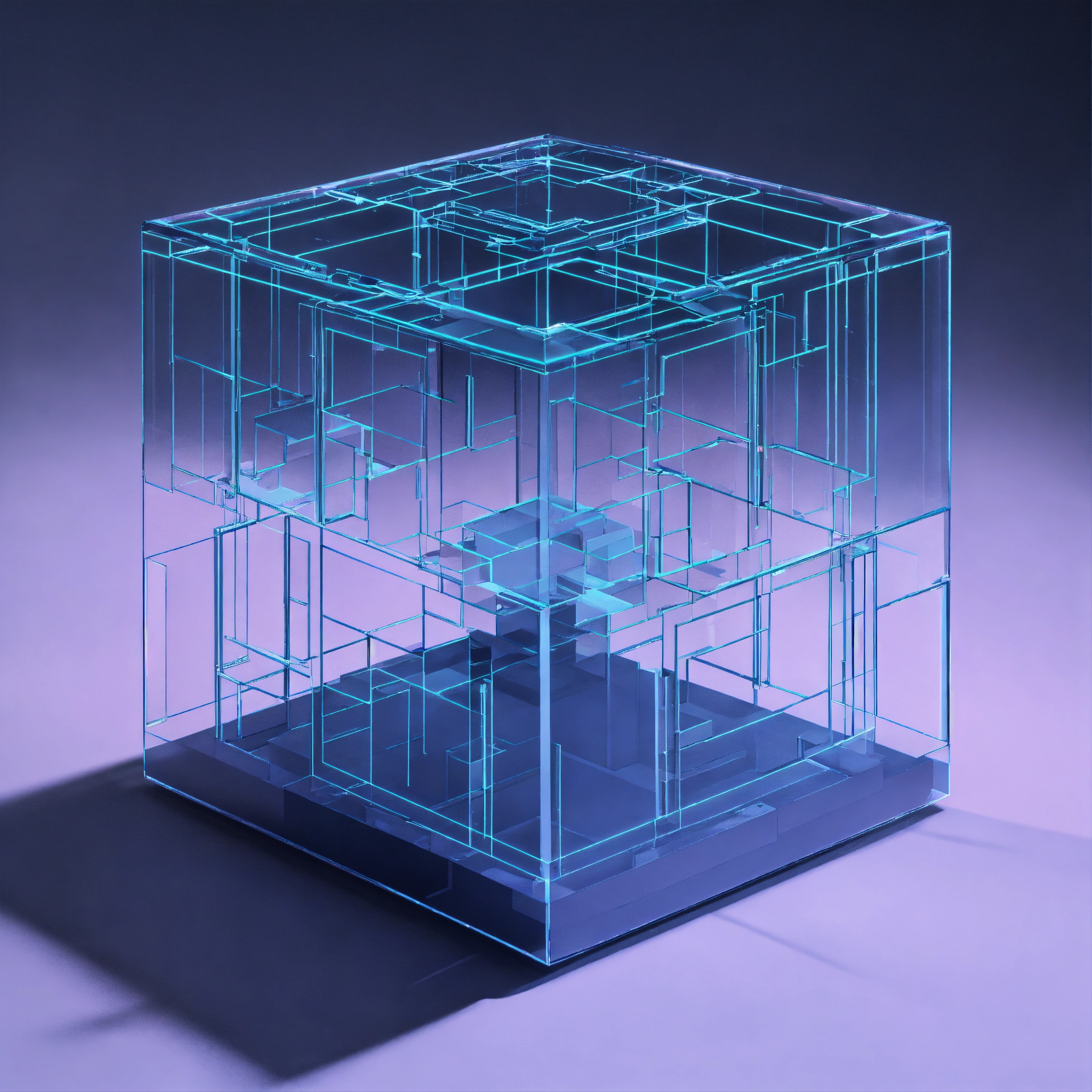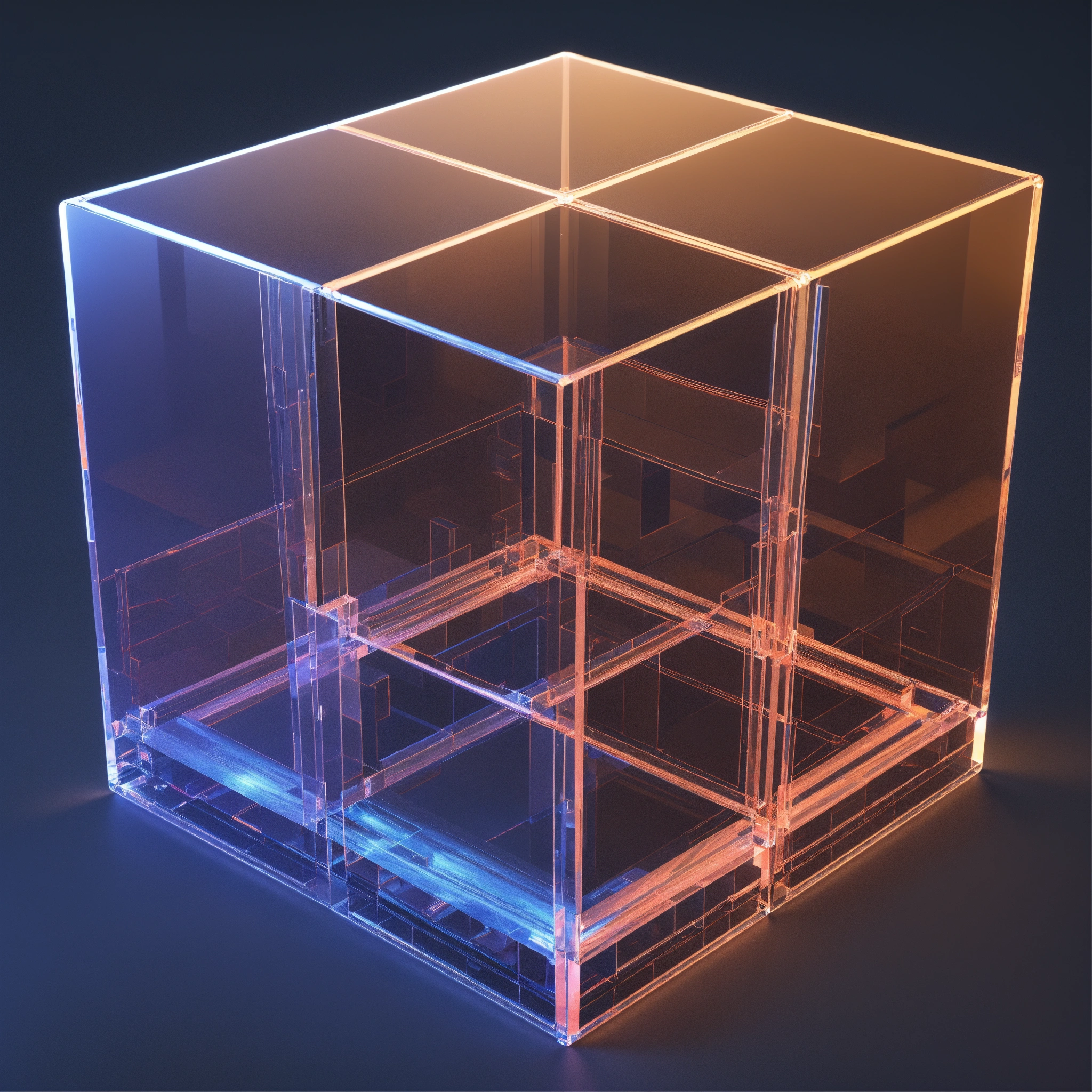 Isometric 3d render of a transparent cube highlighting an area of 30x30 meters, iso, axo, simple one color