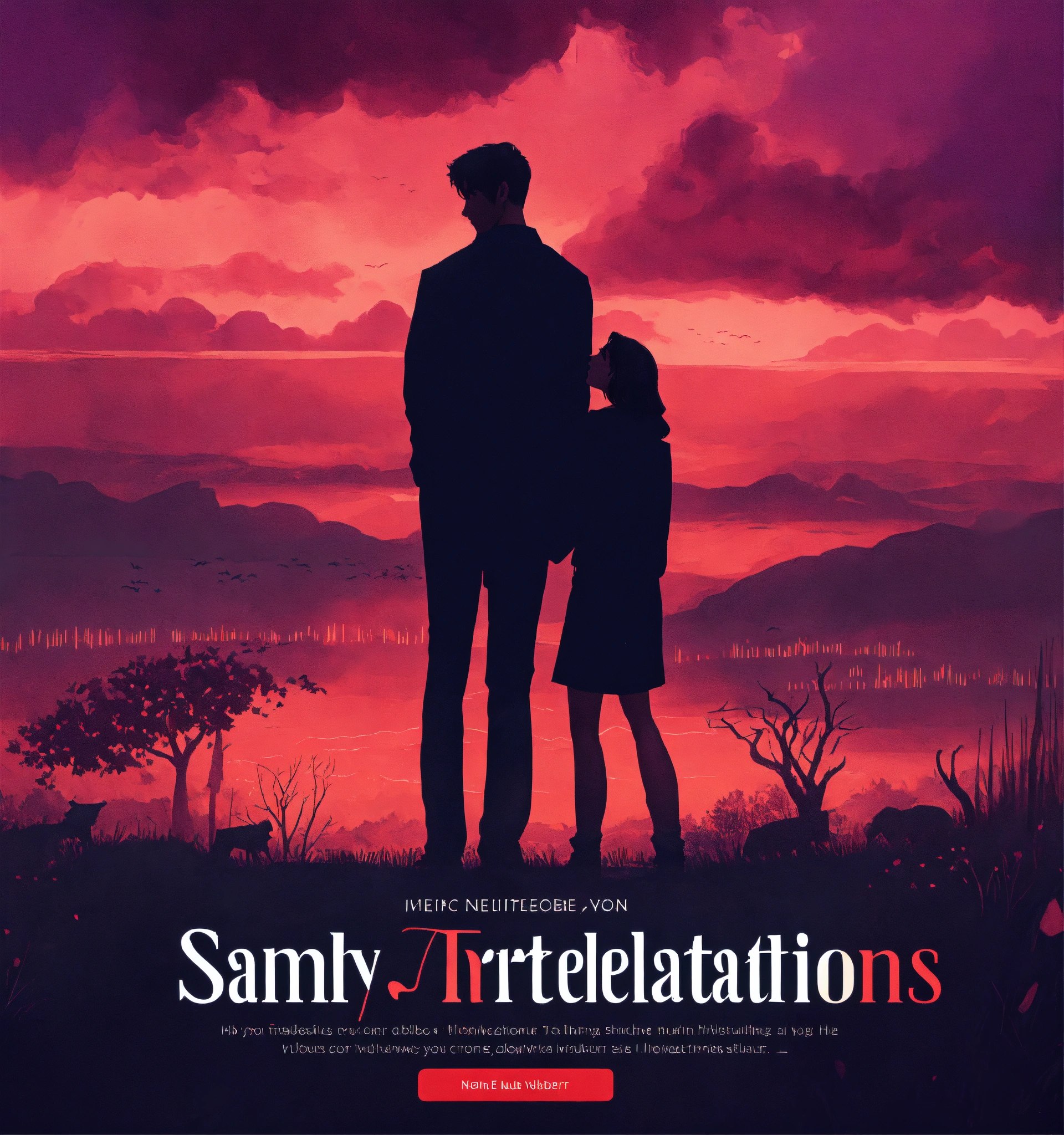 Create a youtube banner that captures the essence of challenging and intricate relationships. the design should be dramatic, using deep blacks and dark shades of red or purple. integrate visuals of stormy skies, shadowy silhouettes, or a maze to symbolize the complexities and struggles in relationships. overlay the text 'navigating relationships, together.' in an elegant yet somber font.