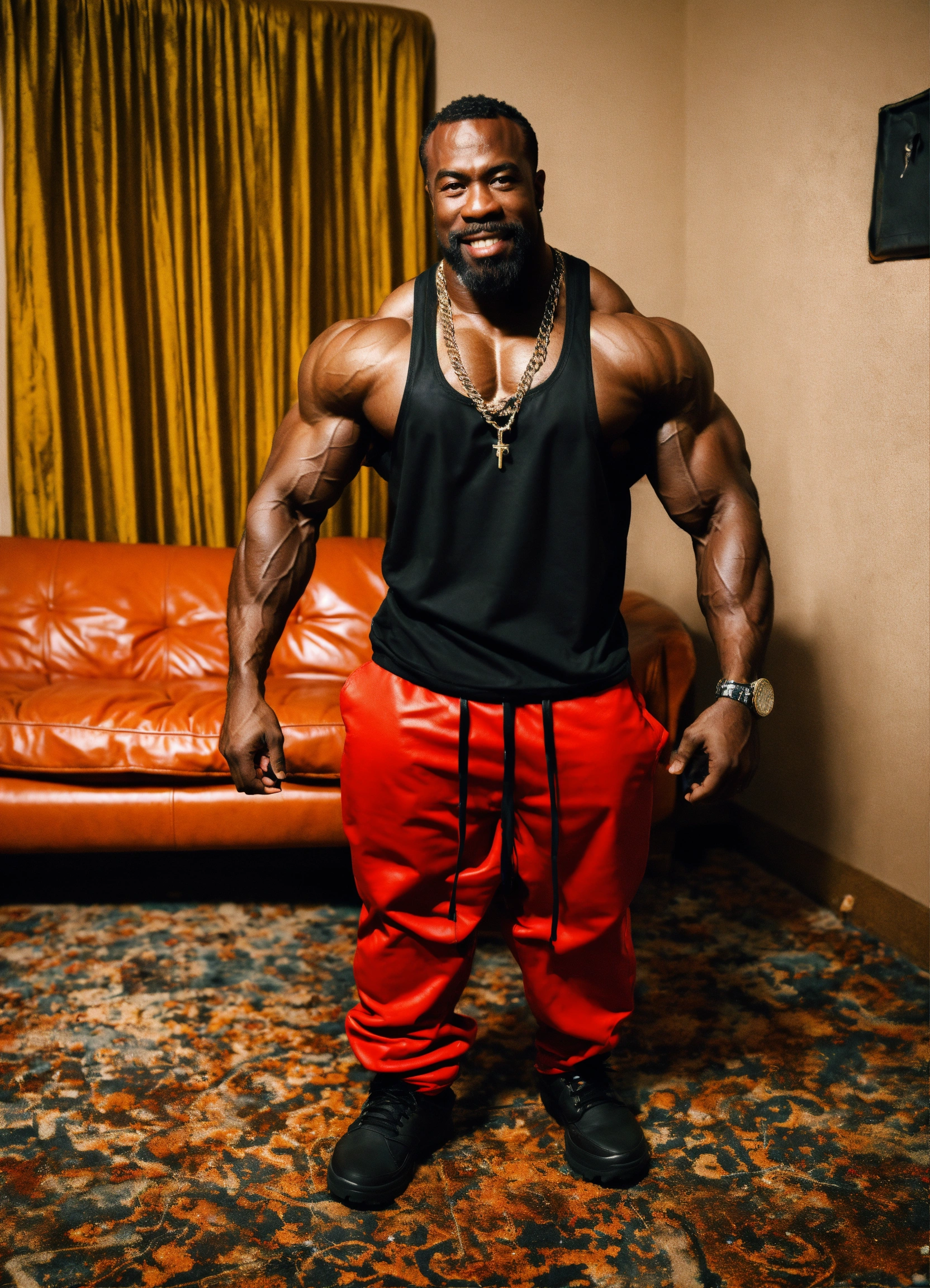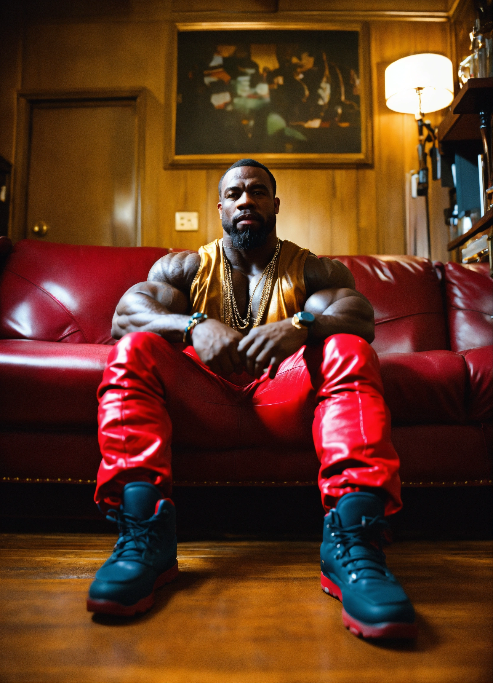 Shrunk tiny shrinking micro rapper toy size kali muscle baggy clothes under leather couch on dirty floor
