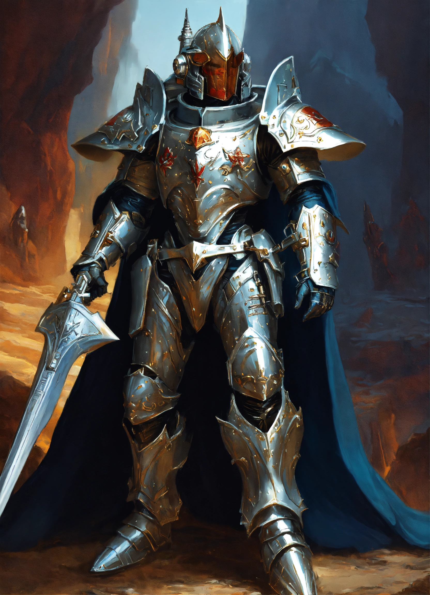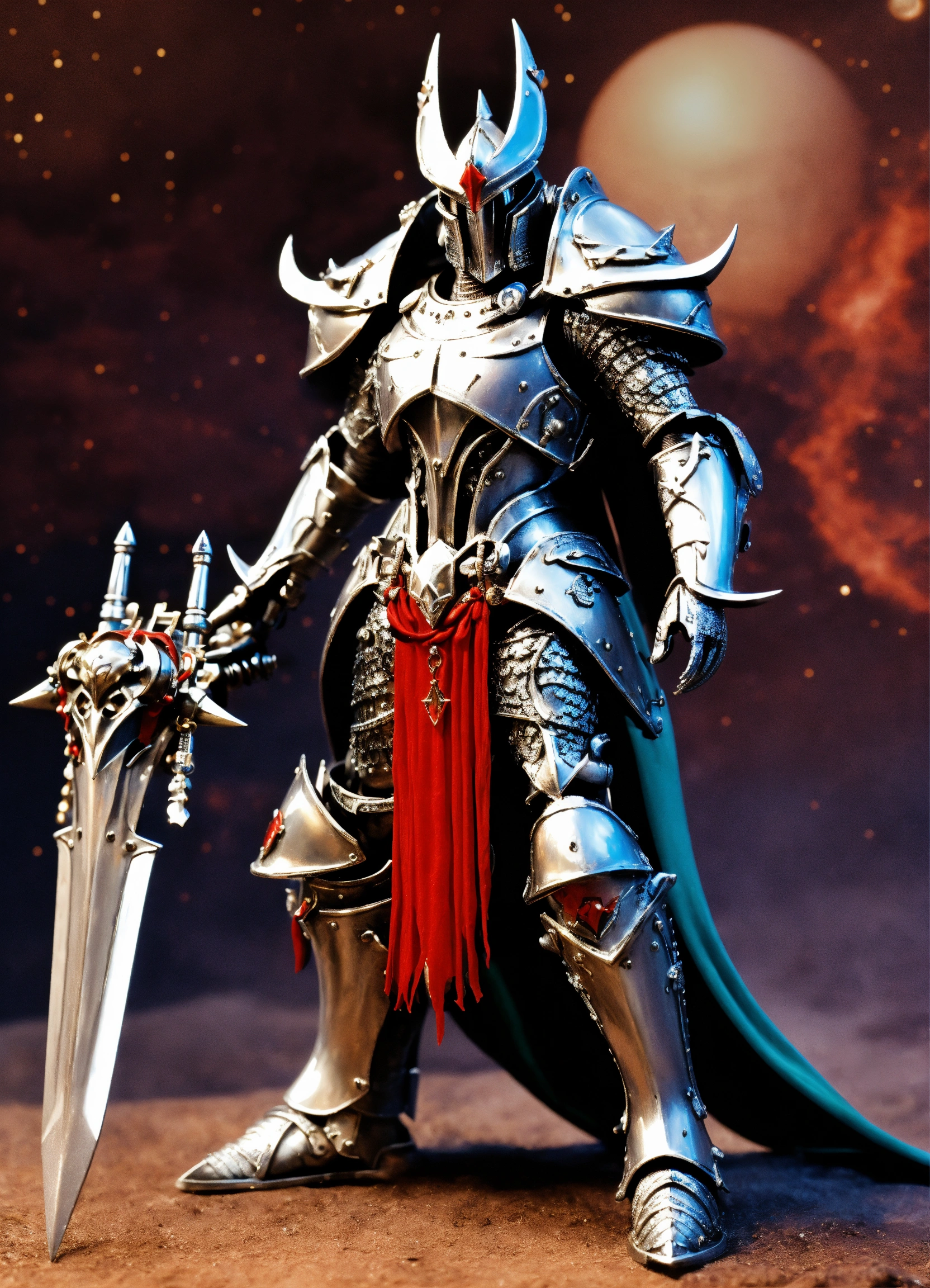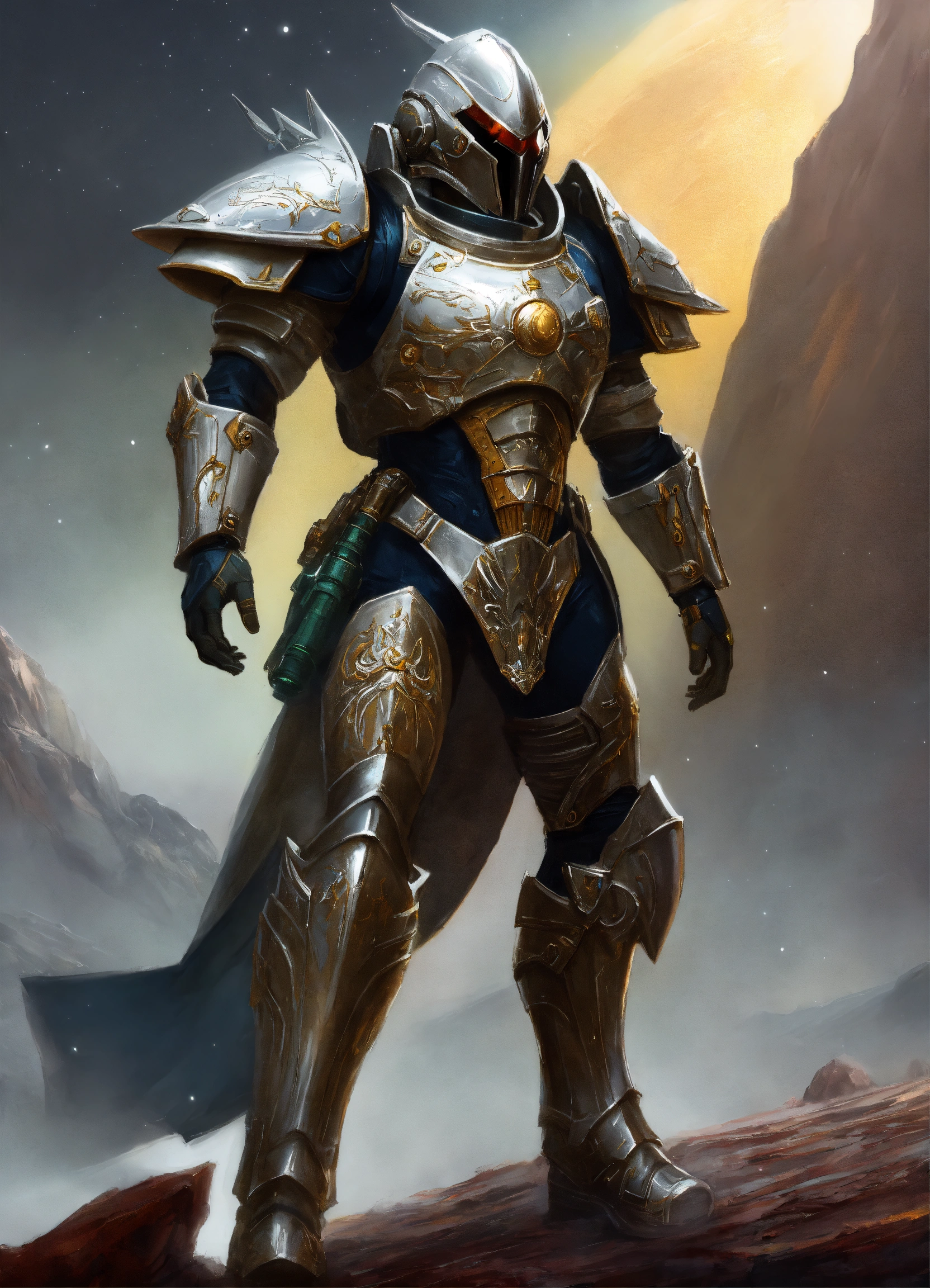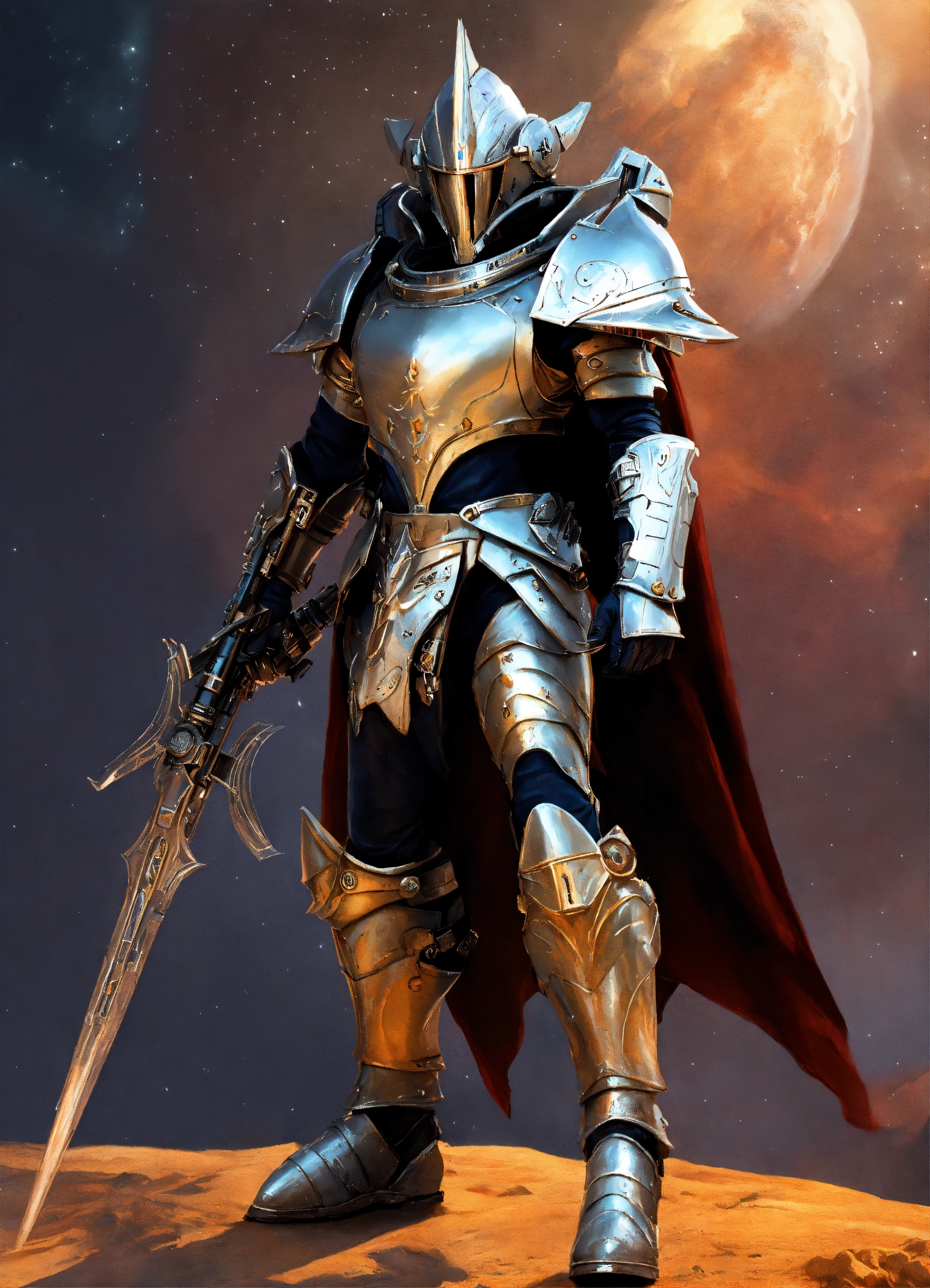 Space warrior knight in silver alien armor