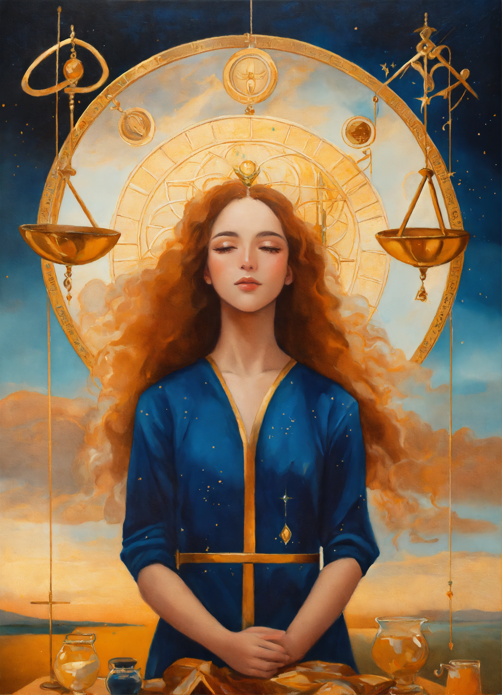 Oil painting of the astrological sign libra as a person