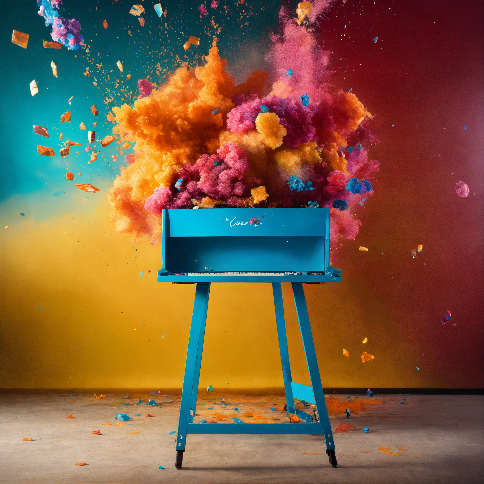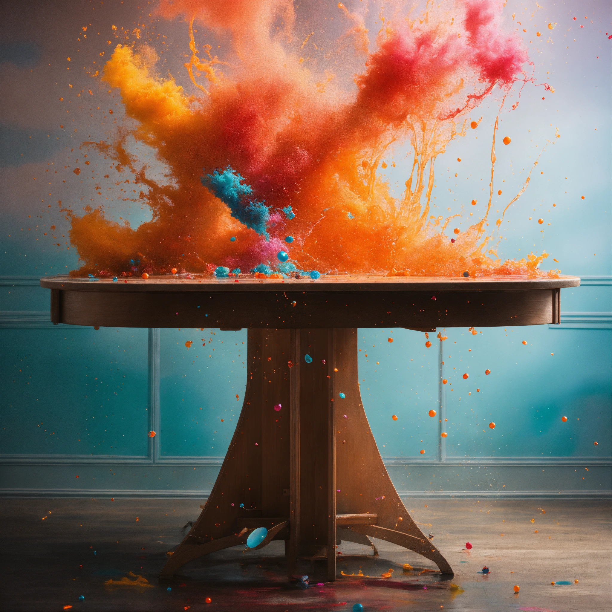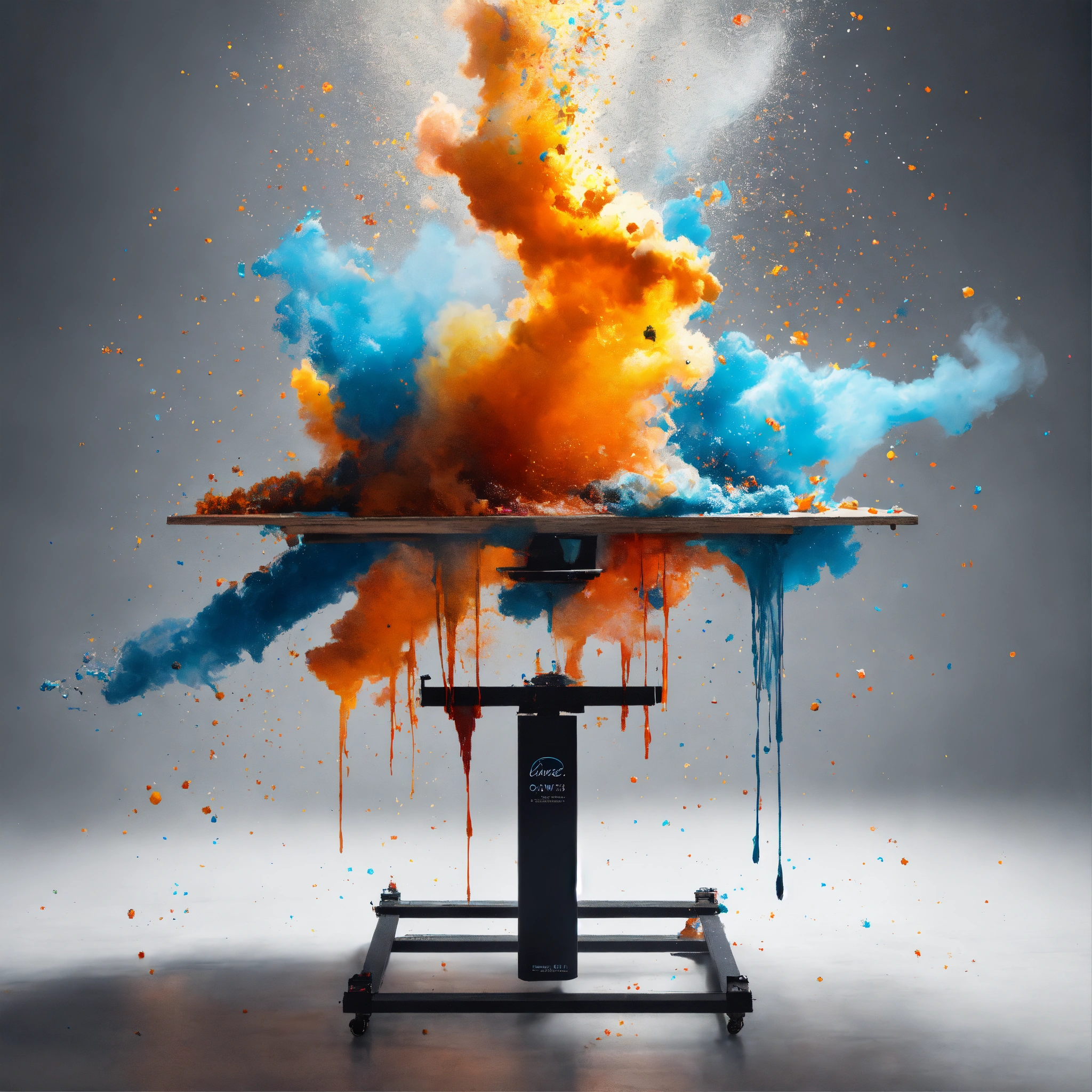 ((("capture dynamic splashes of art in a flying fashion photography" with art as the main subject, showcasing splashes of color and sparkle including pencil, orange and cyan paint, putty, fabric, special model, easel, and intense lighting. utilize high-speed photography for photorealistic surrealism style, with a white background and trending clean minimalist backdrop. include cuware, table, charcoal, and art medium elements. create 3 ad posters with pro-grade color grading, studio lighting, rim lights, layered comps, and shot with an eos-1d x mark iii camera. publish on 500px, behance, and consider concept art."), photorealistic images, high-speed photography, surrealism, white background, clean background, minimalist, cuware, table, steam, smoke, ad posters, pro-grade color grading, studio lighting, rim lights, layered comps, eos-1d x mark iii, 500px, behance, concept art), photo