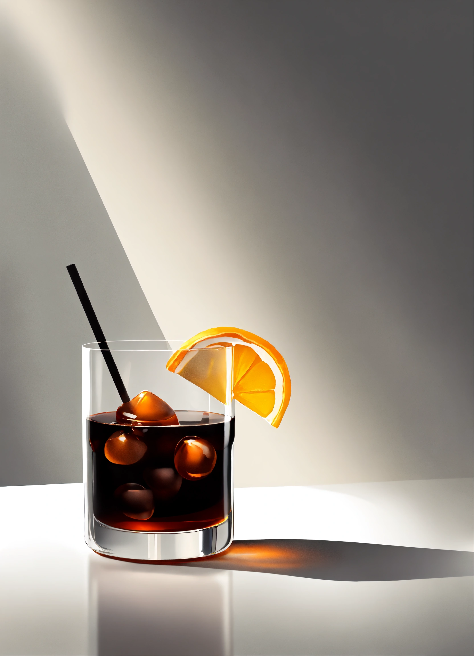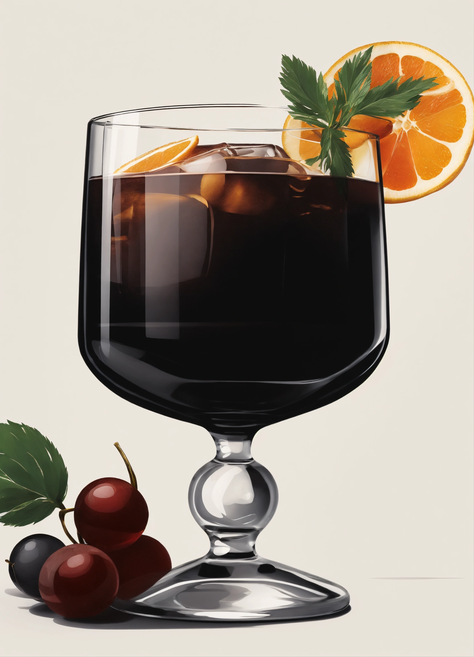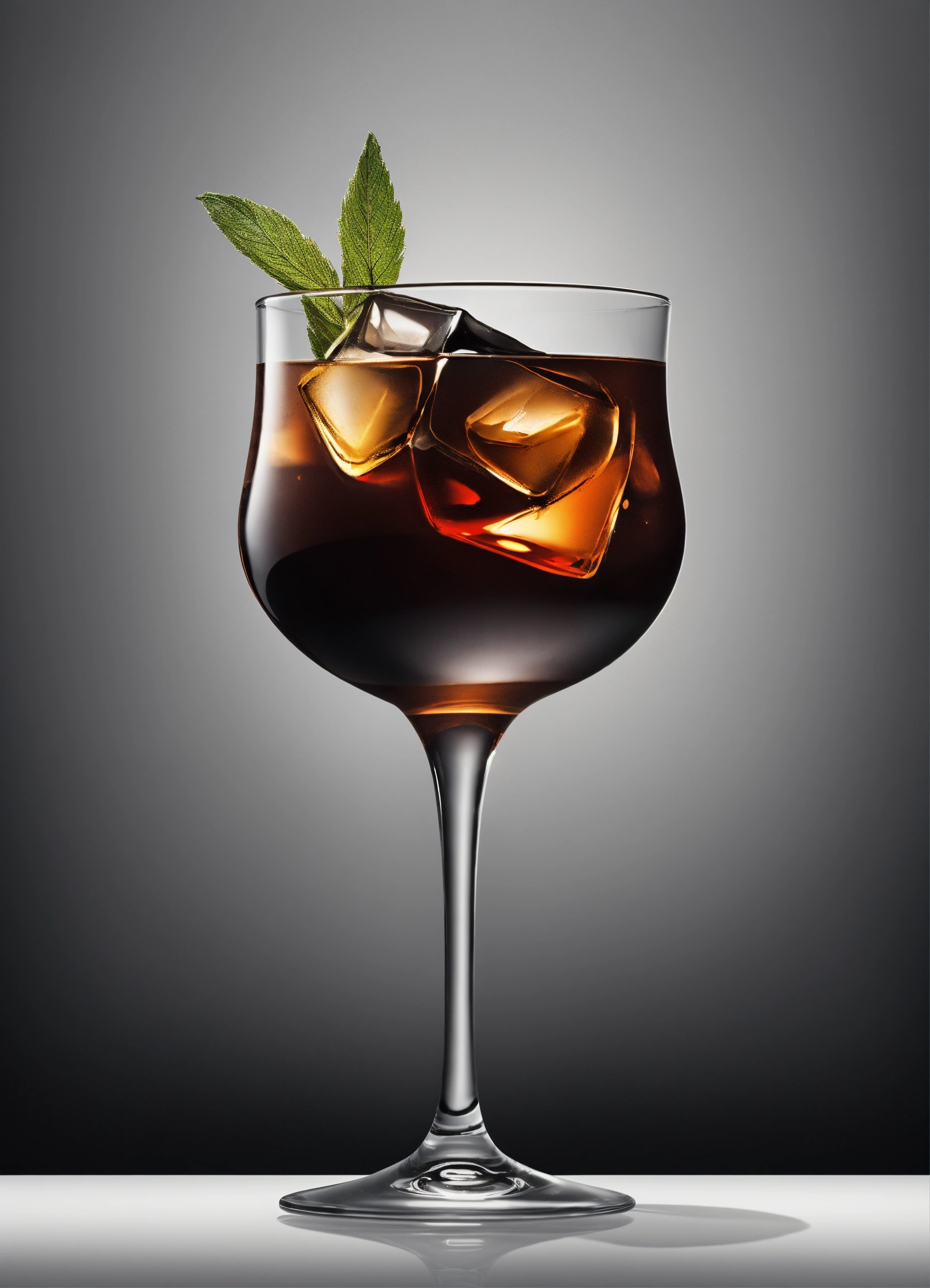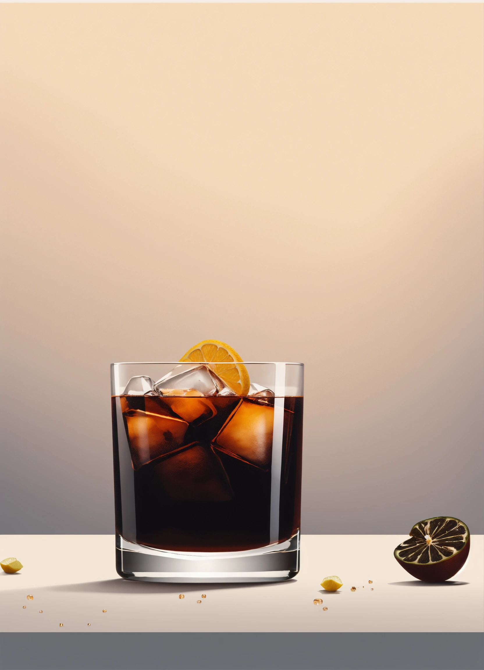 "an elegant, vector, catoonish, sophisticated, and minimalist representation of a black russian cocktail against a clean white background." no shadow