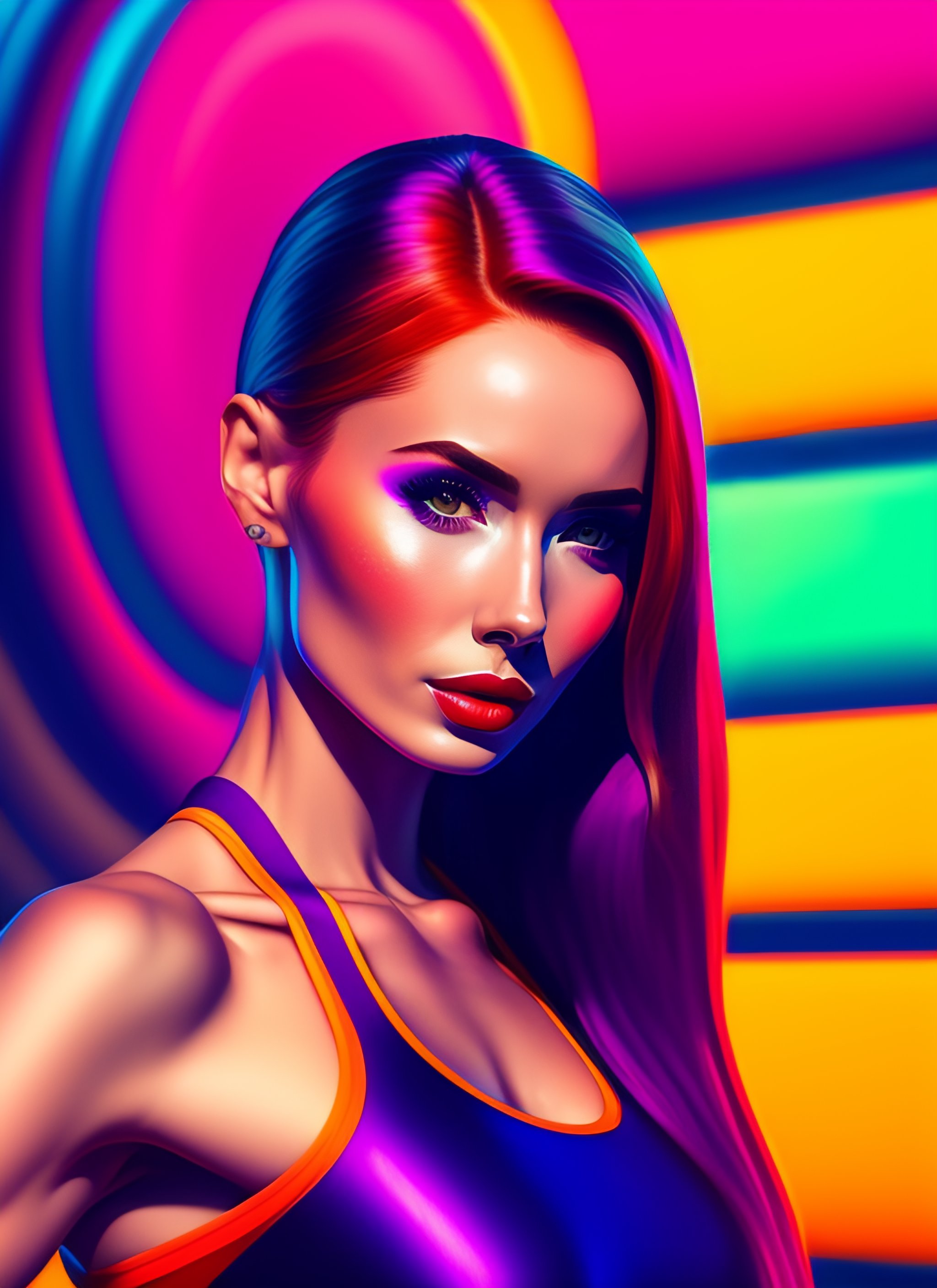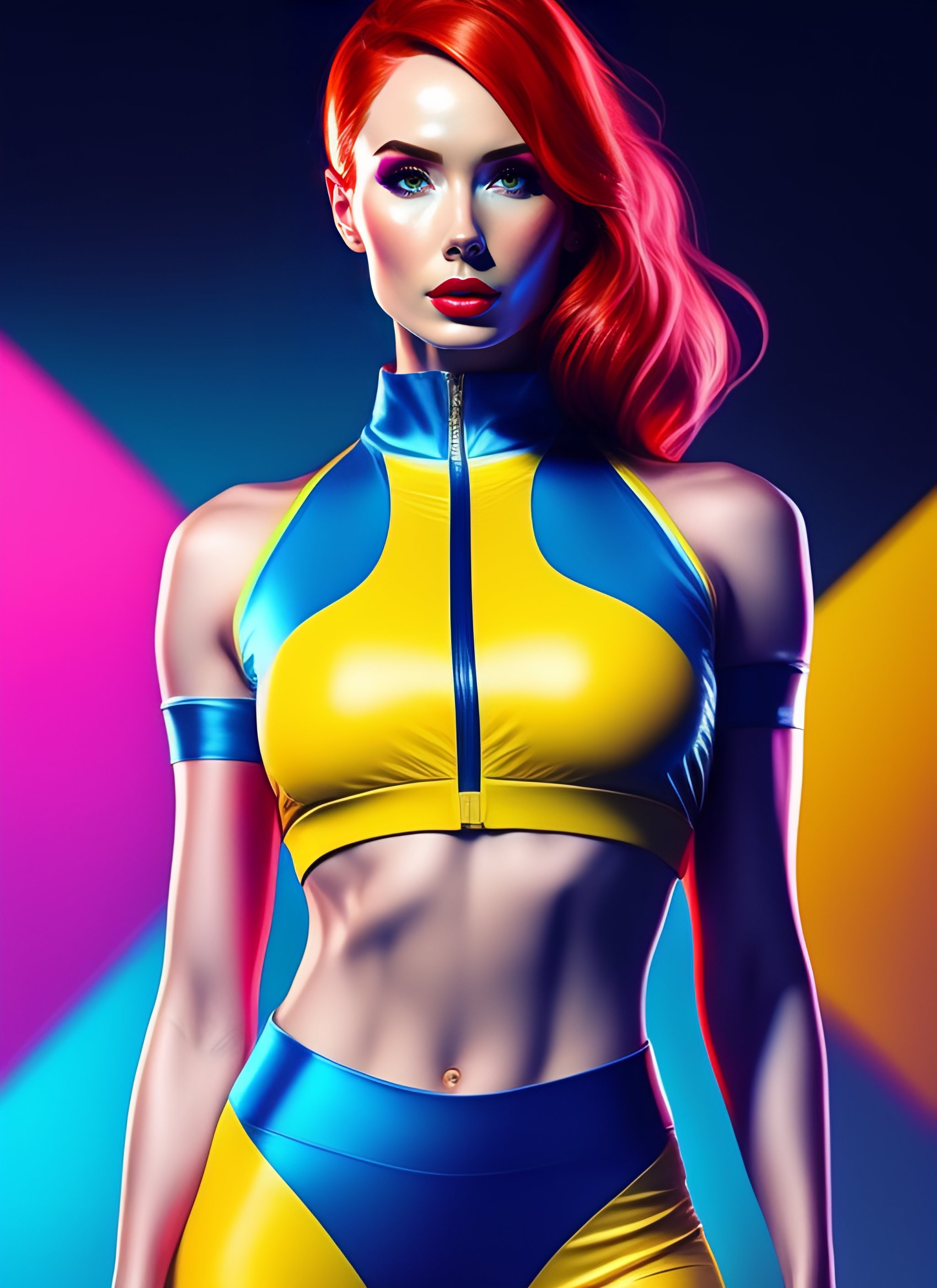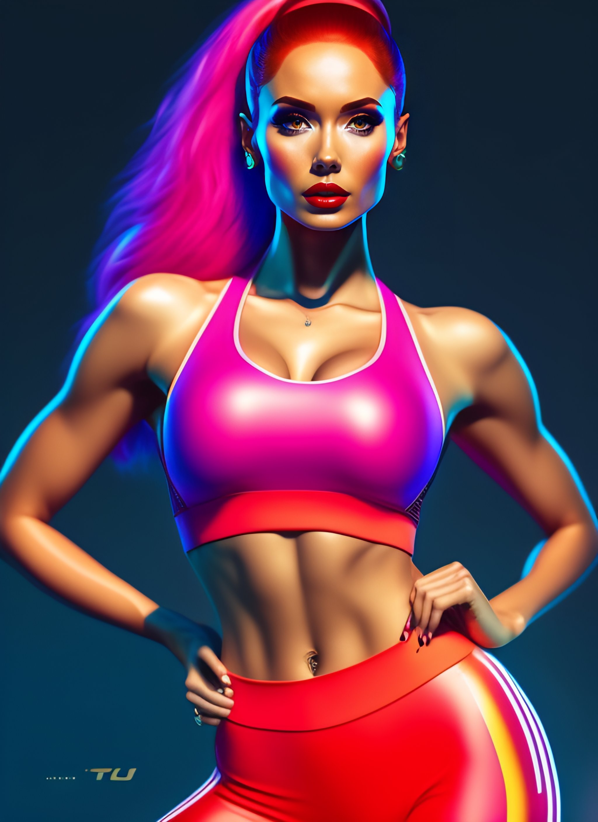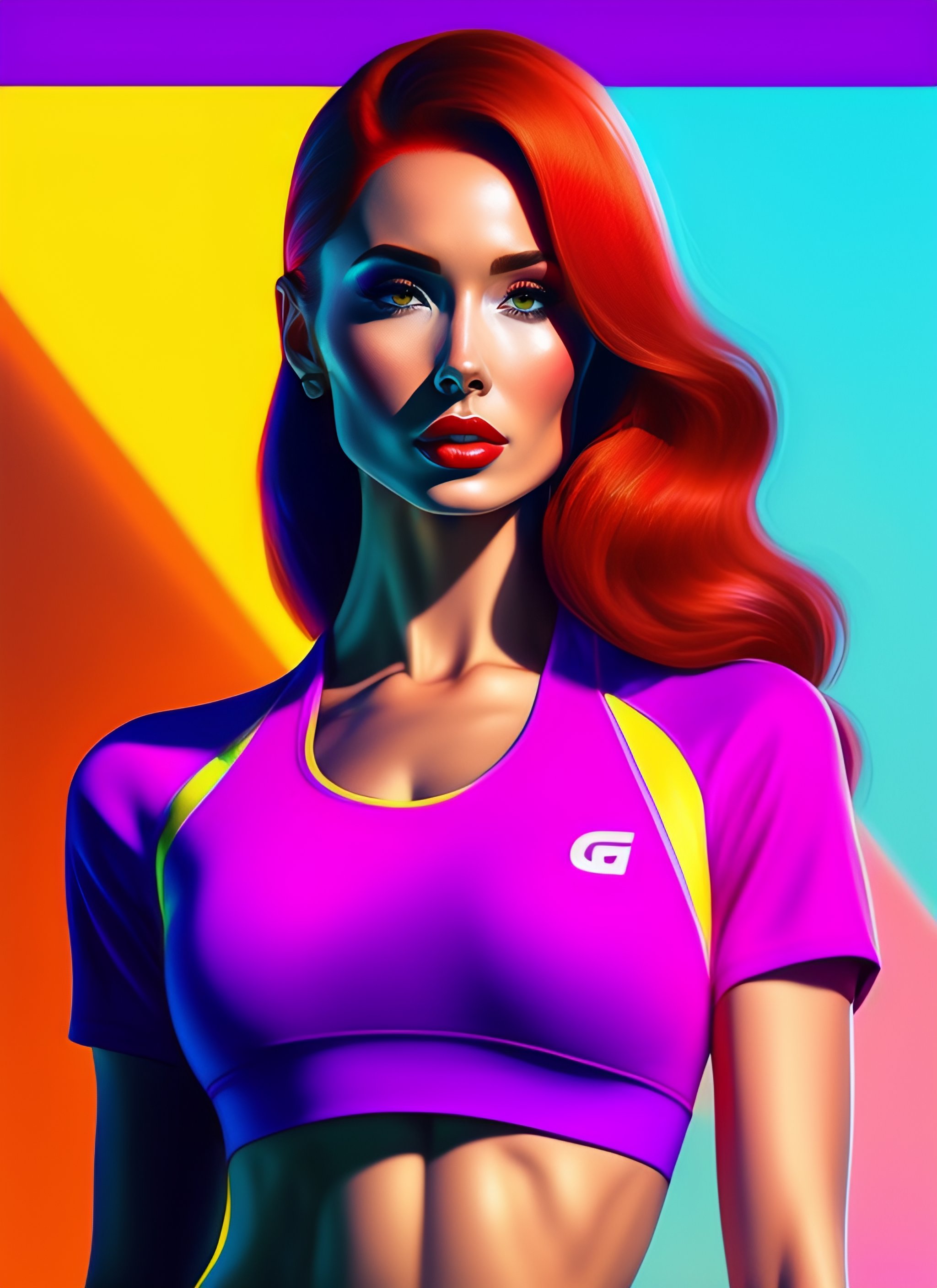 Digital painting of karen gillan, modeling, posing, two piece workout clothes, training bra, quality lighting, vibrant colors, maximalism, ultra facial detail, gta 5 skin tone, tooth wu artgerm greg rutkowski artstation deviantart, 8k, fanart, extreme aesthetic