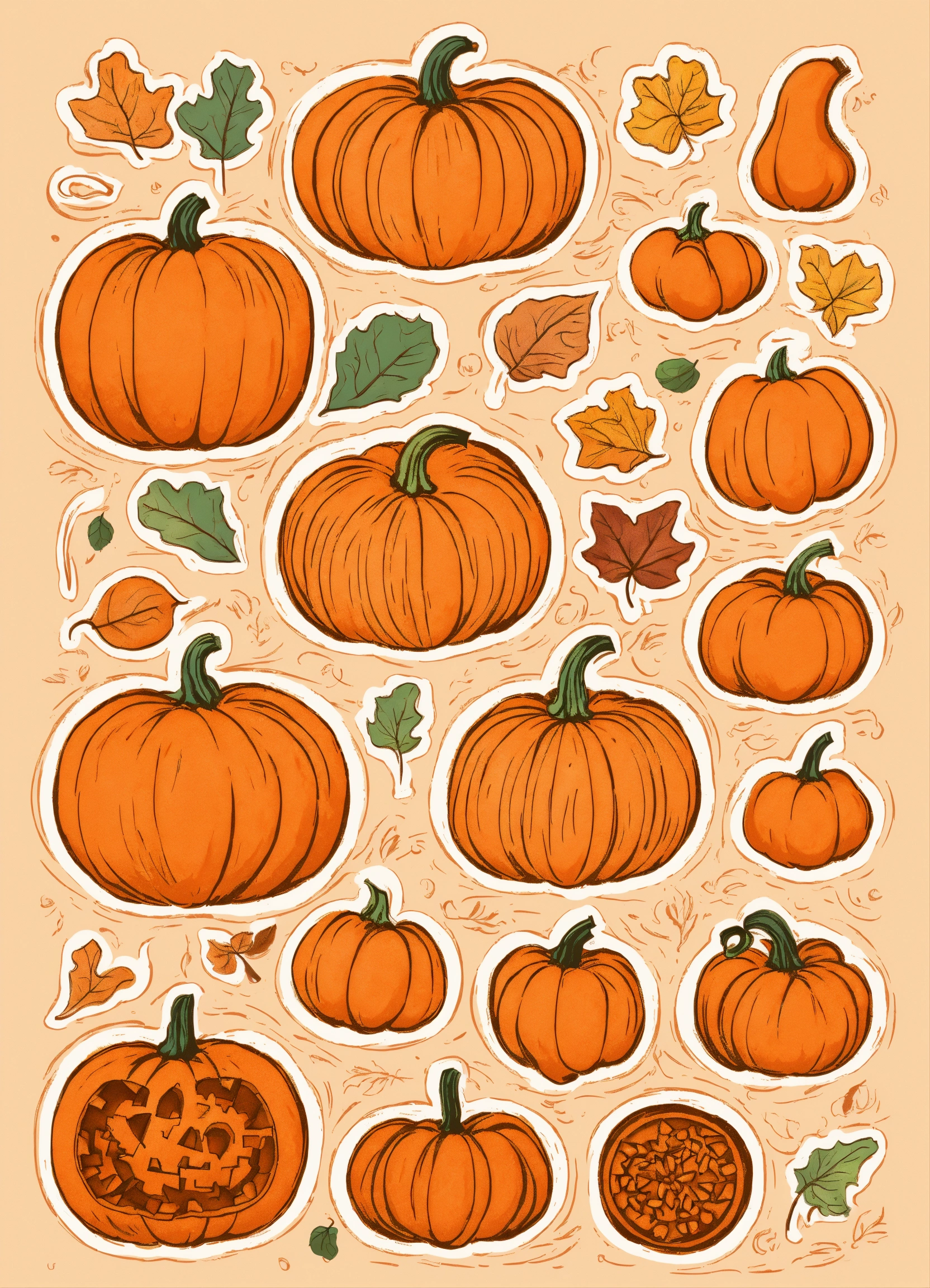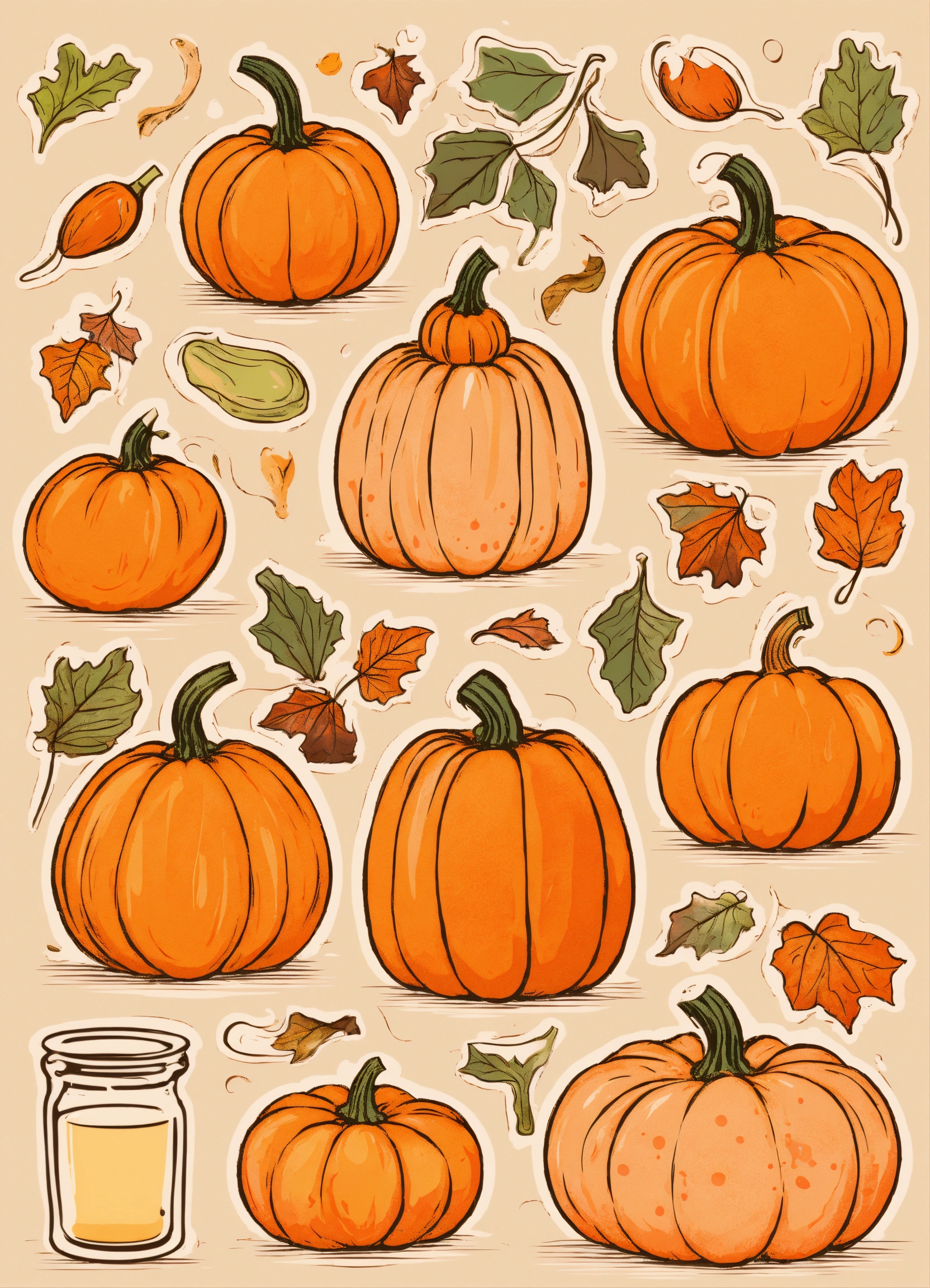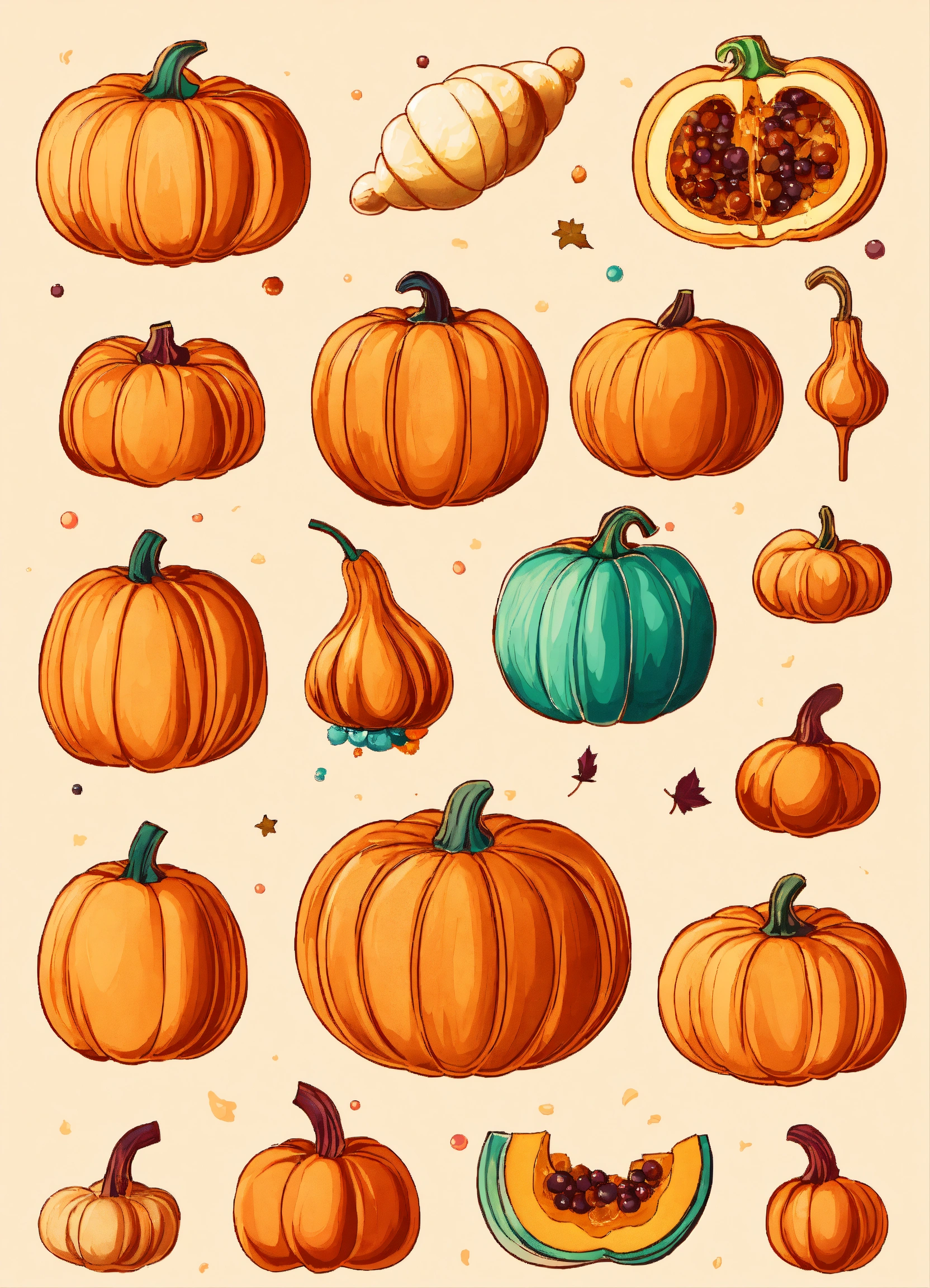 Elements of non detailed liquified pumpkin soft pastel vector illustration simple icons on white background