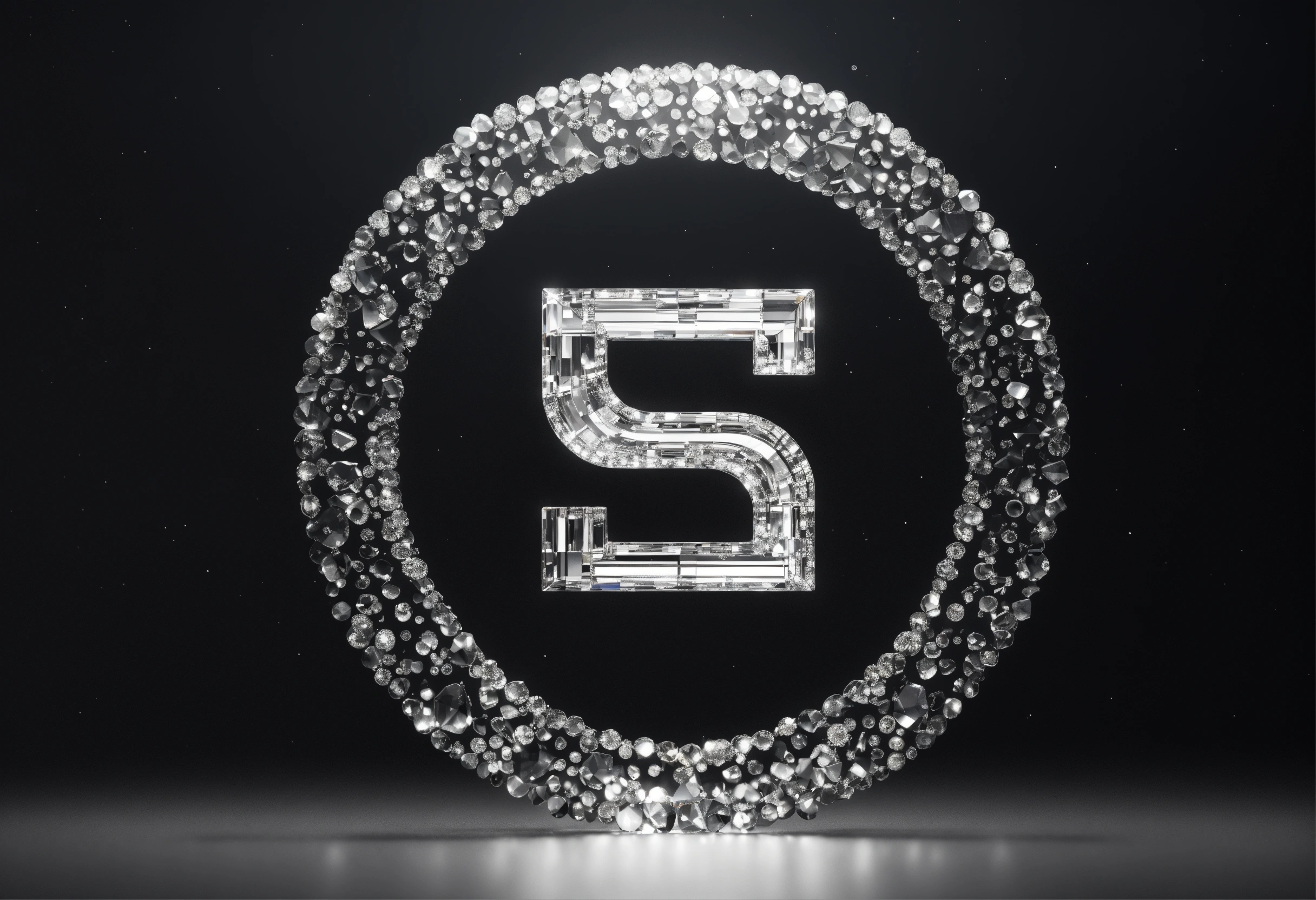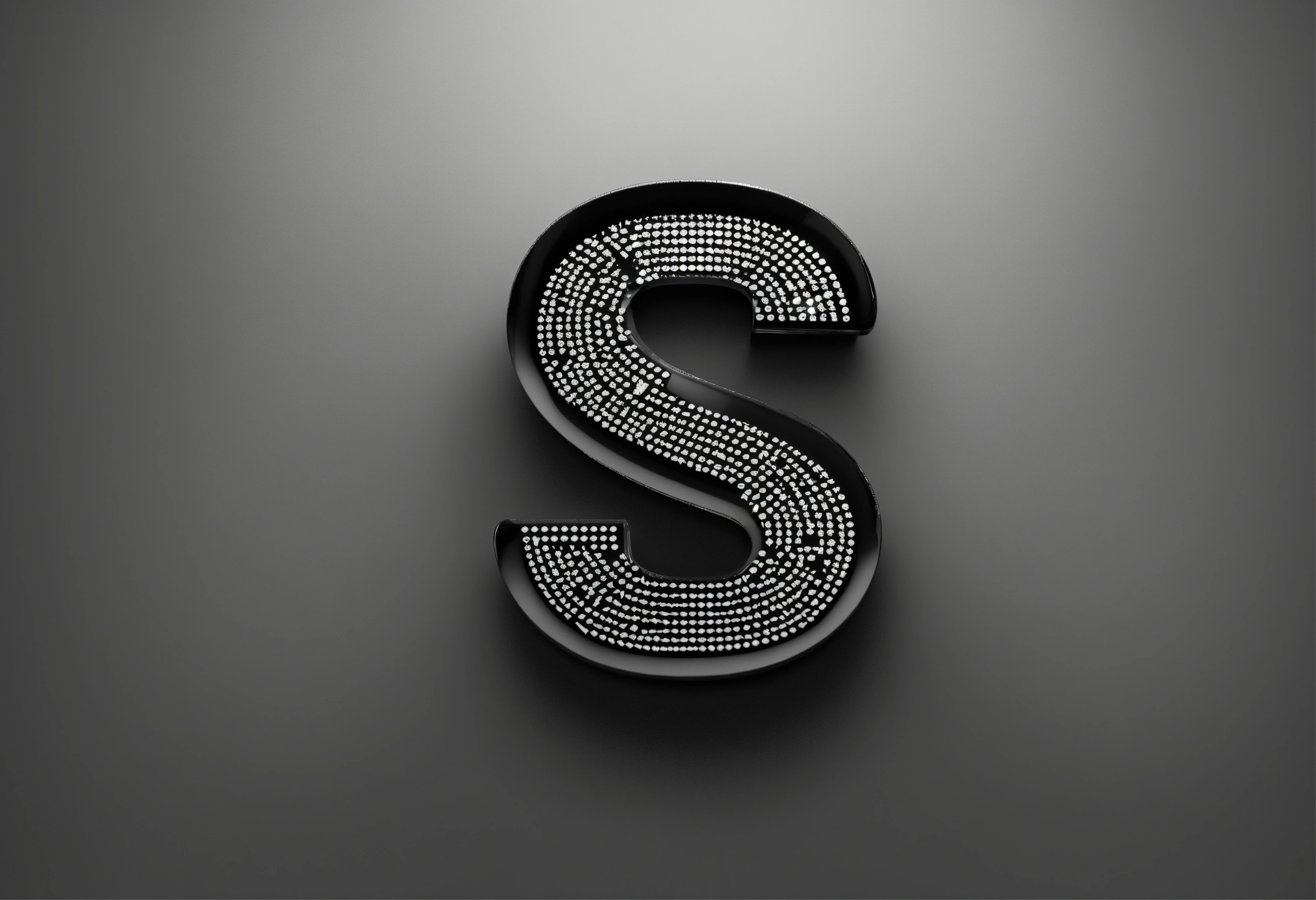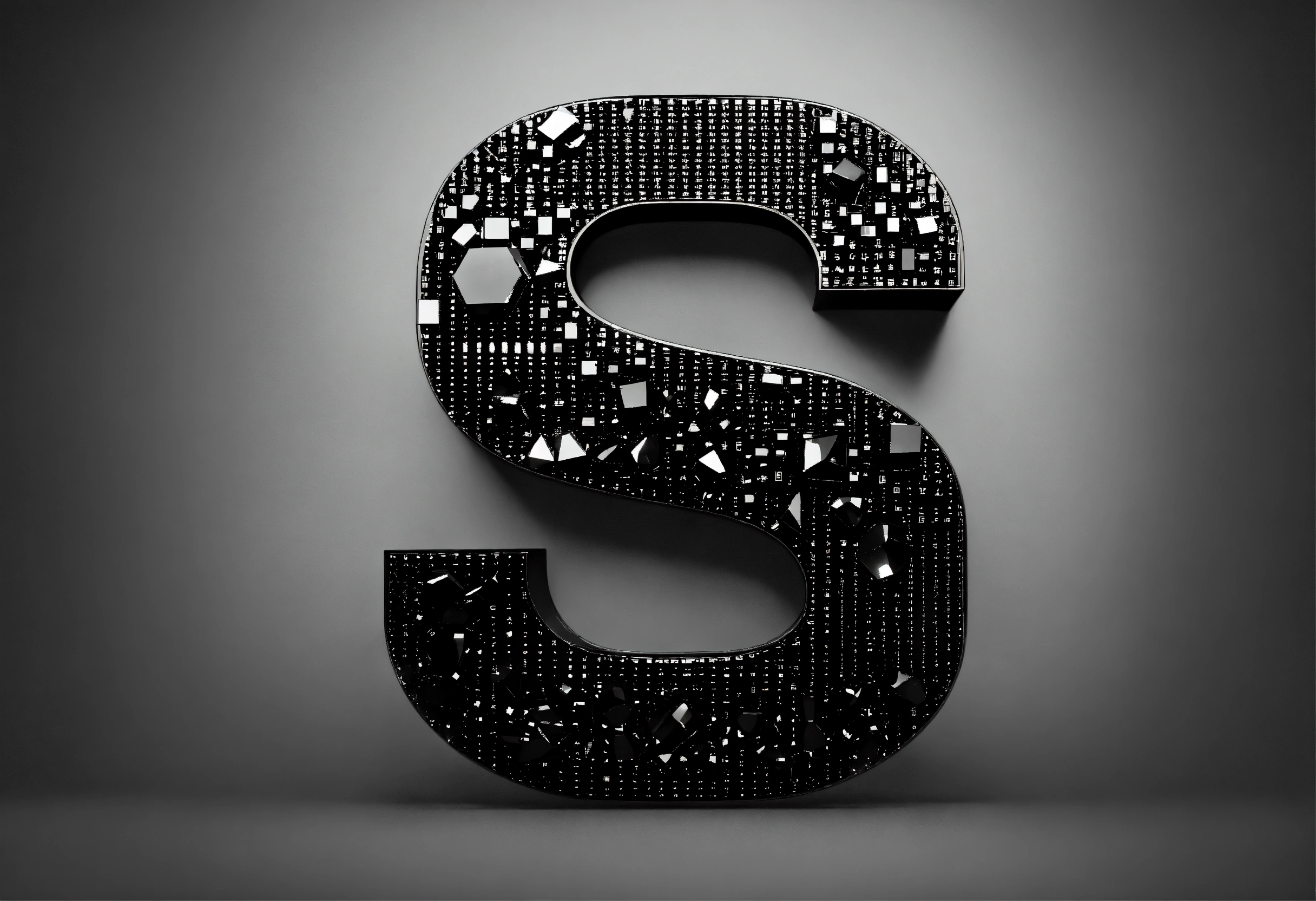 Letter s, crystal logo, logotype, logo, trademark, b&w, 8k, word crystal in center, black and white, in the style of ascii art
